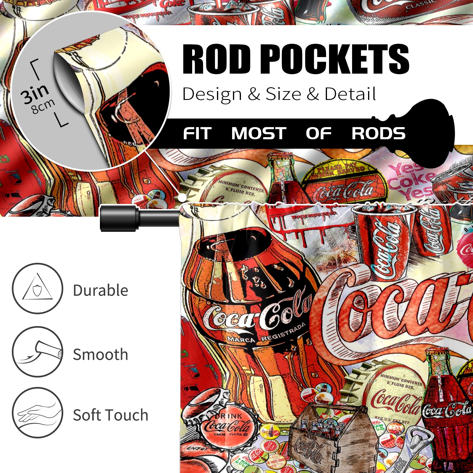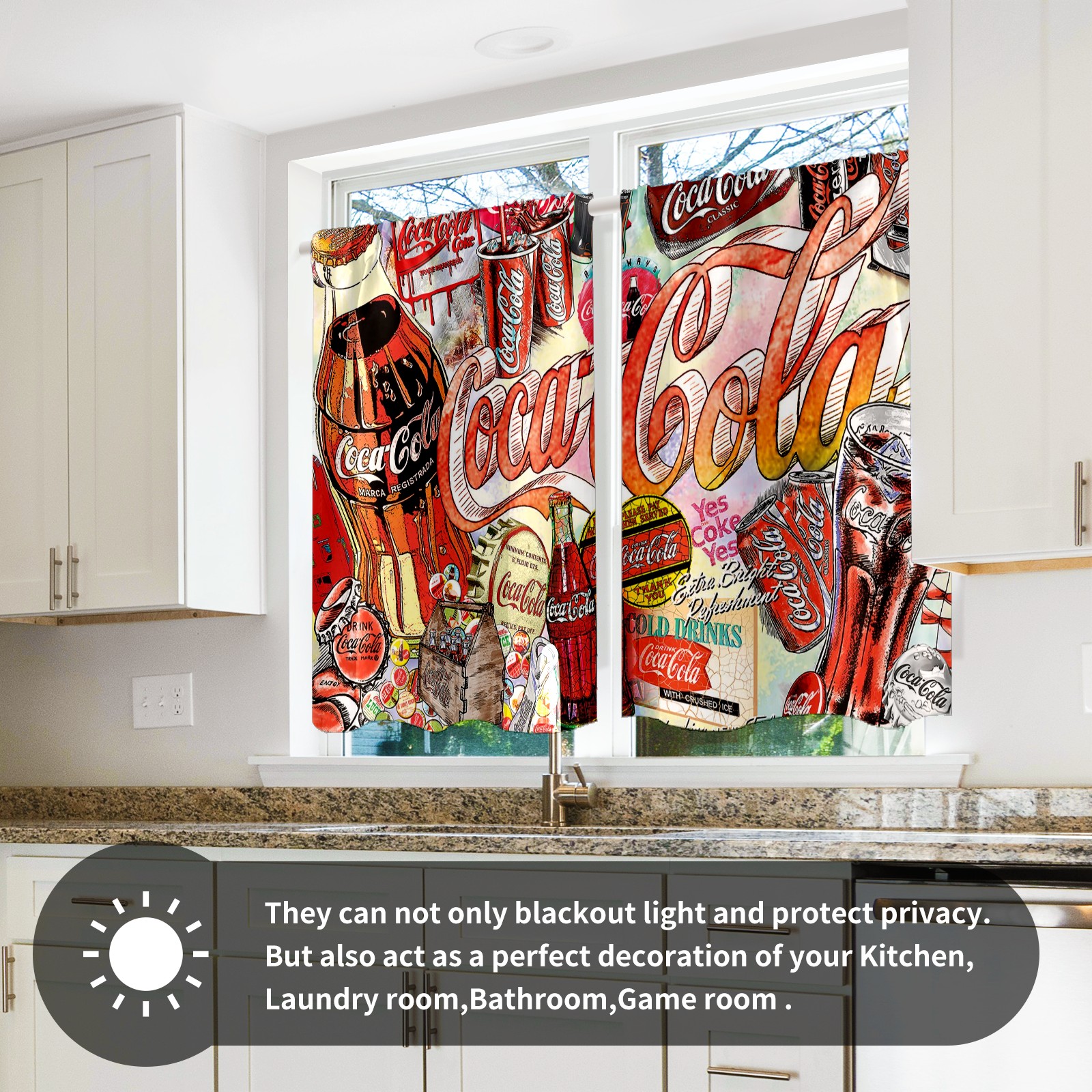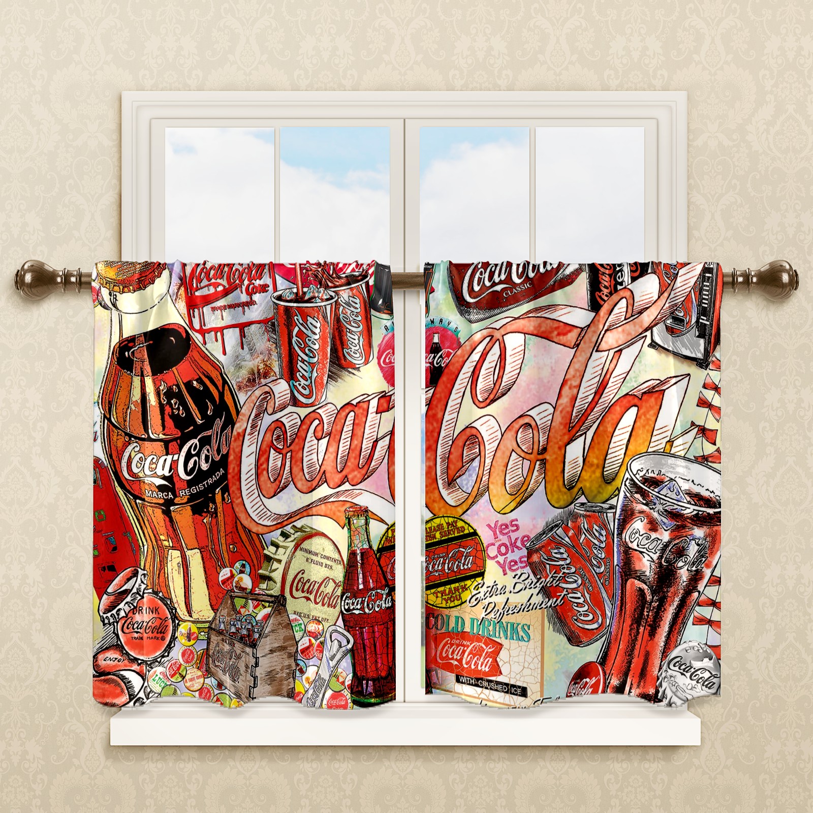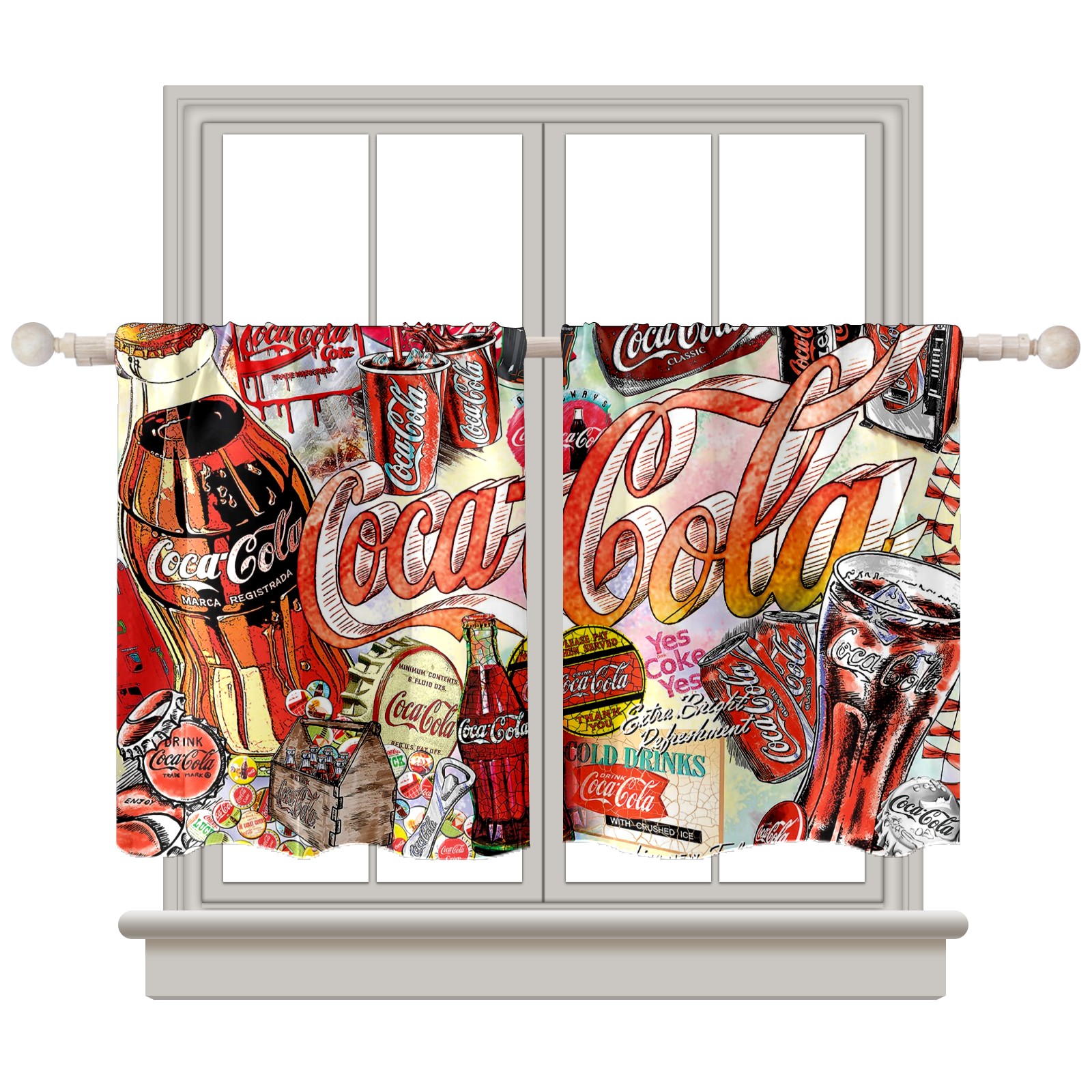 Шторы-панно для дома, декоративные драпировки для гостиной и спальни, легкие и прочные, Colorful Coca Cola Sign Pattern