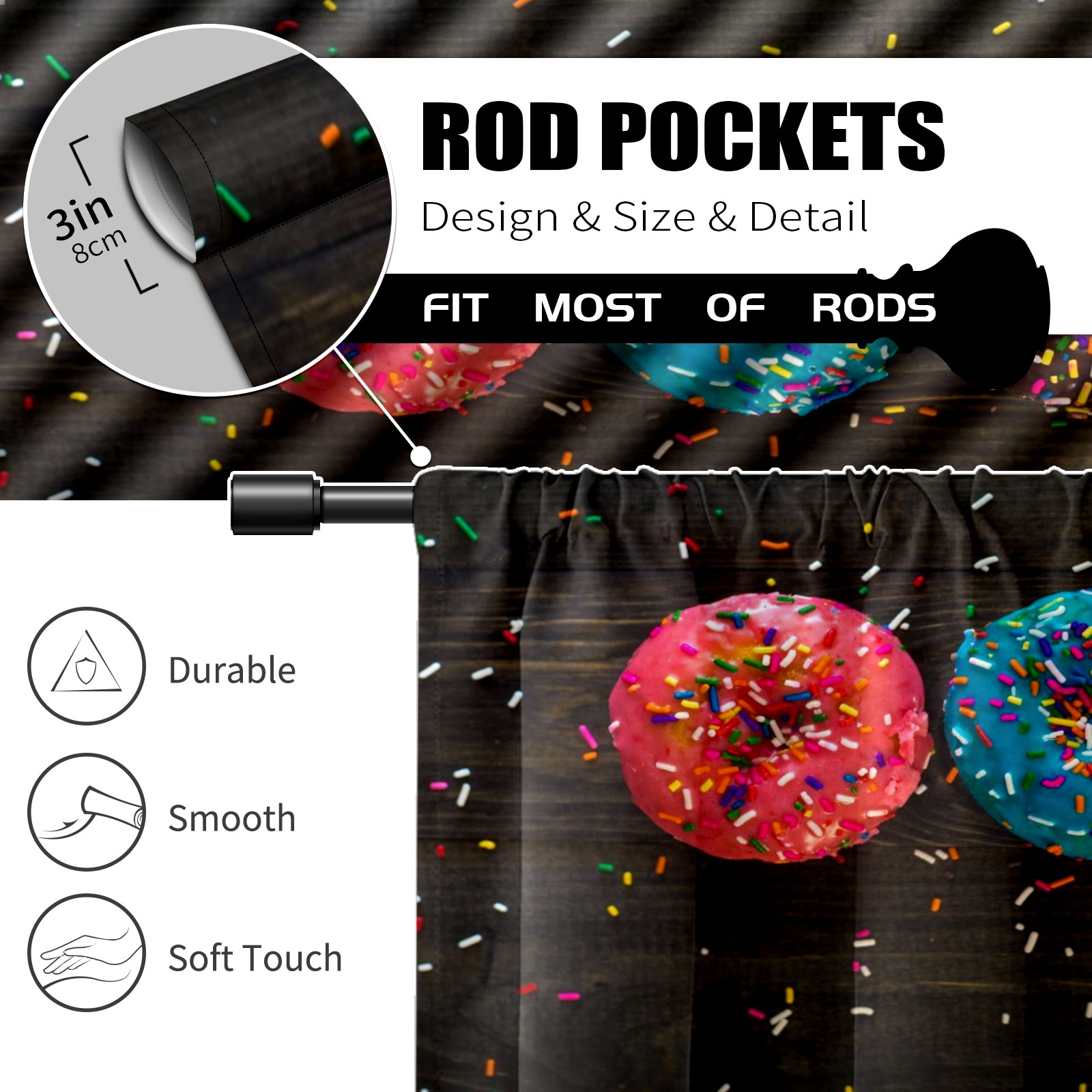 Шторы-панно для дома, декоративные драпировки для гостиной и спальни, легкие и прочные, Colourful Donuts