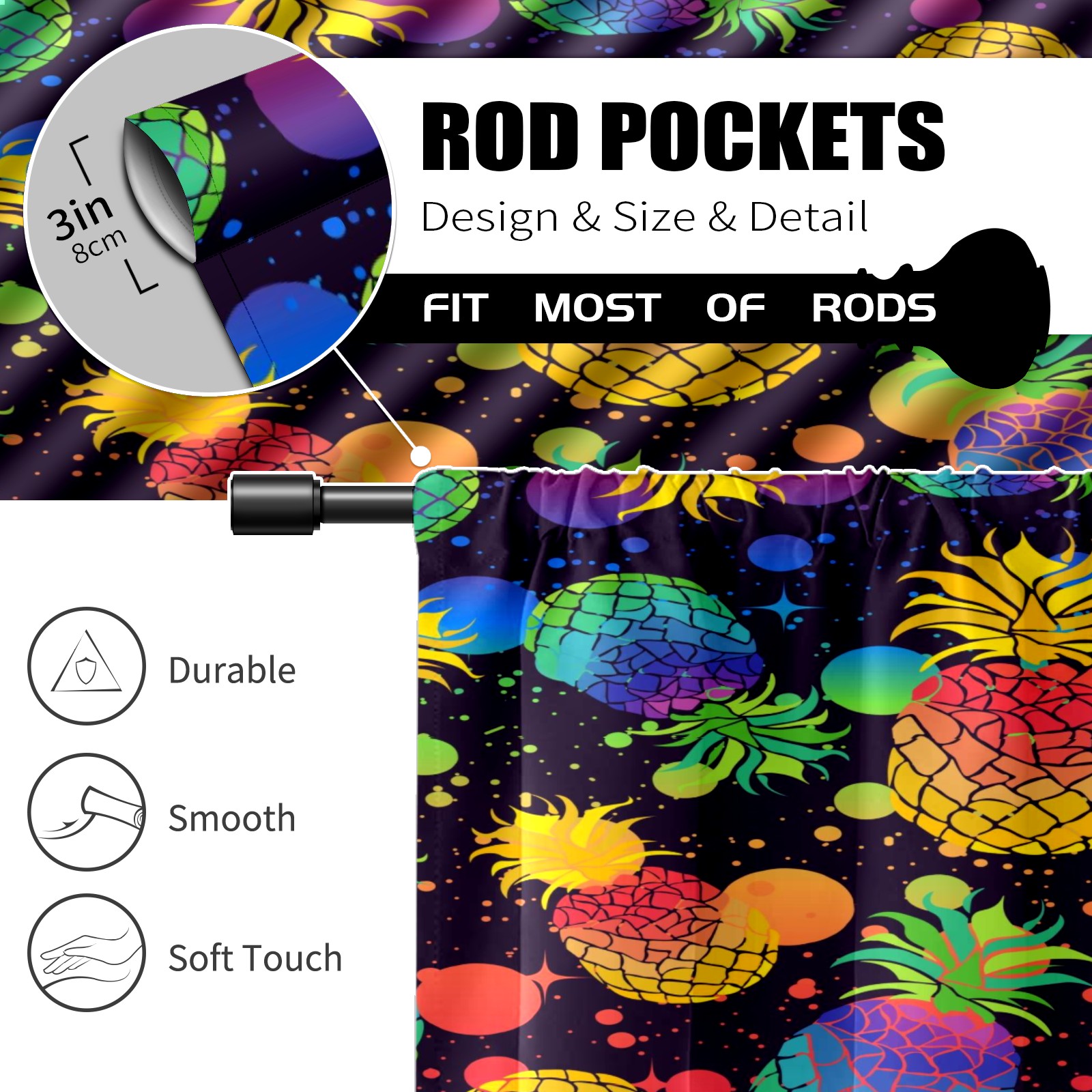 Шторы-панно для дома, декоративные драпировки для гостиной и спальни, легкие и прочные, Colorful Pineapple 35