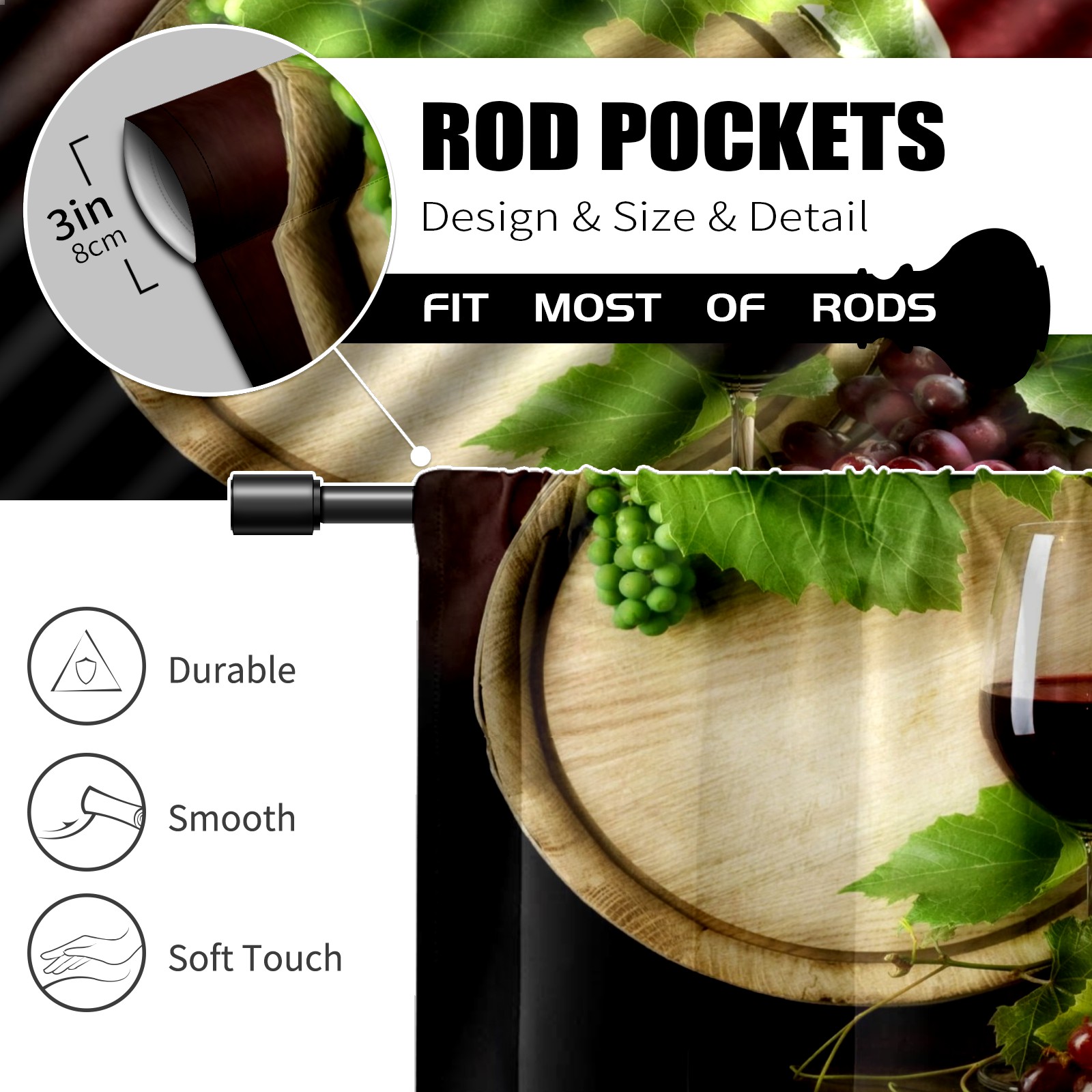 Шторы-панно для дома, декоративные драпировки для гостиной и спальни, легкие и прочные, French Natural Grapes Red Wine