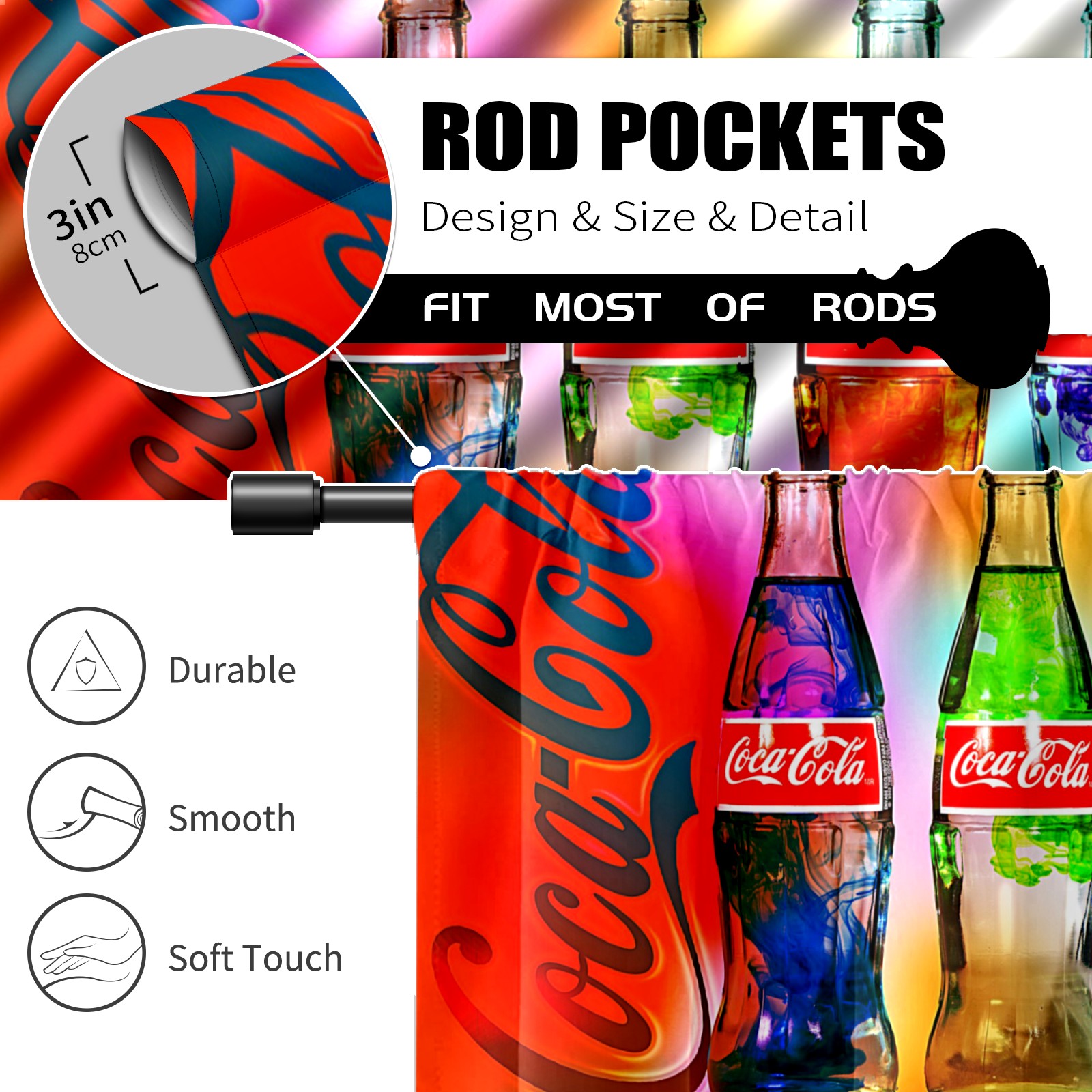 Шторы-панно для дома, декоративные драпировки для гостиной и спальни, легкие и прочные, Rainbow Coca Cola Bottle