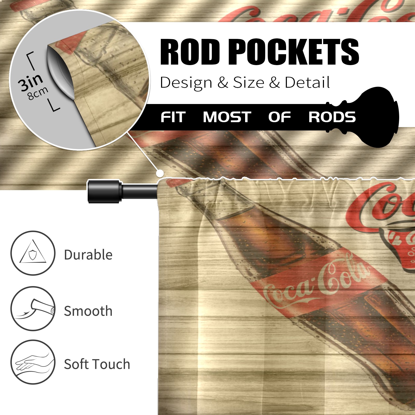 Шторы-панно для дома, декоративные драпировки для гостиной и спальни, легкие и прочные, Vintage Coca Cola Bottle On Wooden