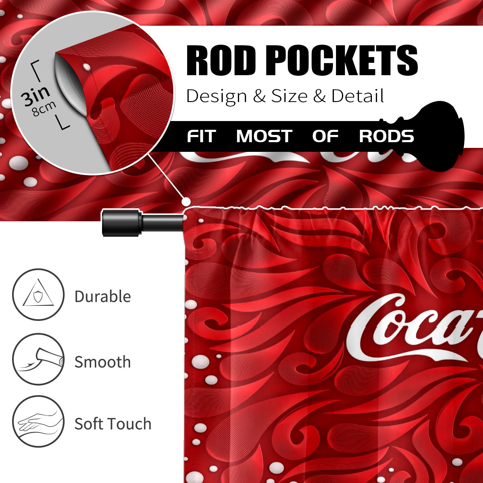 Шторы-панно для дома, декоративные драпировки для гостиной и спальни, легкие и прочные, Red Coca Cola Pattern