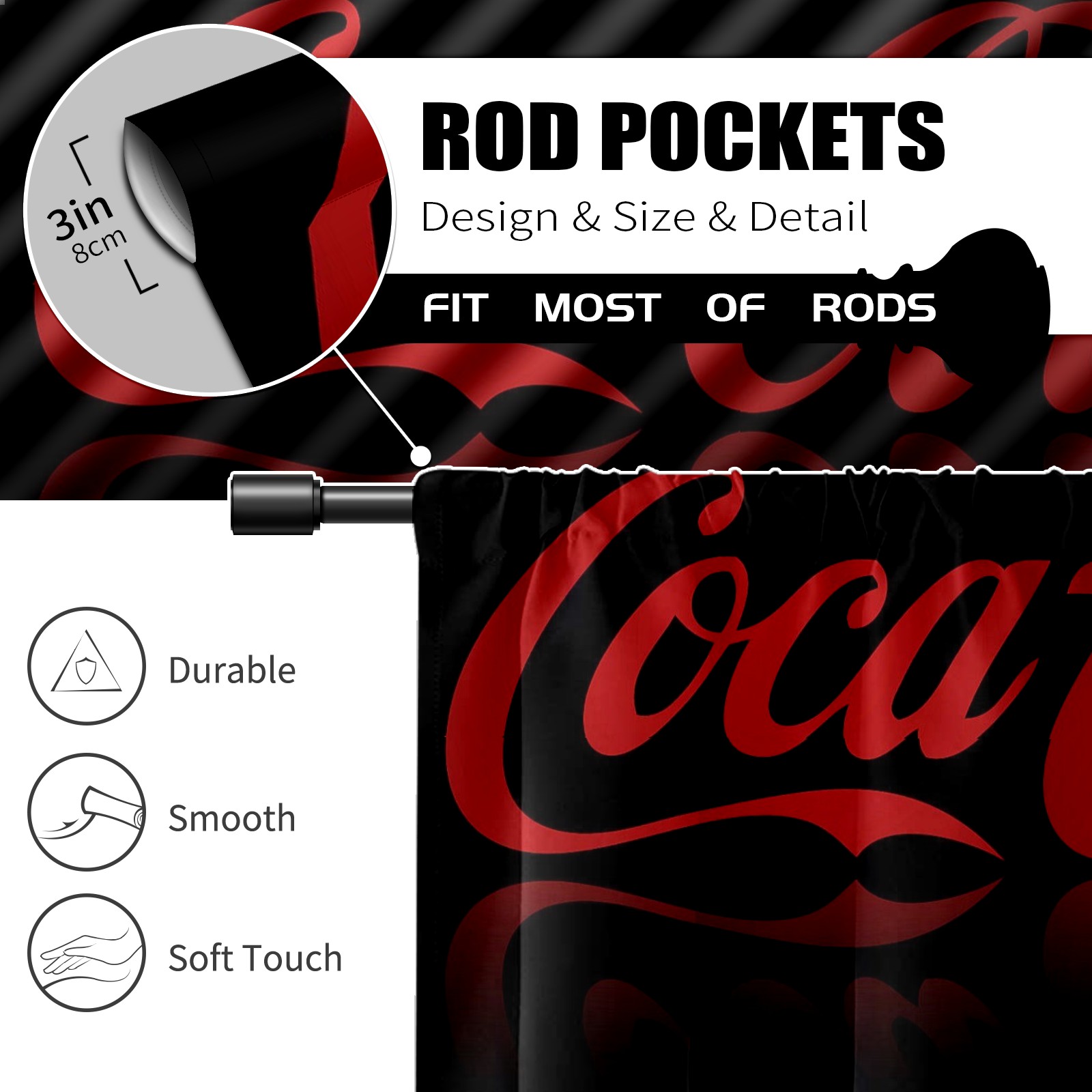 Шторы-панно для дома, декоративные драпировки для гостиной и спальни, легкие и прочные, Classic Coca Cola On Black