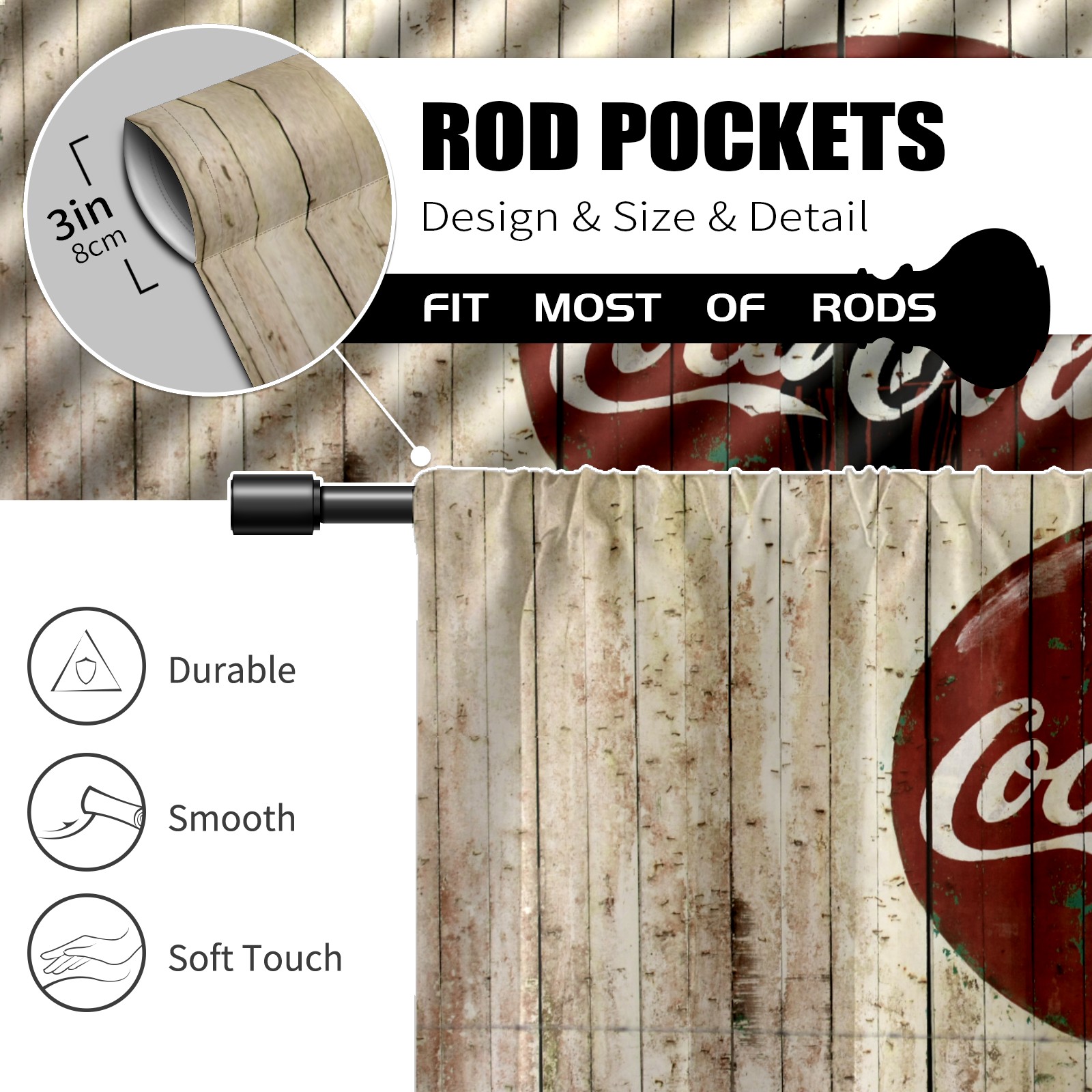 Шторы-панно для дома, декоративные драпировки для гостиной и спальни, легкие и прочные, Coca Cola Vintage Wood