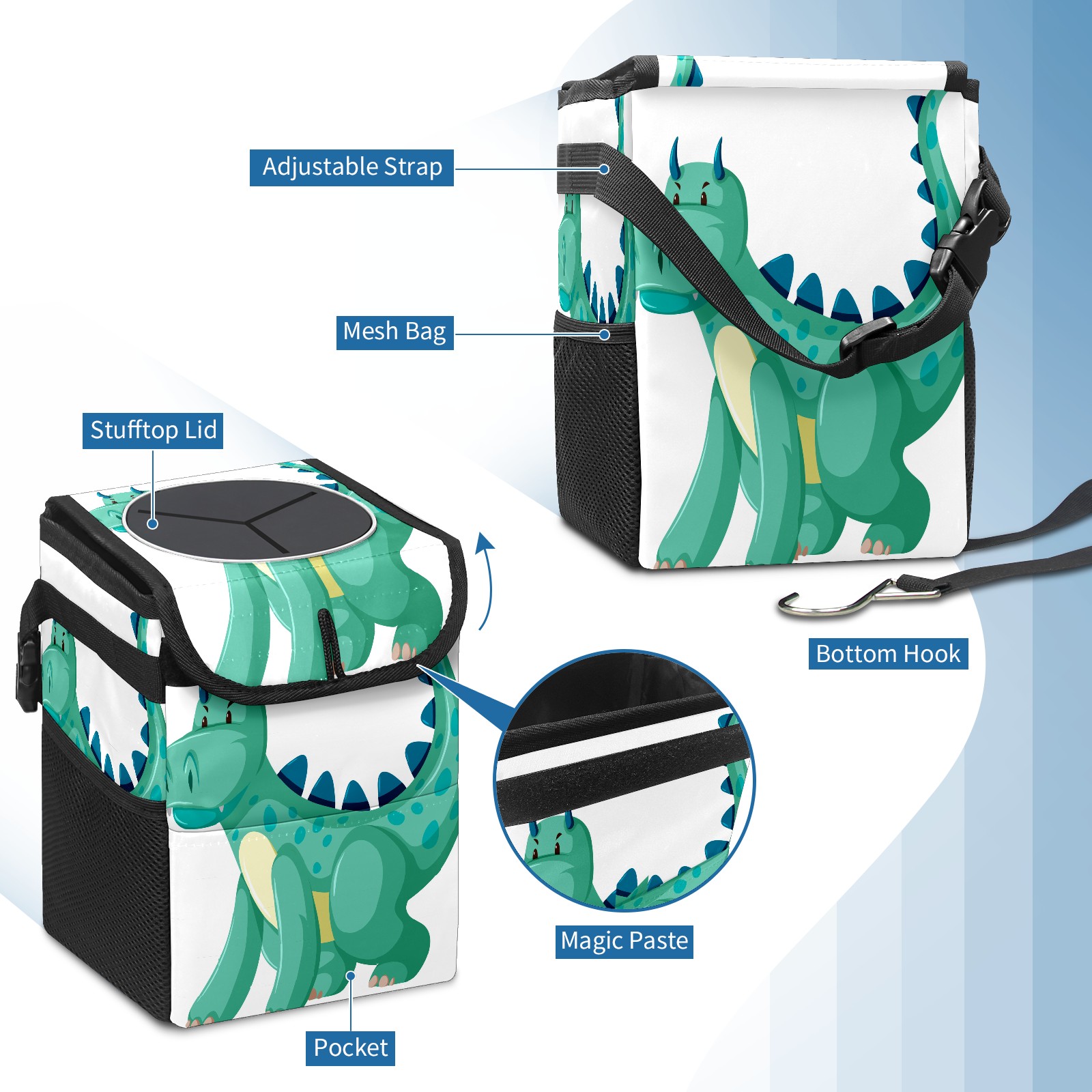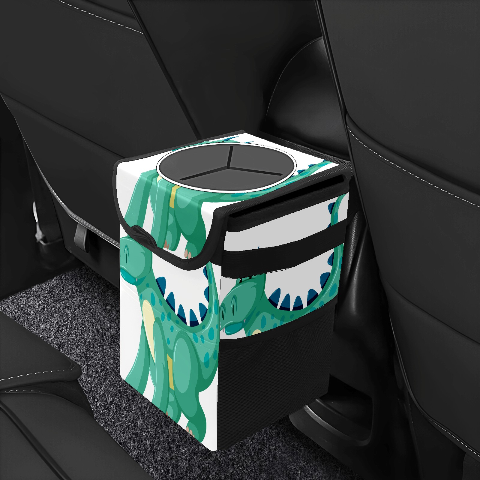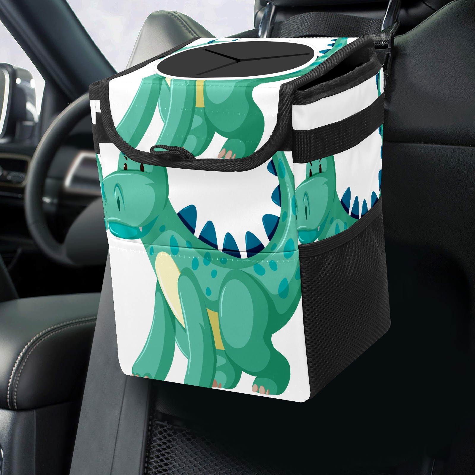 Car Trash Bin with Lid Auto Garbage Bag Hanging for Back Seat - Leakproof Trash Can for Cars SUVs Trucks Vehicle Car Accessories (Dinosaur Green)