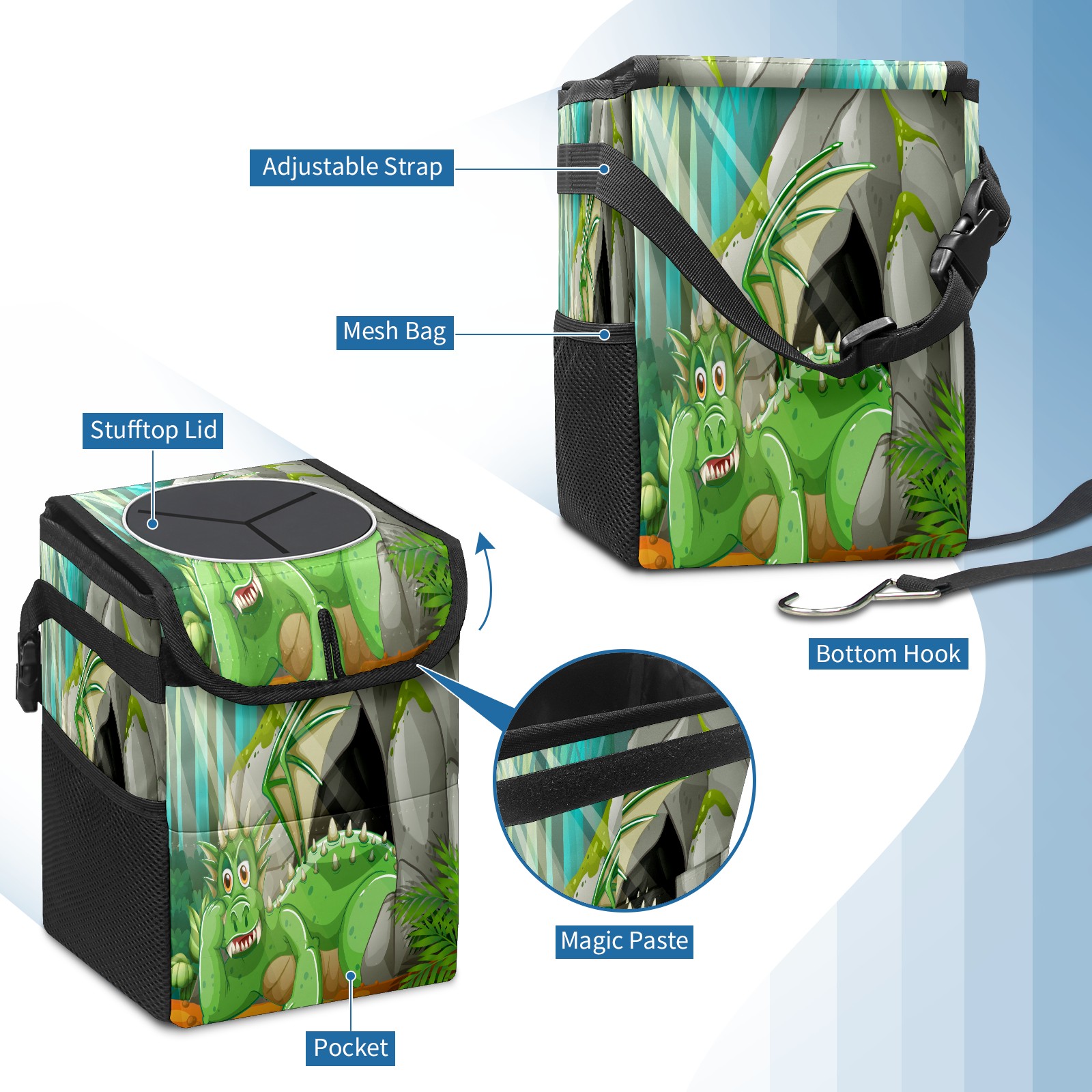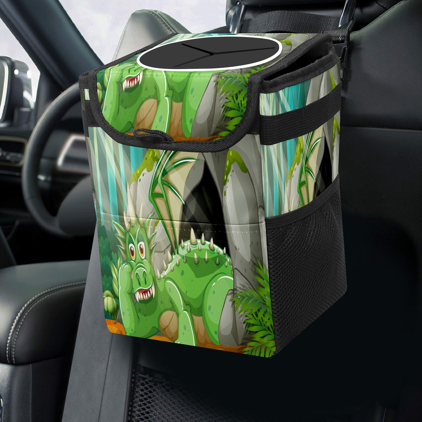Car Trash Bin with Lid Auto Garbage Bag Hanging for Back Seat - Leakproof Trash Can for Cars SUVs Trucks Vehicle Car Accessories (Dinosaur Sunshine)