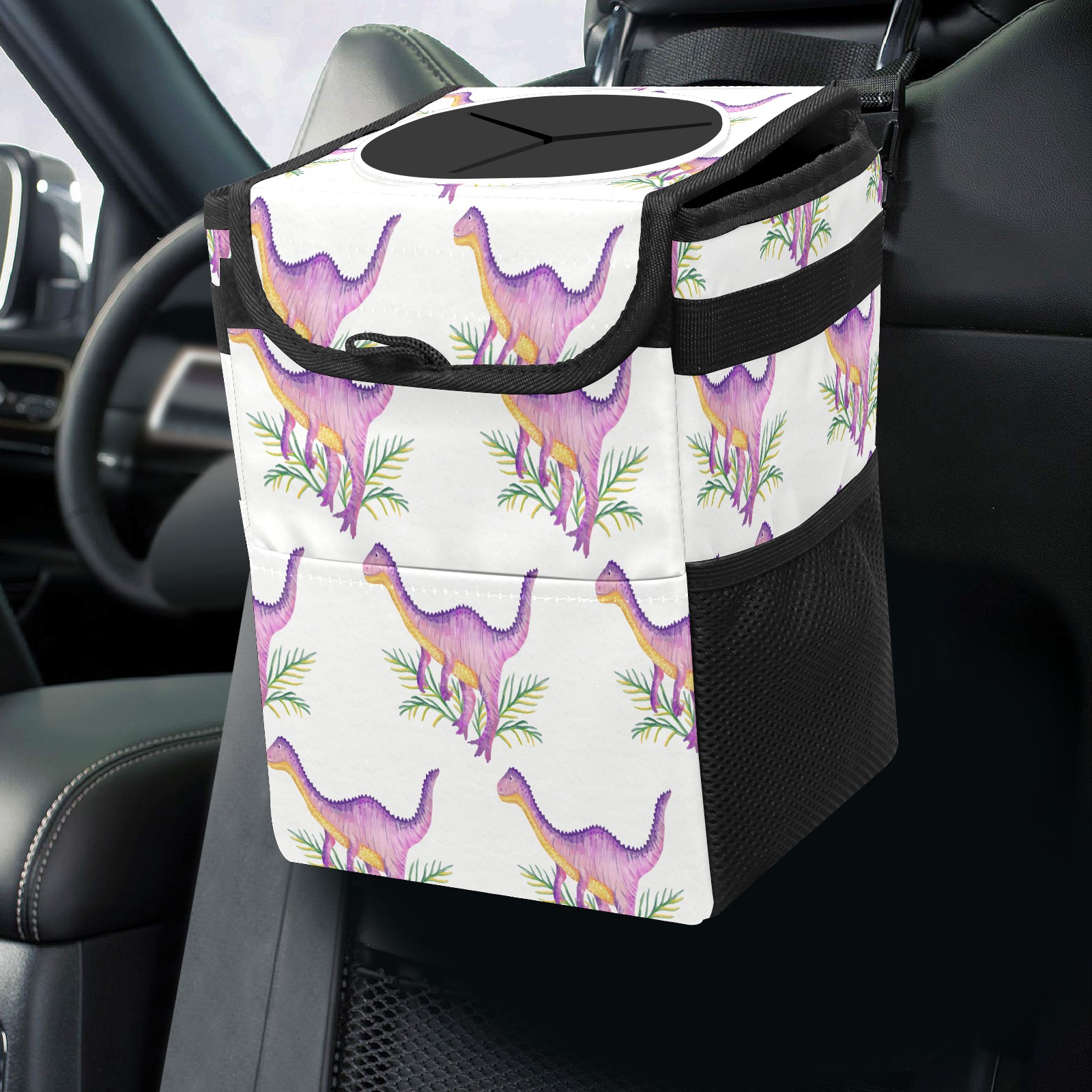 Car Trash Bin with Lid Auto Garbage Bag Hanging for Back Seat - Leakproof Trash Can for Cars SUVs Trucks Vehicle Car Accessories (Cute Dinosaur)