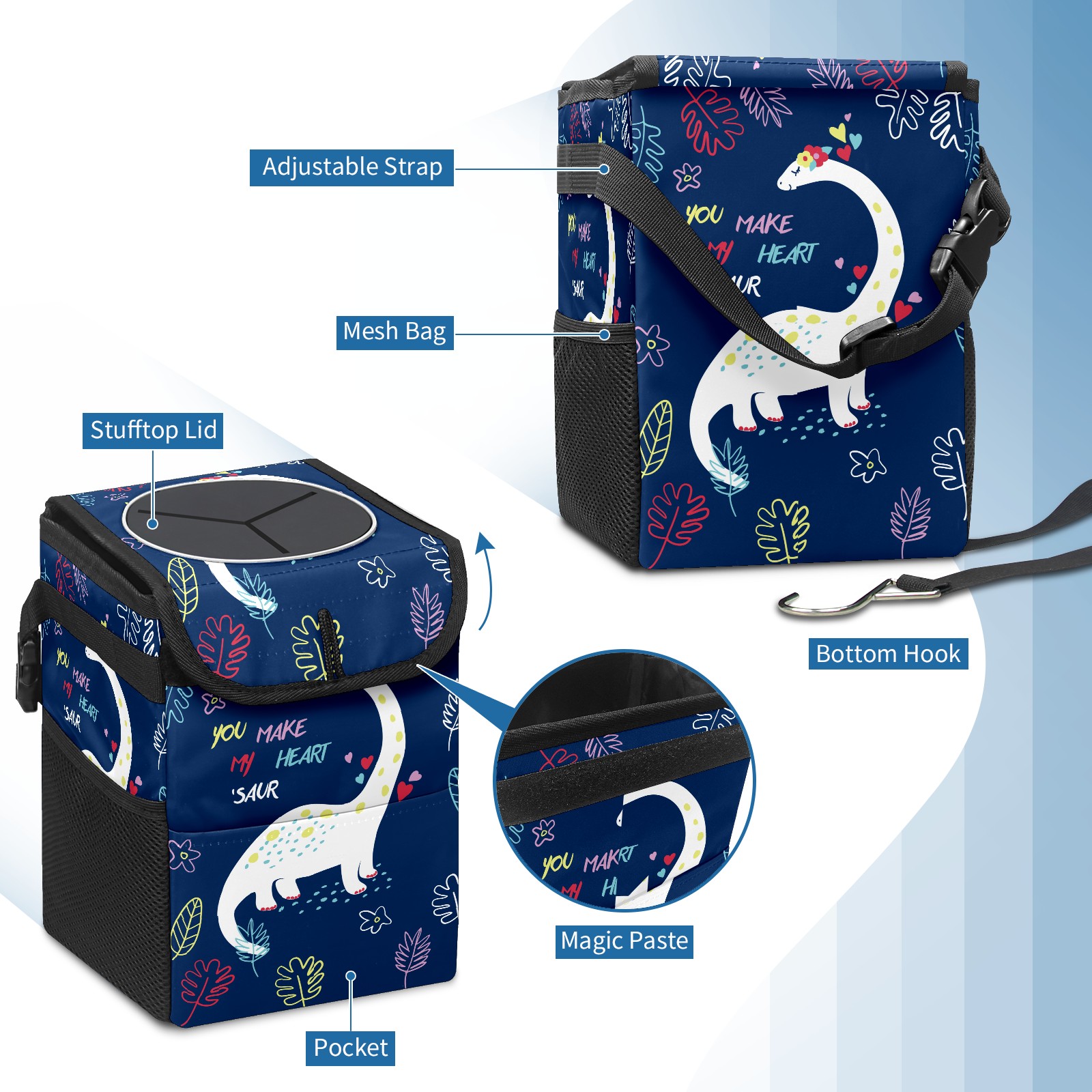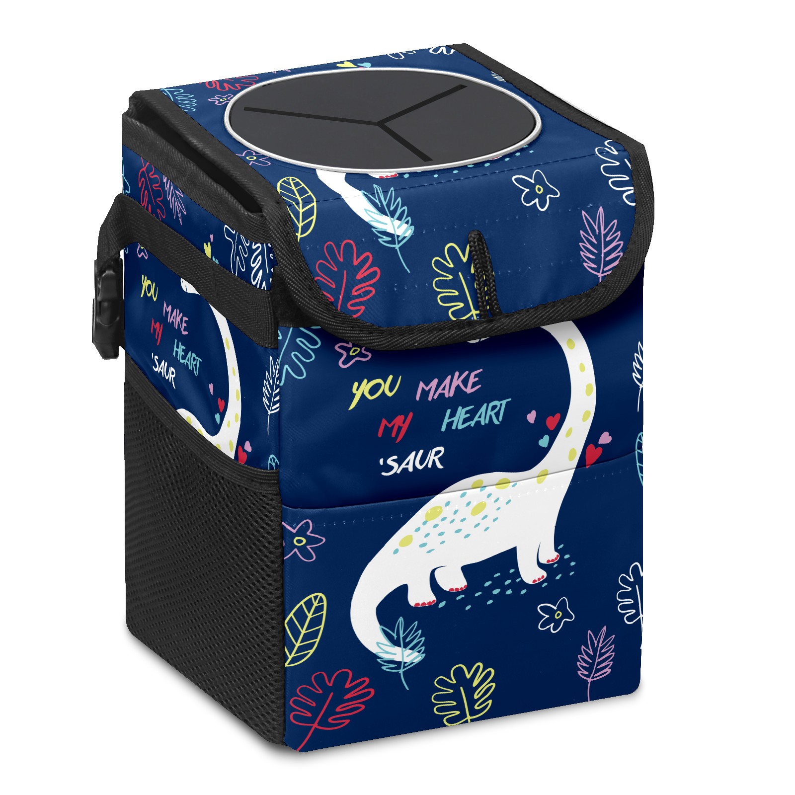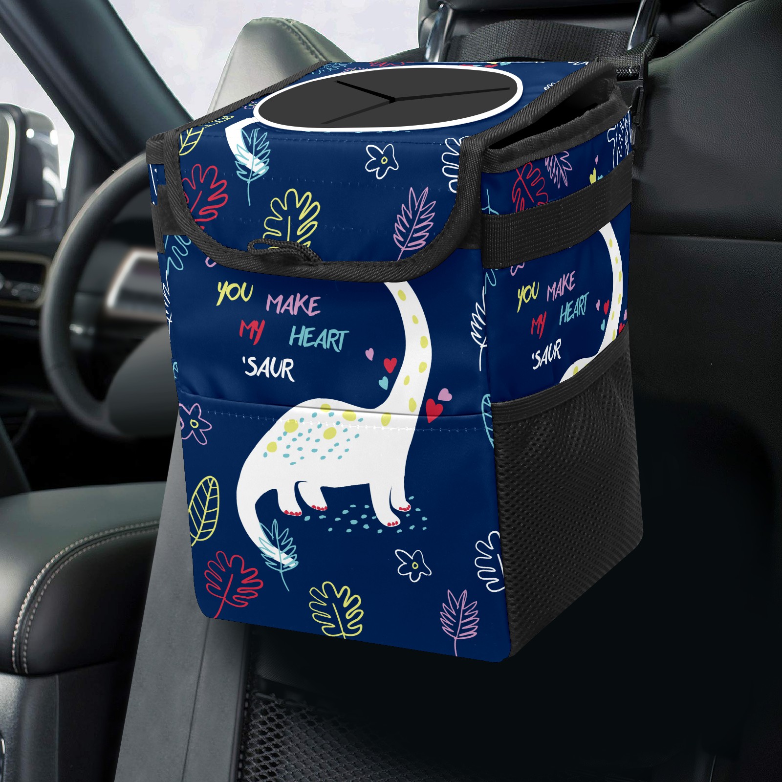 Car Trash Bin with Lid Auto Garbage Bag Hanging for Back Seat - Leakproof Trash Can for Cars SUVs Trucks Vehicle Car Accessories (Hand Drawn Dinosaur For Tshirt)