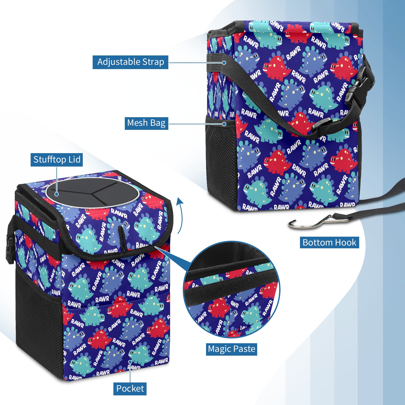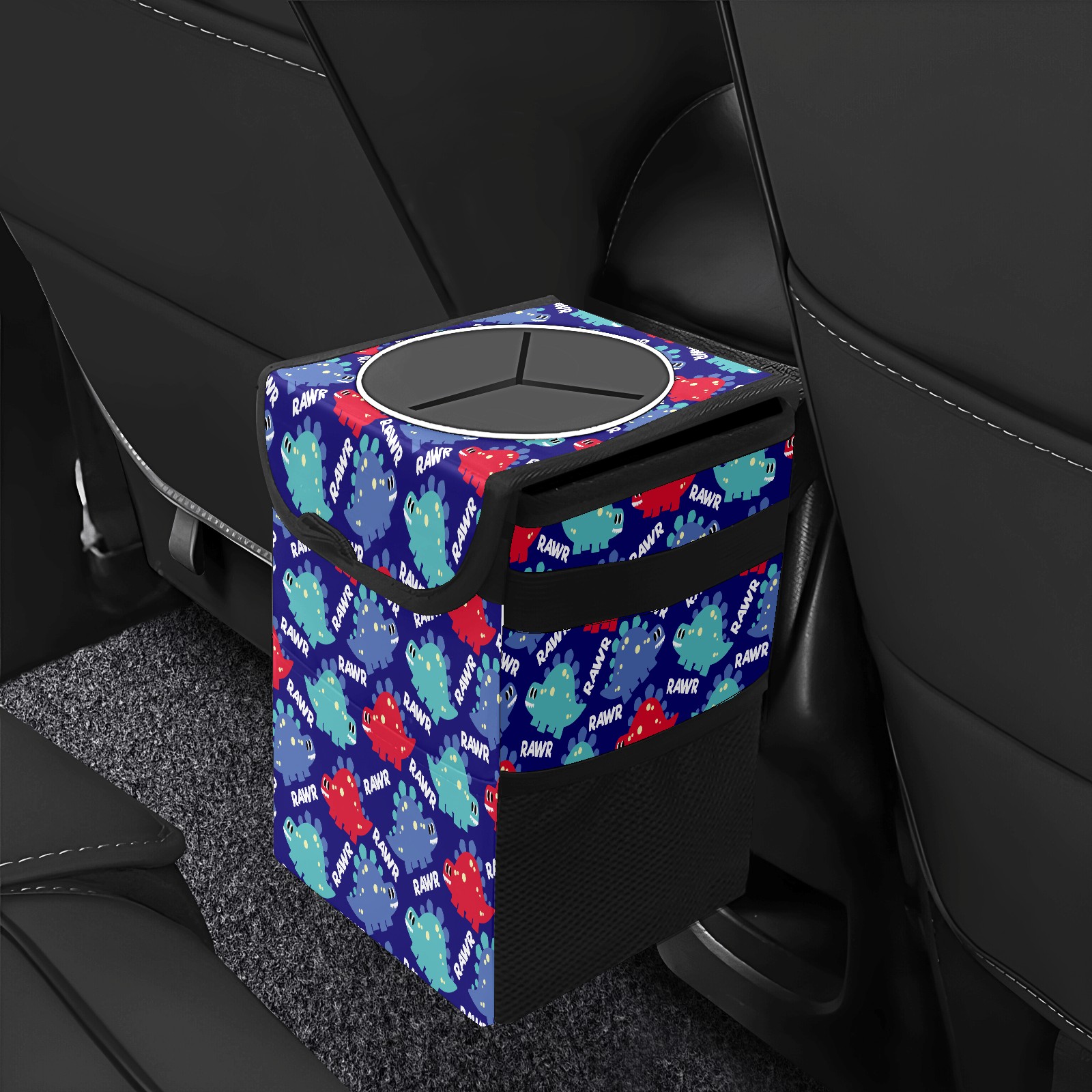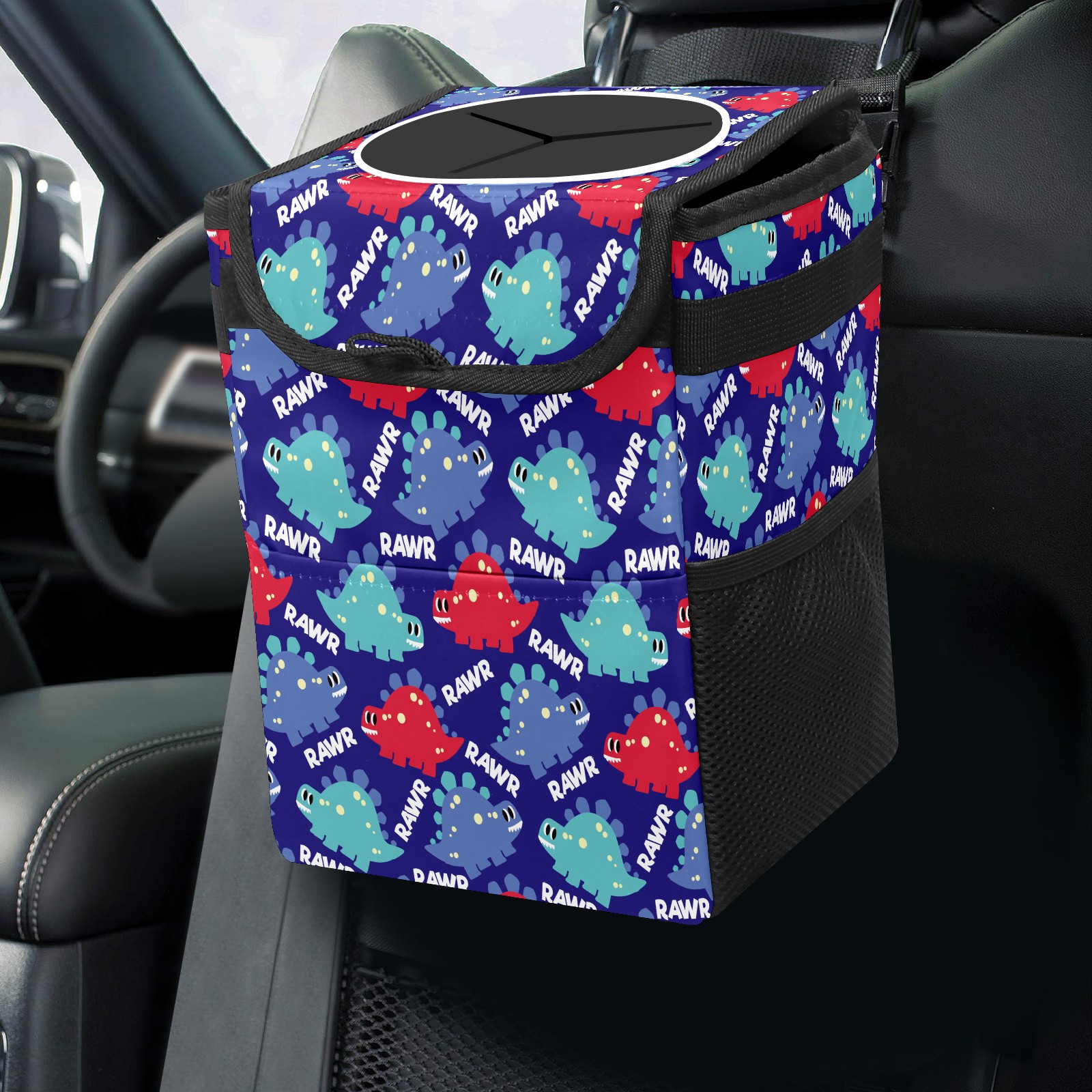 Car Trash Bin with Lid Auto Garbage Bag Hanging for Back Seat - Leakproof Trash Can for Cars SUVs Trucks Vehicle Car Accessories (Dinosaurs)