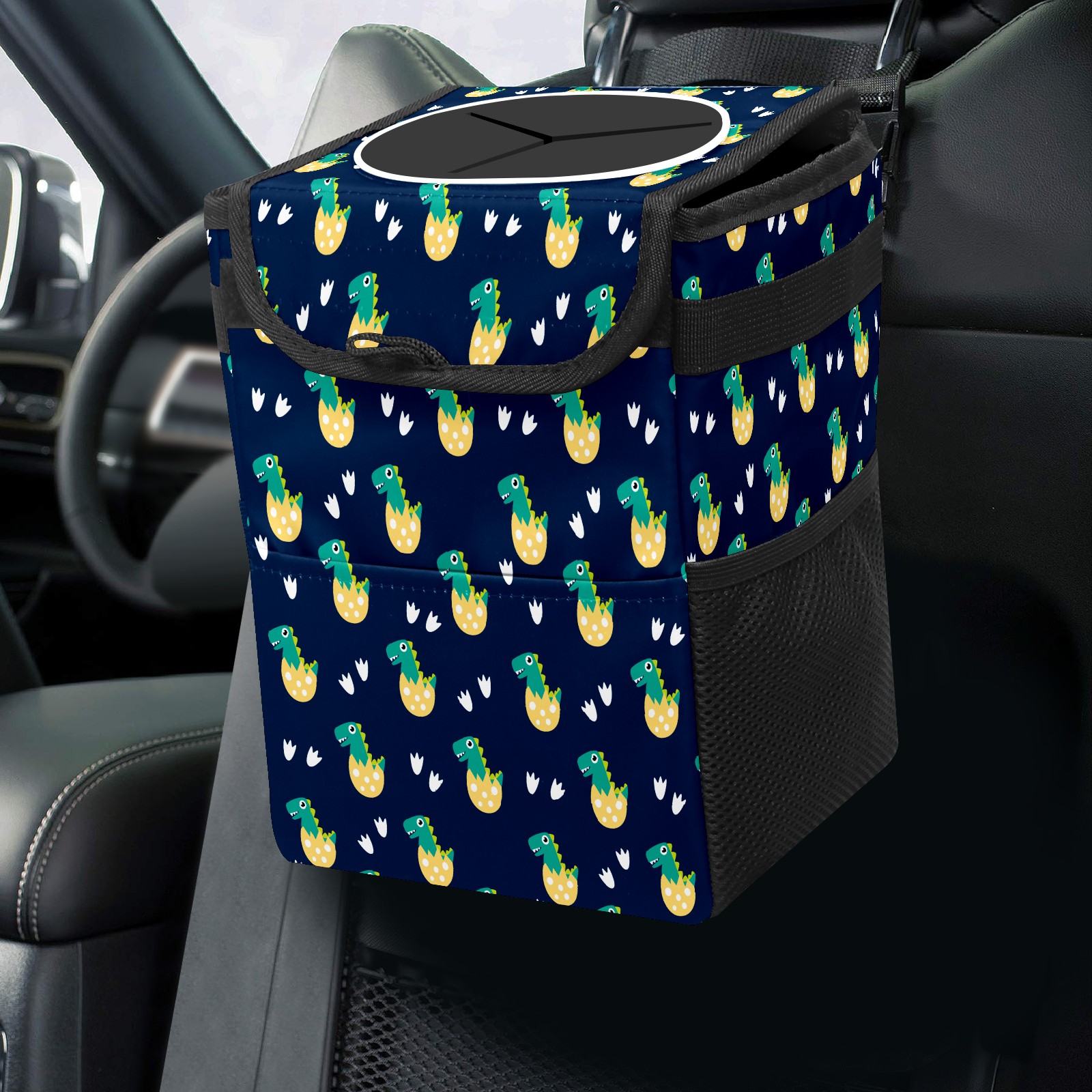 Car Trash Bin with Lid Auto Garbage Bag Hanging for Back Seat - Leakproof Trash Can for Cars SUVs Trucks Vehicle Car Accessories (Orange Dinosaurs)