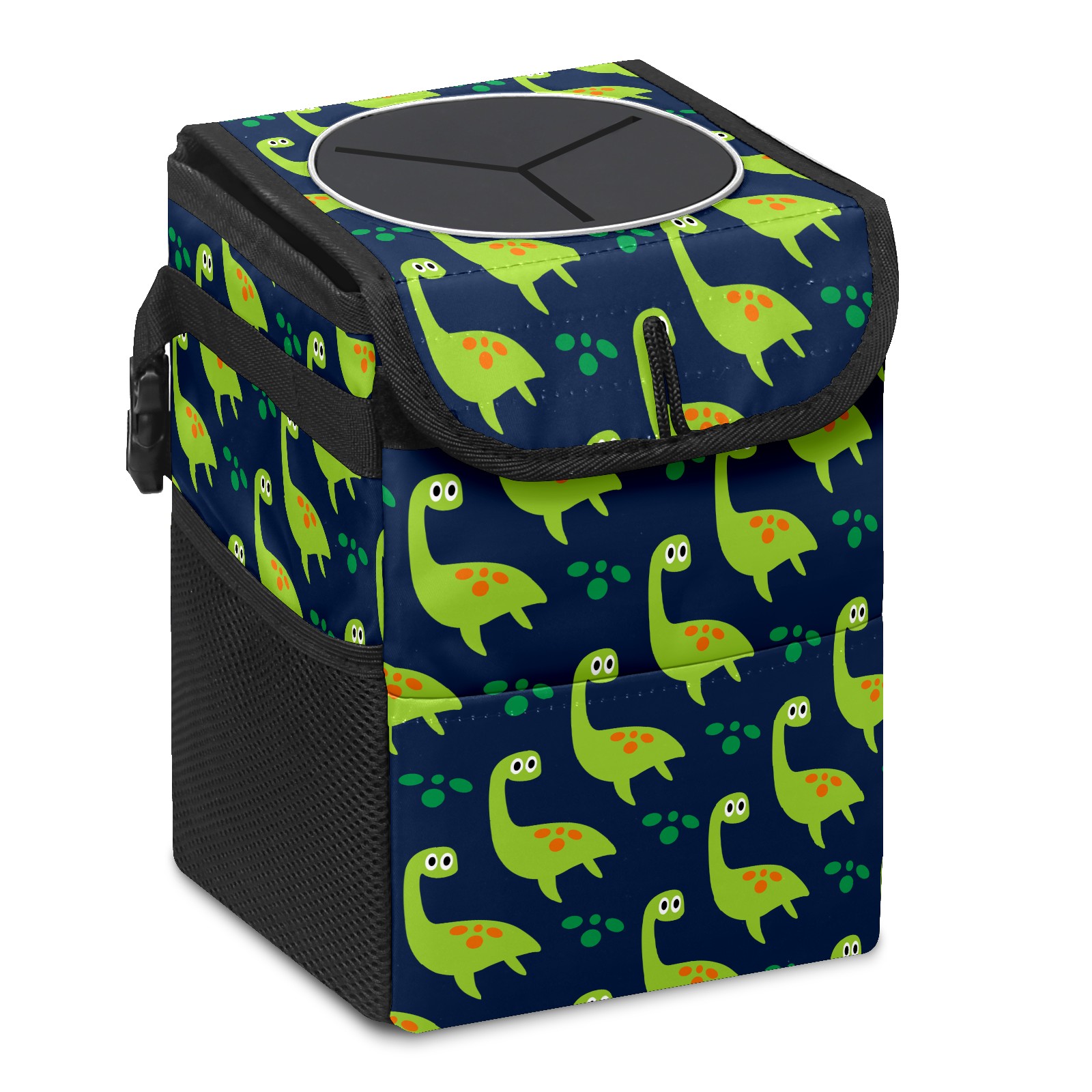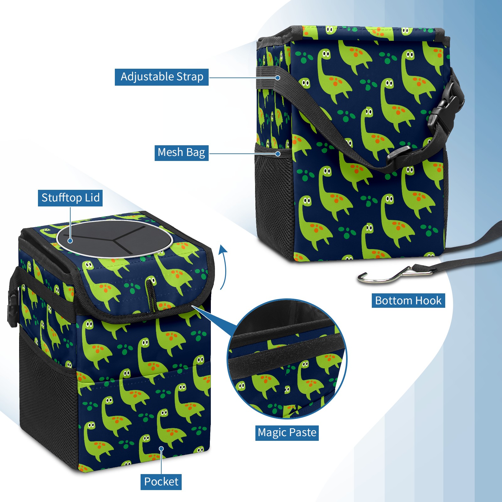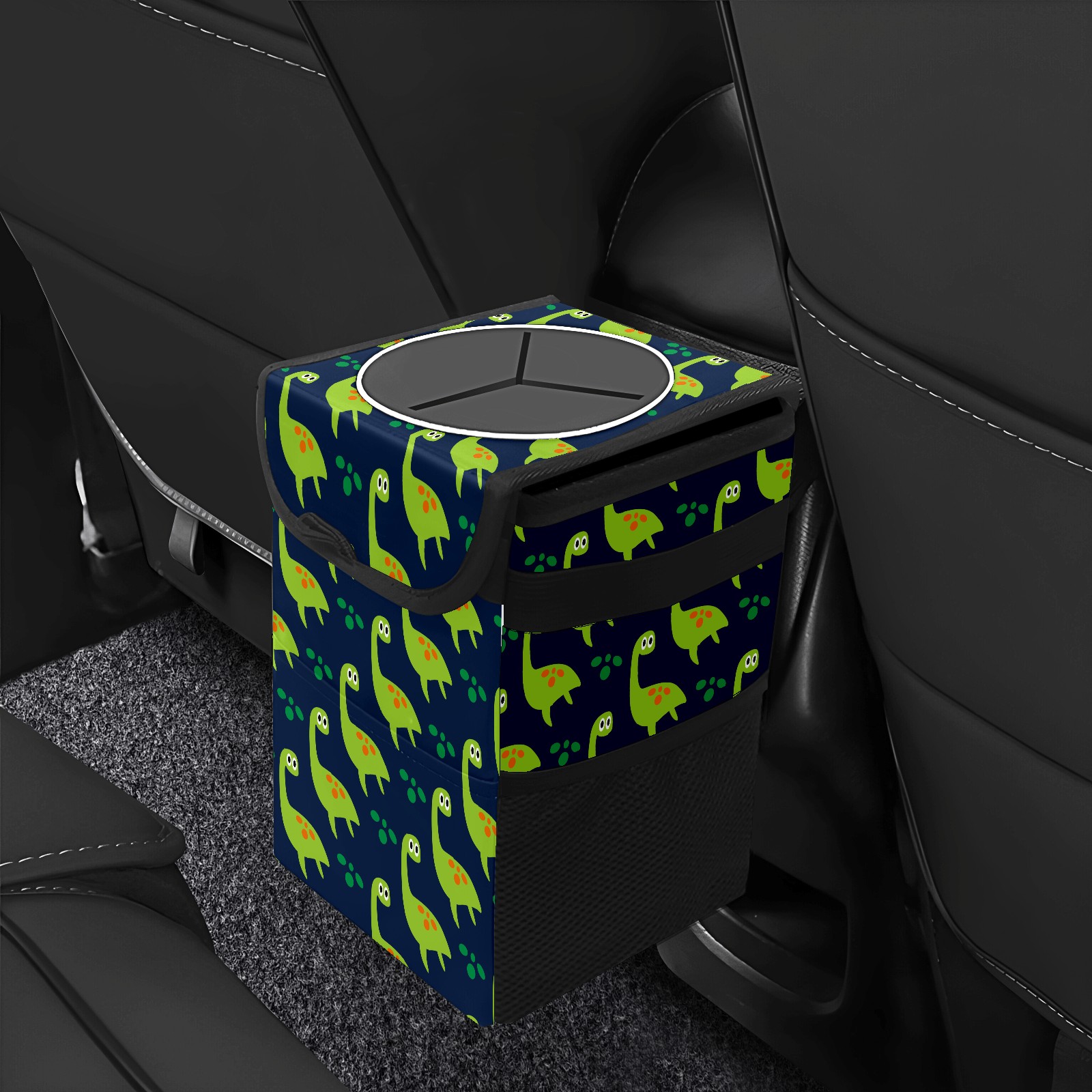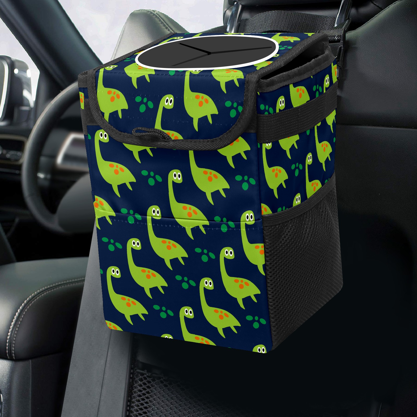 Car Trash Bin with Lid Auto Garbage Bag Hanging for Back Seat - Leakproof Trash Can for Cars SUVs Trucks Vehicle Car Accessories (Green Dinosaurs)