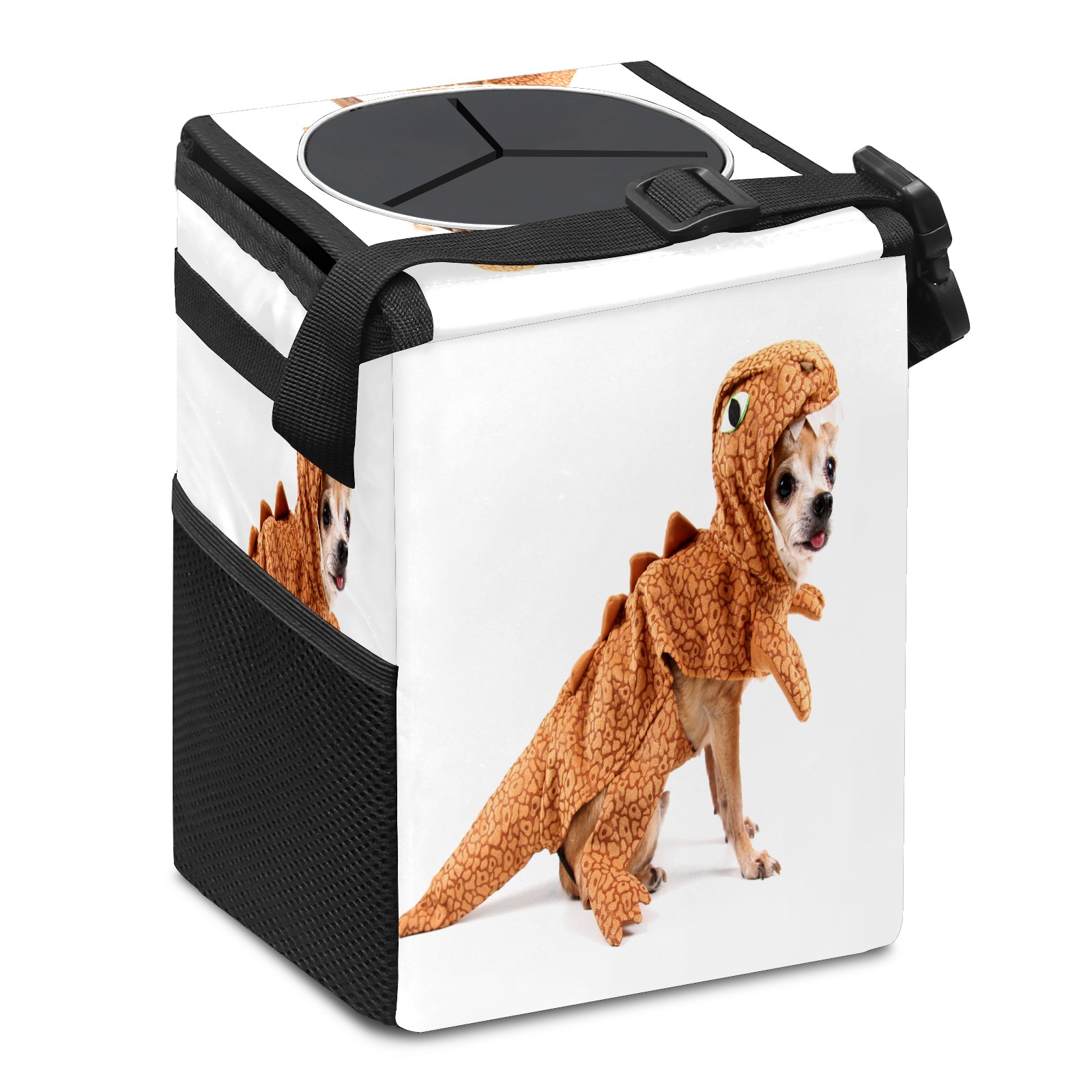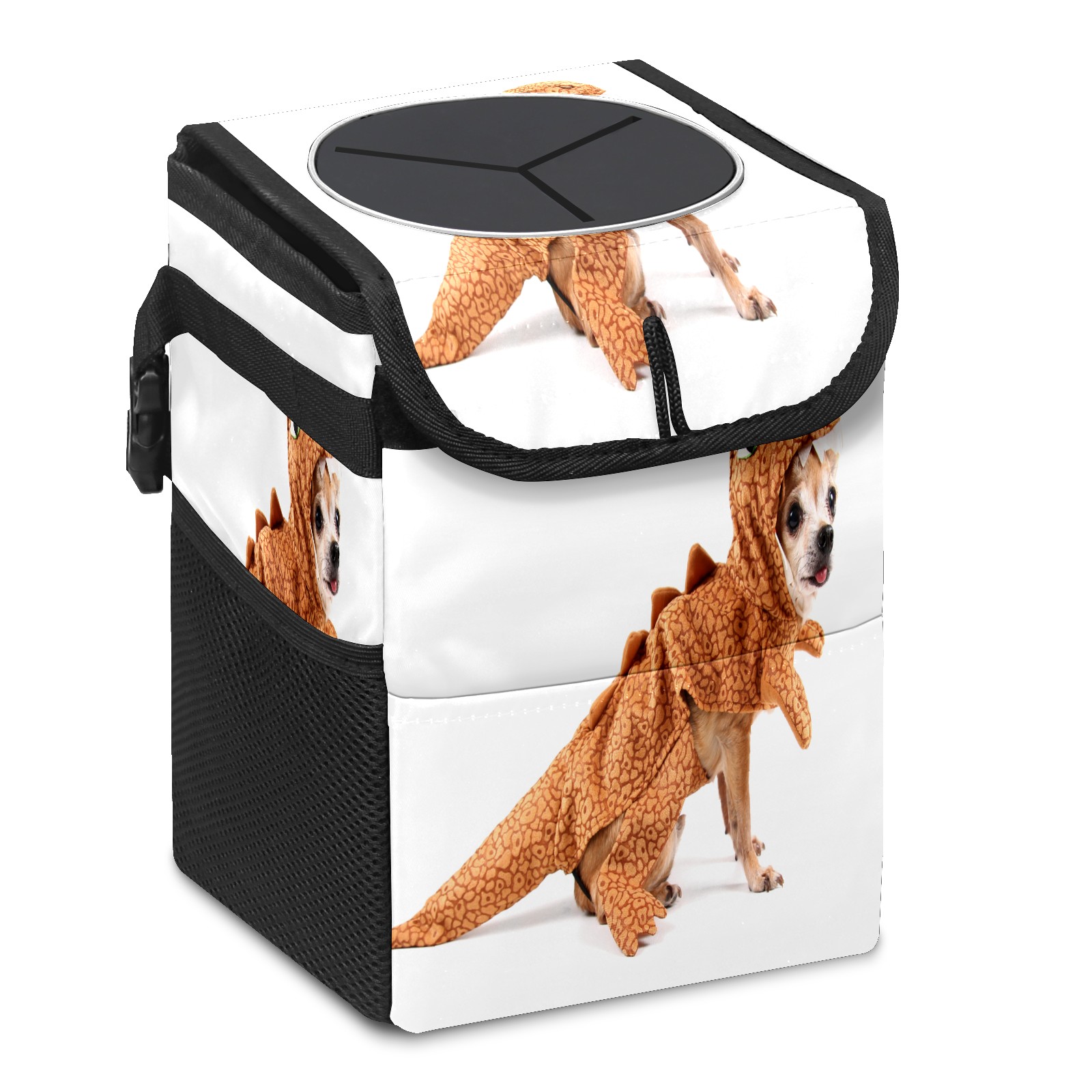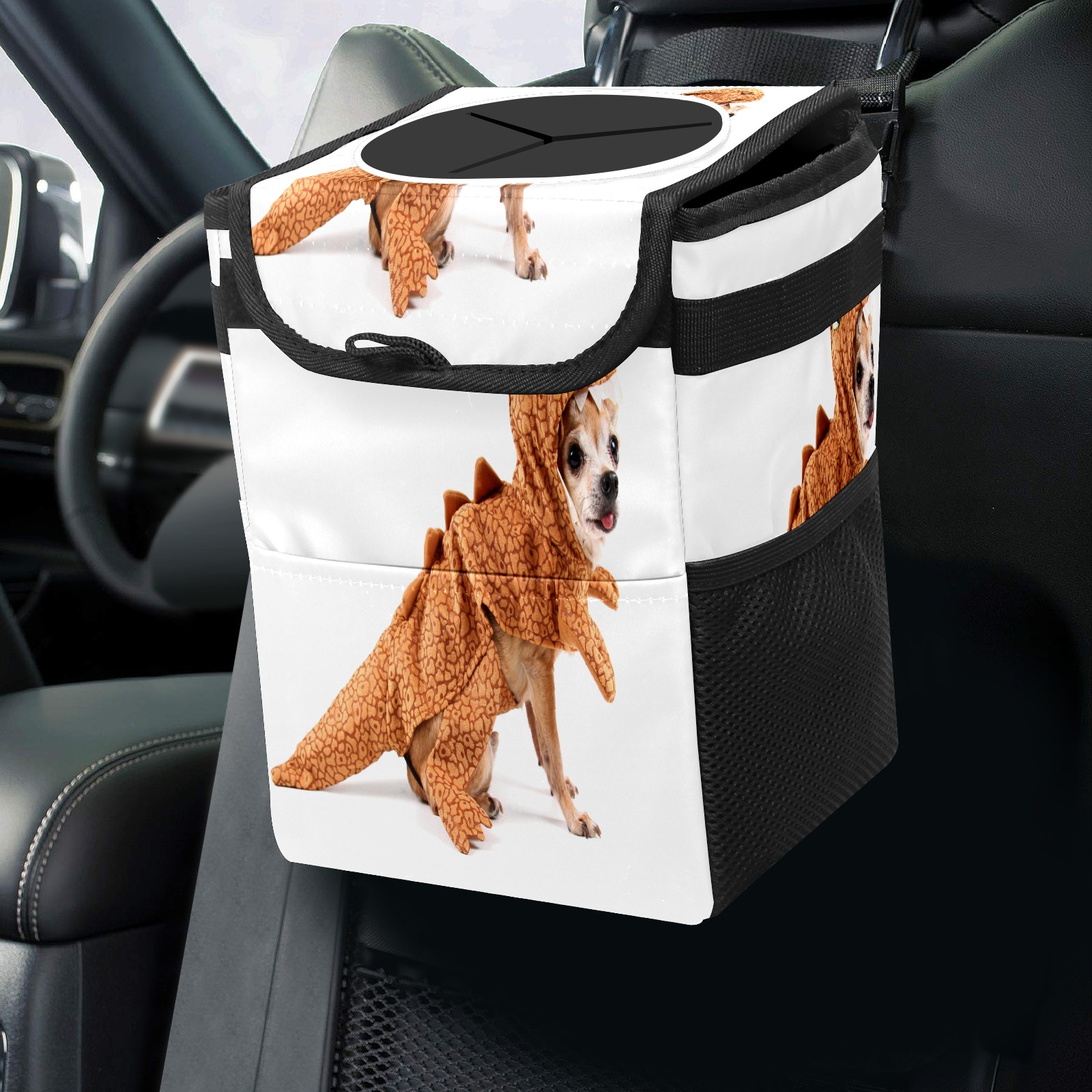 Car Trash Bin with Lid Auto Garbage Bag Hanging for Back Seat - Leakproof Trash Can for Cars SUVs Trucks Vehicle Car Accessories (Dogs Funny Dog Chihuahua Breed Dinosaur Suit White)