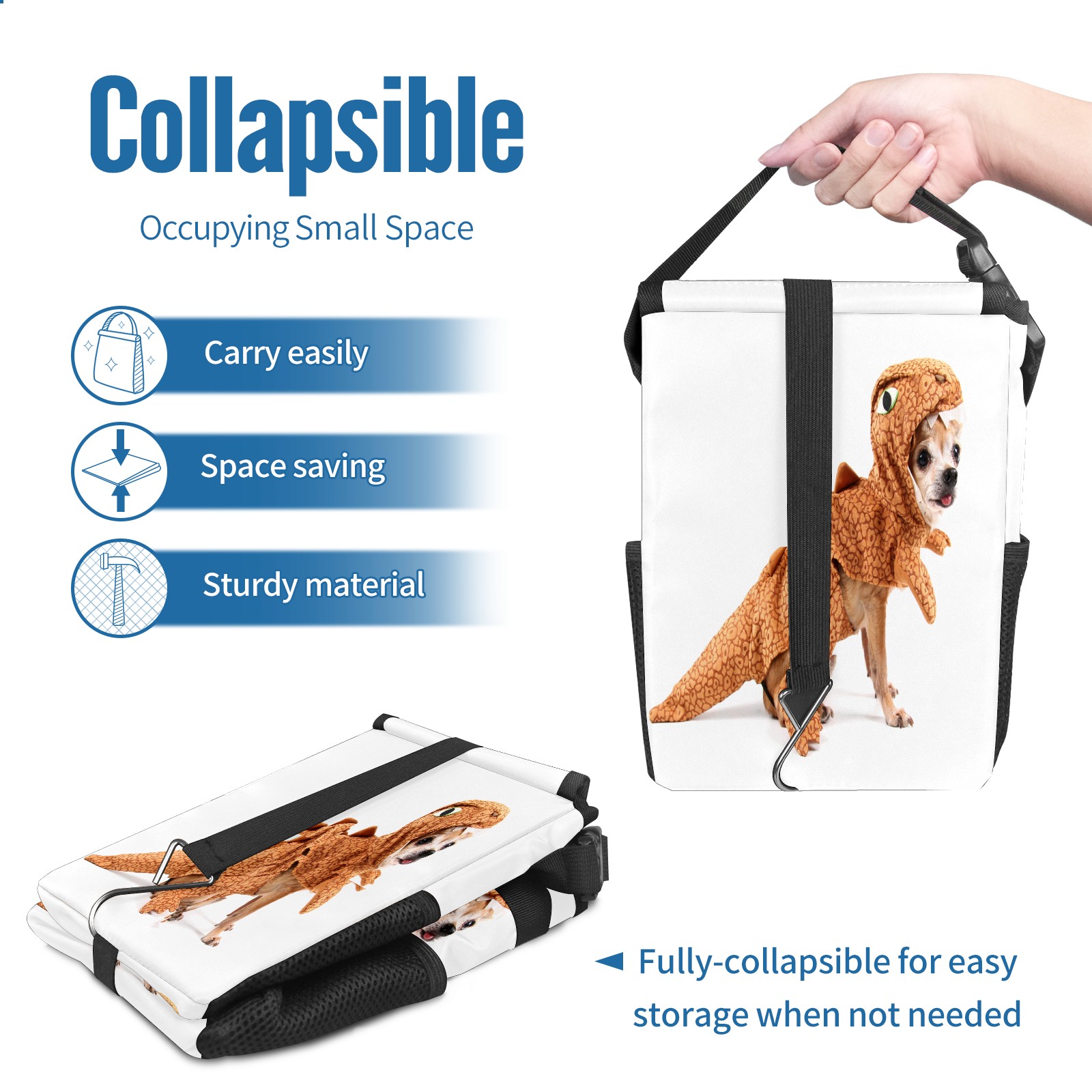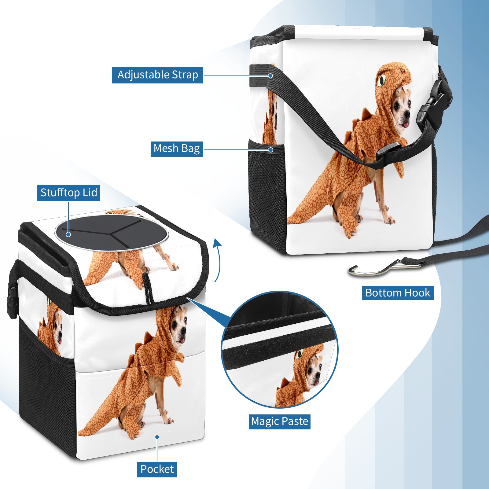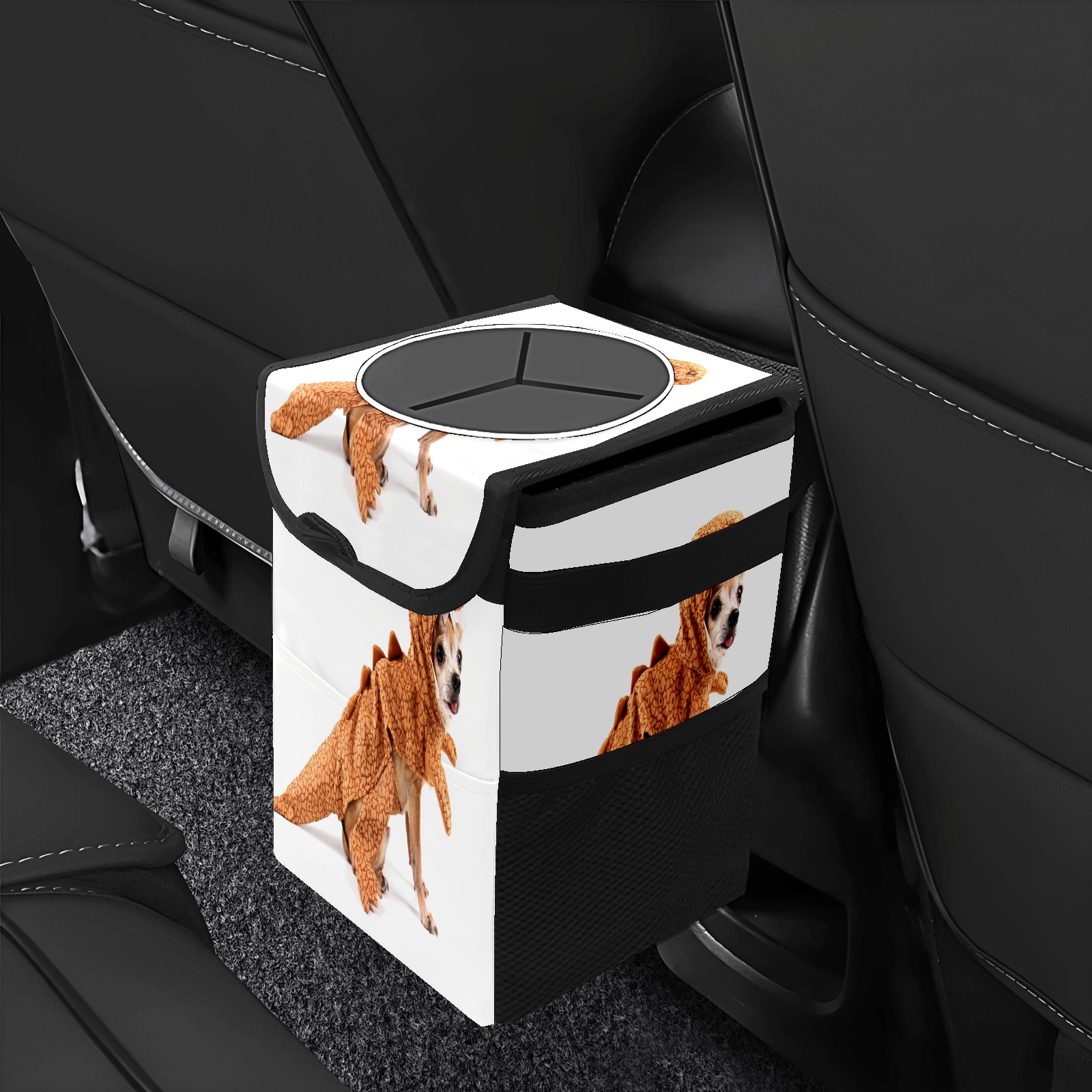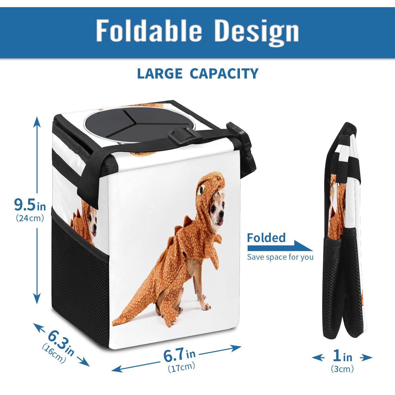 Car Trash Bin with Lid Auto Garbage Bag Hanging for Back Seat - Leakproof Trash Can for Cars SUVs Trucks Vehicle Car Accessories (Dogs Funny Dog Chihuahua Breed Dinosaur Suit White)