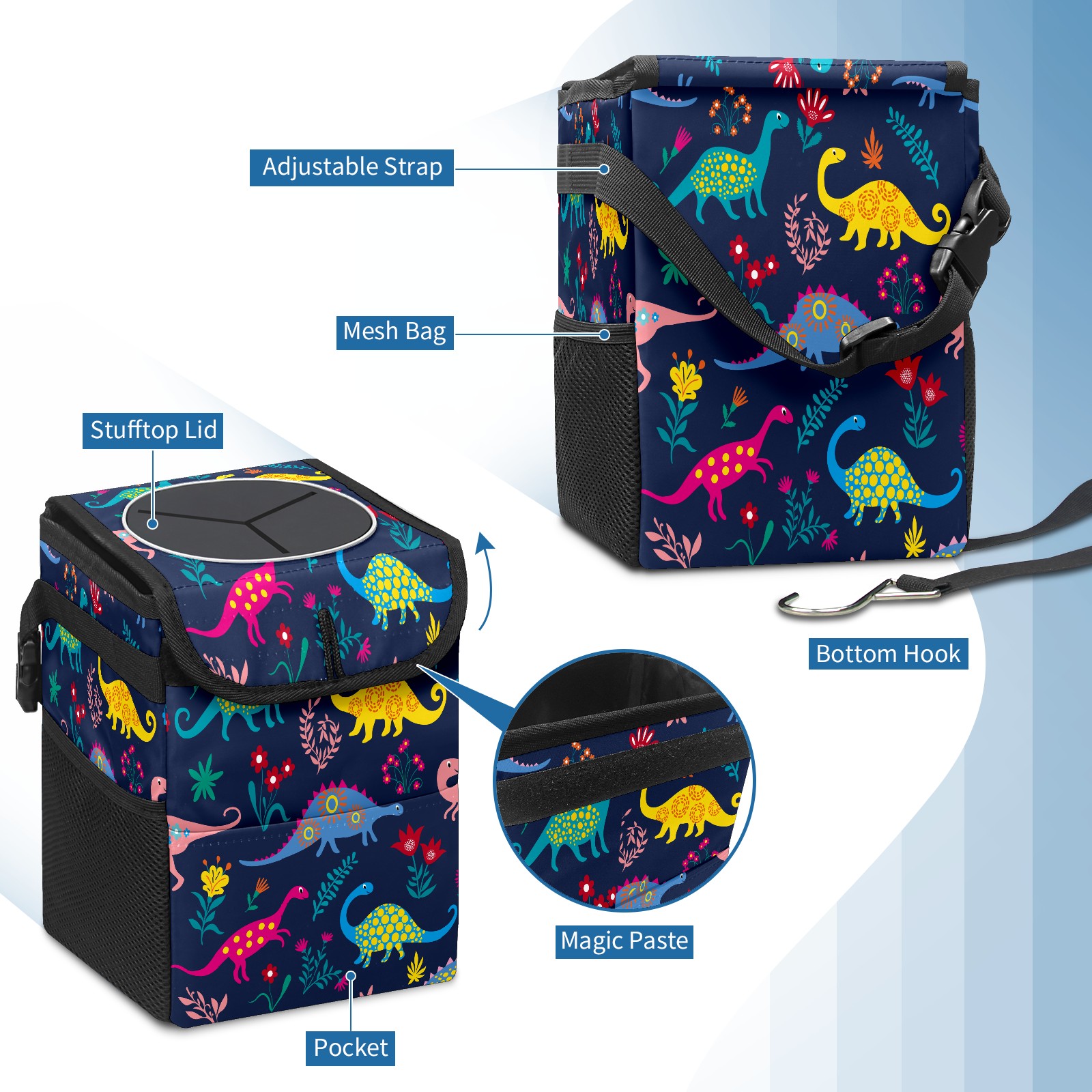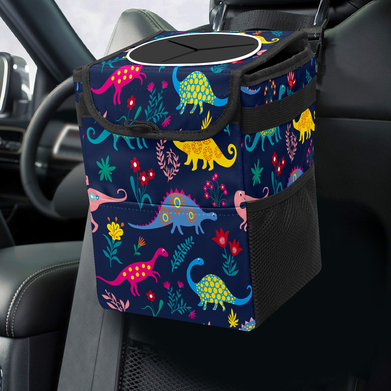Car Trash Bin with Lid Auto Garbage Bag Hanging for Back Seat - Leakproof Trash Can for Cars SUVs Trucks Vehicle Car Accessories (Dinosaur World)