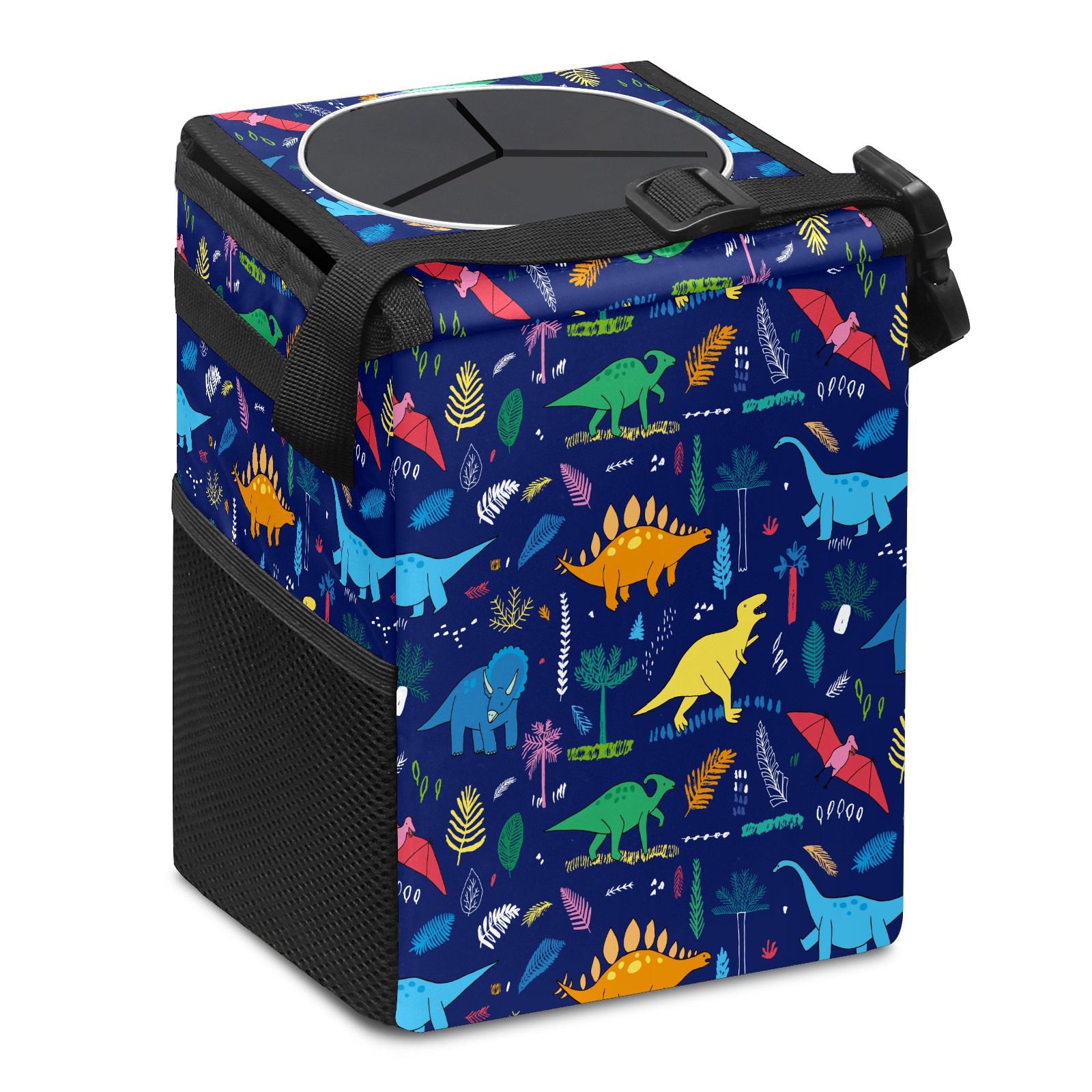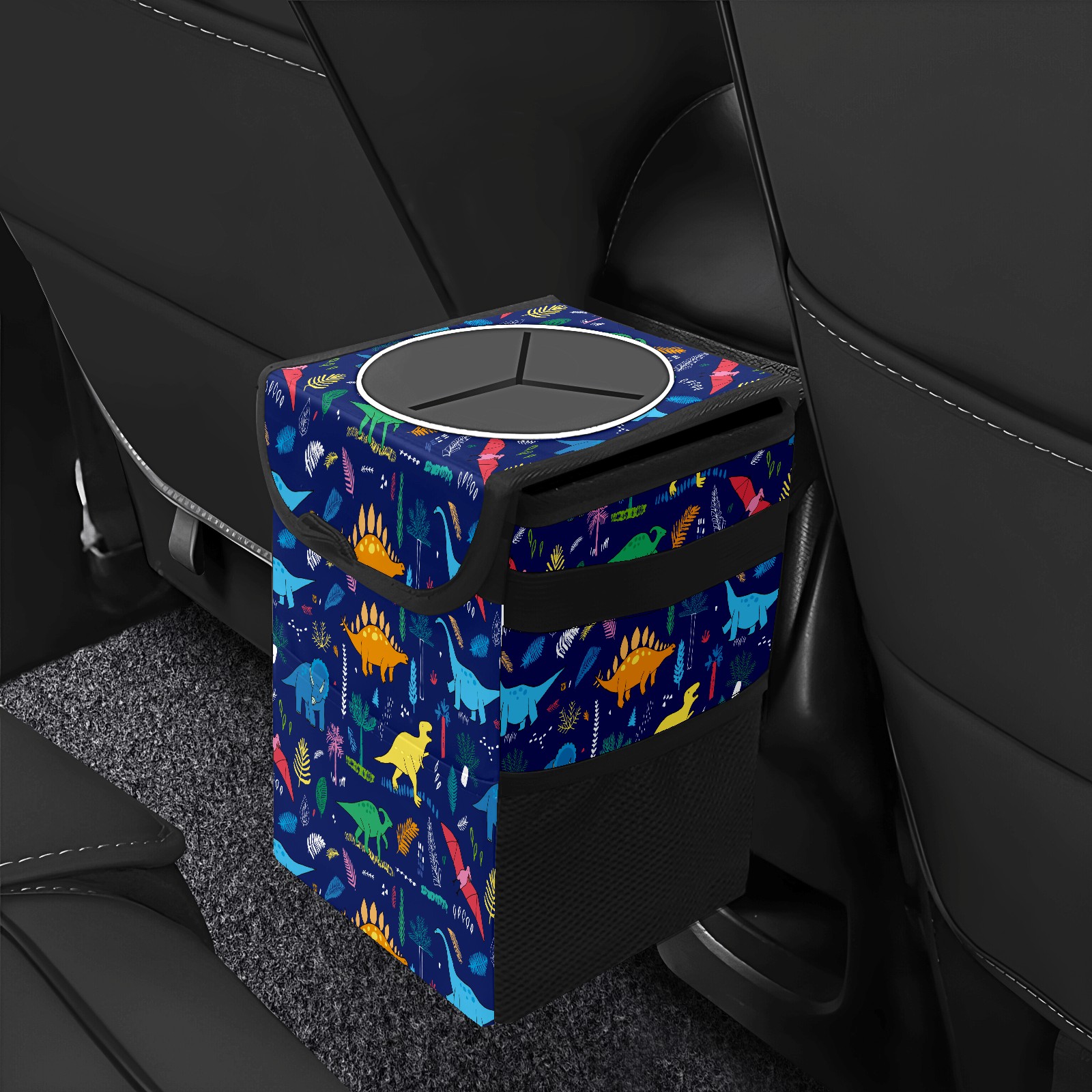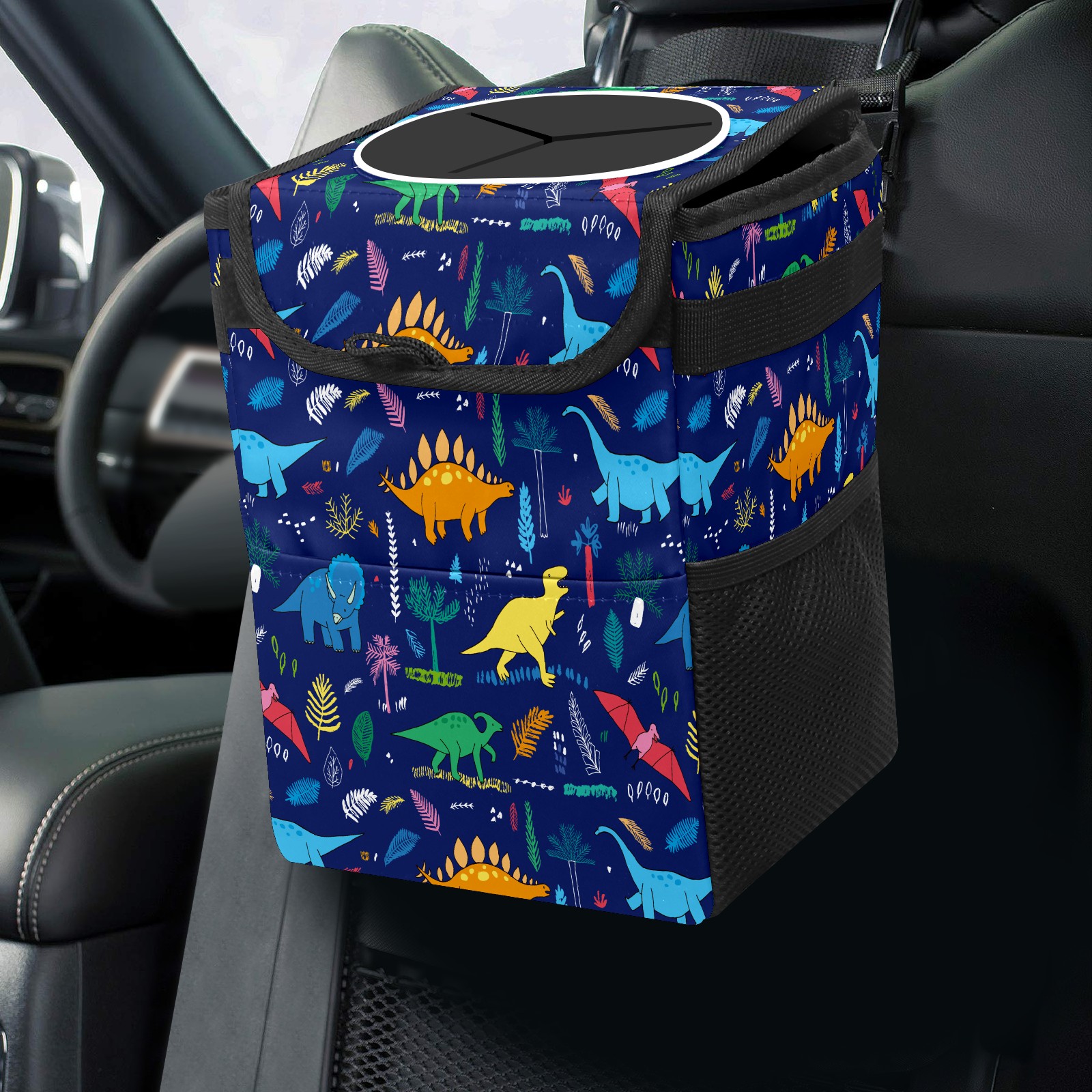 Car Trash Bin with Lid Auto Garbage Bag Hanging for Back Seat - Leakproof Trash Can for Cars SUVs Trucks Vehicle Car Accessories (Colo Dinosaurs)
