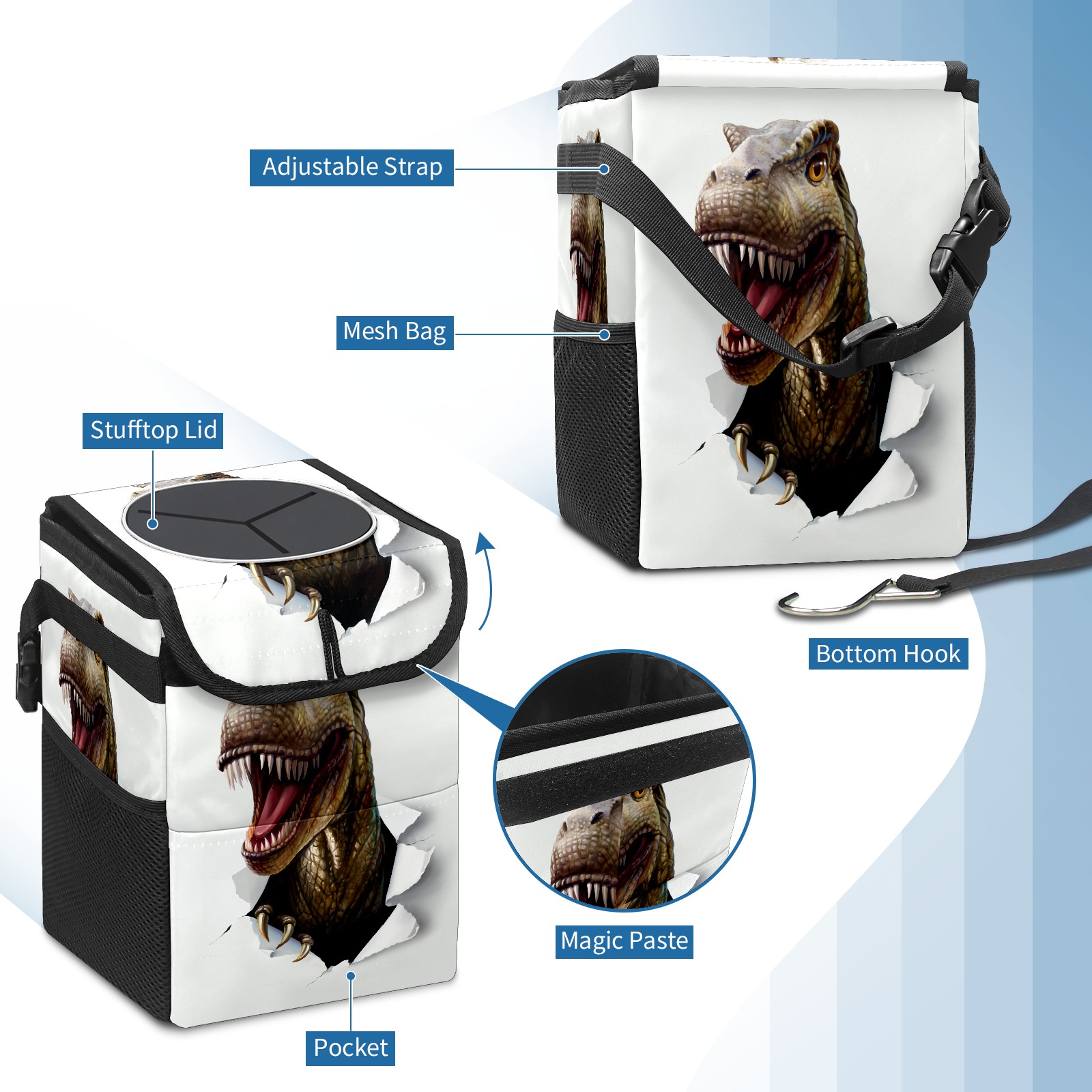 Car Trash Bin with Lid Auto Garbage Bag Hanging for Back Seat - Leakproof Trash Can for Cars SUVs Trucks Vehicle Car Accessories (3D Dinosaur)