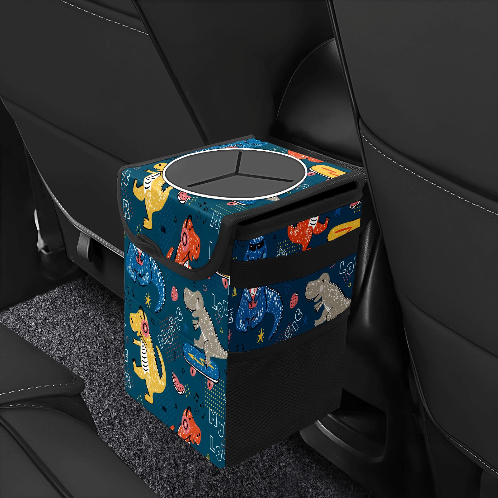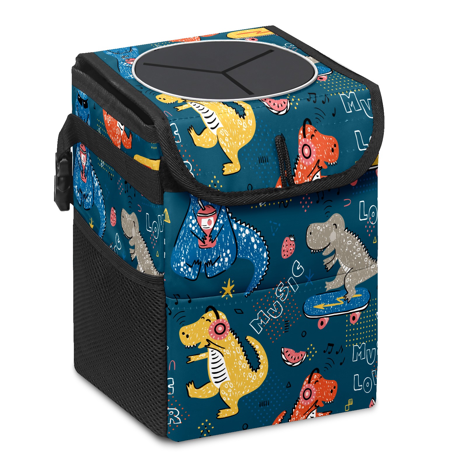 Car Trash Bin with Lid Auto Garbage Bag Hanging for Back Seat - Leakproof Trash Can for Cars SUVs Trucks Vehicle Car Accessories (Funny Music Dinosaur)