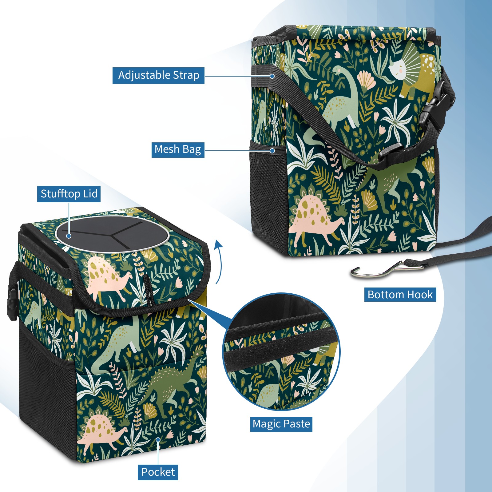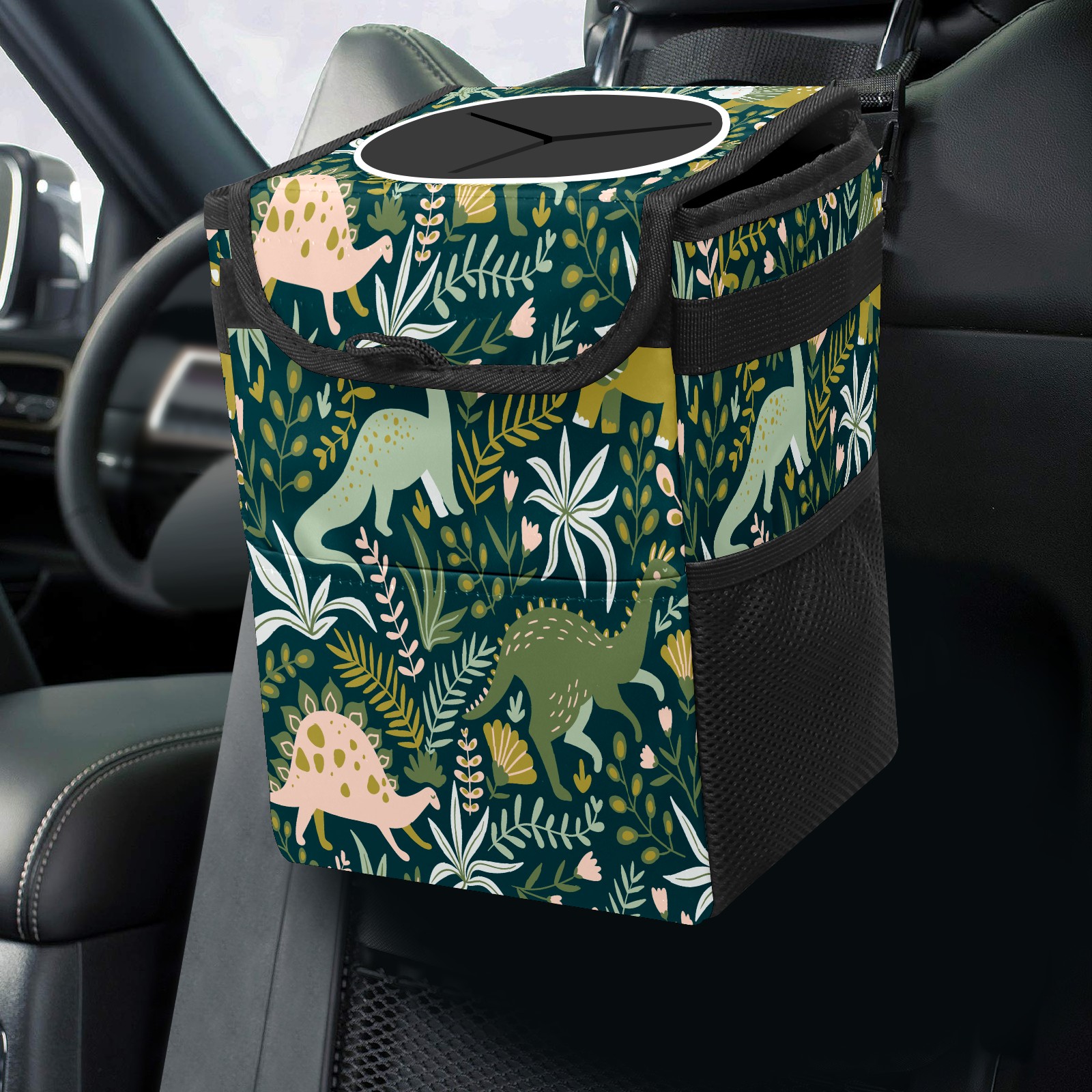 Car Trash Bin with Lid Auto Garbage Bag Hanging for Back Seat - Leakproof Trash Can for Cars SUVs Trucks Vehicle Car Accessories (Dinosaurs Forest)