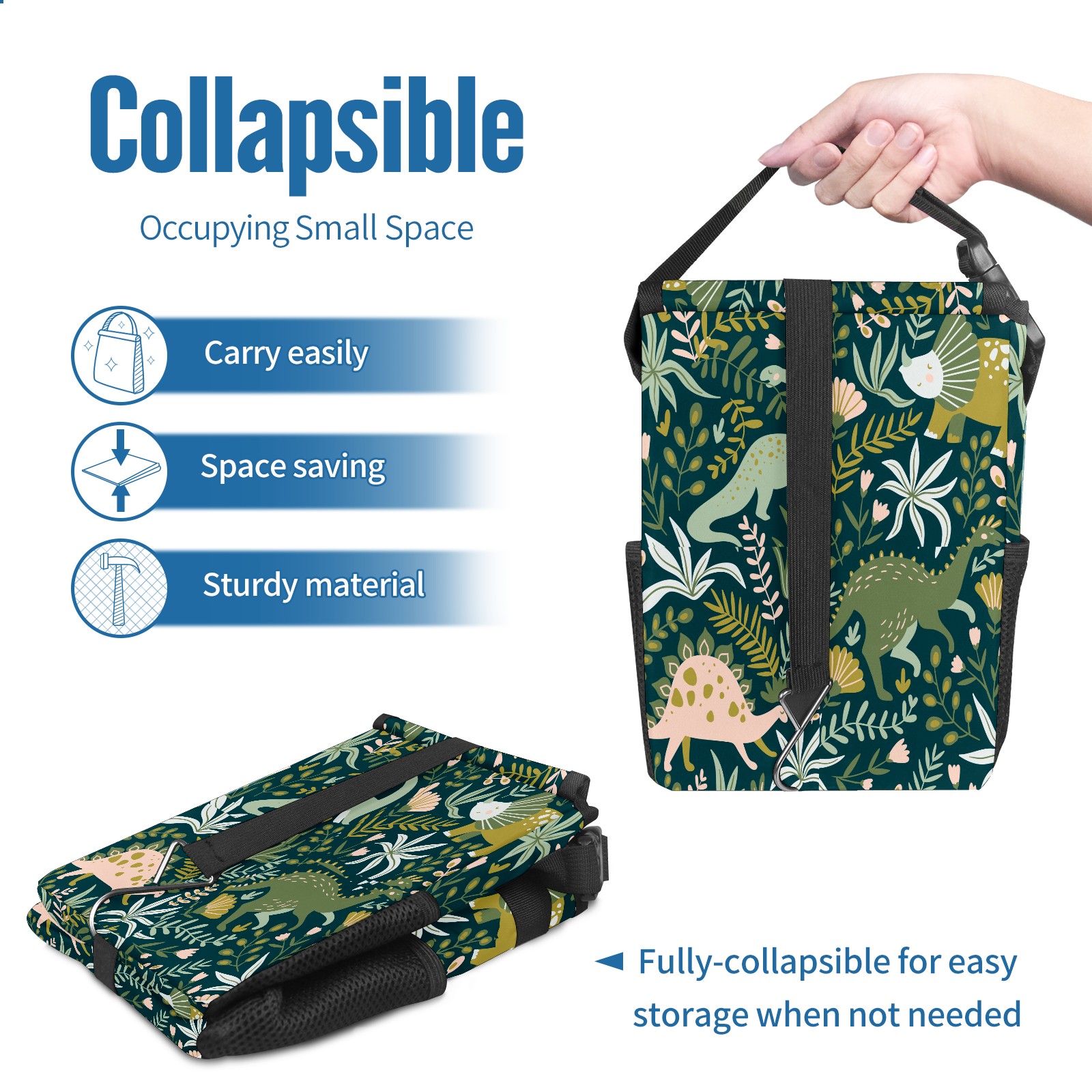 FOLDABLE & SPACE-SAVING Compact 9.5"×6.7"×6.3" size fits perfectly in any vehicle space Instantly folds flat when not in use - stores effortlessly under seats or in door pockets MULTI-FUNCTION ORGANIZER Large main compartment holds bottles, wrappers and tissues Additional pockets for wet wipes, masks or small accessories WATERPROOF & LEAKPROOF Made with premium leak-proof polyester material Contains messy spills from drinks, snacks, and food Wipe-clean surface resists stains and eliminates odors Package Includes 1× Car Trash Can