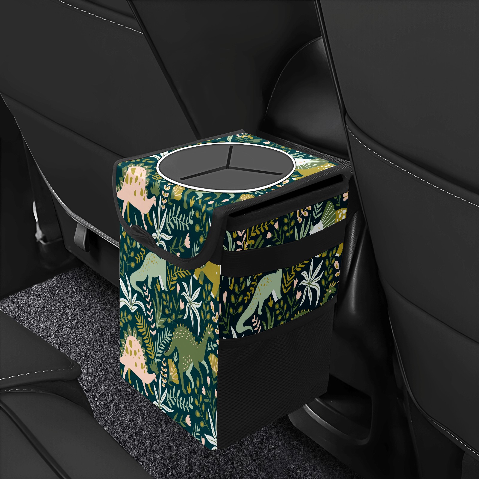• FOLDABLE & SPACE-SAVING Compact 9.5"×6.7"×6.3" size fits perfectly in any vehicle space Instantly folds flat when not in use - stores effortlessly under seats or in door pockets MULTI-FUNCTION ORGANIZER Large main compartment holds bottles, wrappers and tissues Additional pockets for wet wipes, masks or small accessories WATERPROOF & LEAKPROOF Made with premium leak-proof polyester material Contains messy spills from drinks, snacks, and food Wipe-clean surface resists stains and eliminates odors Package Includes 1× Car Trash Can