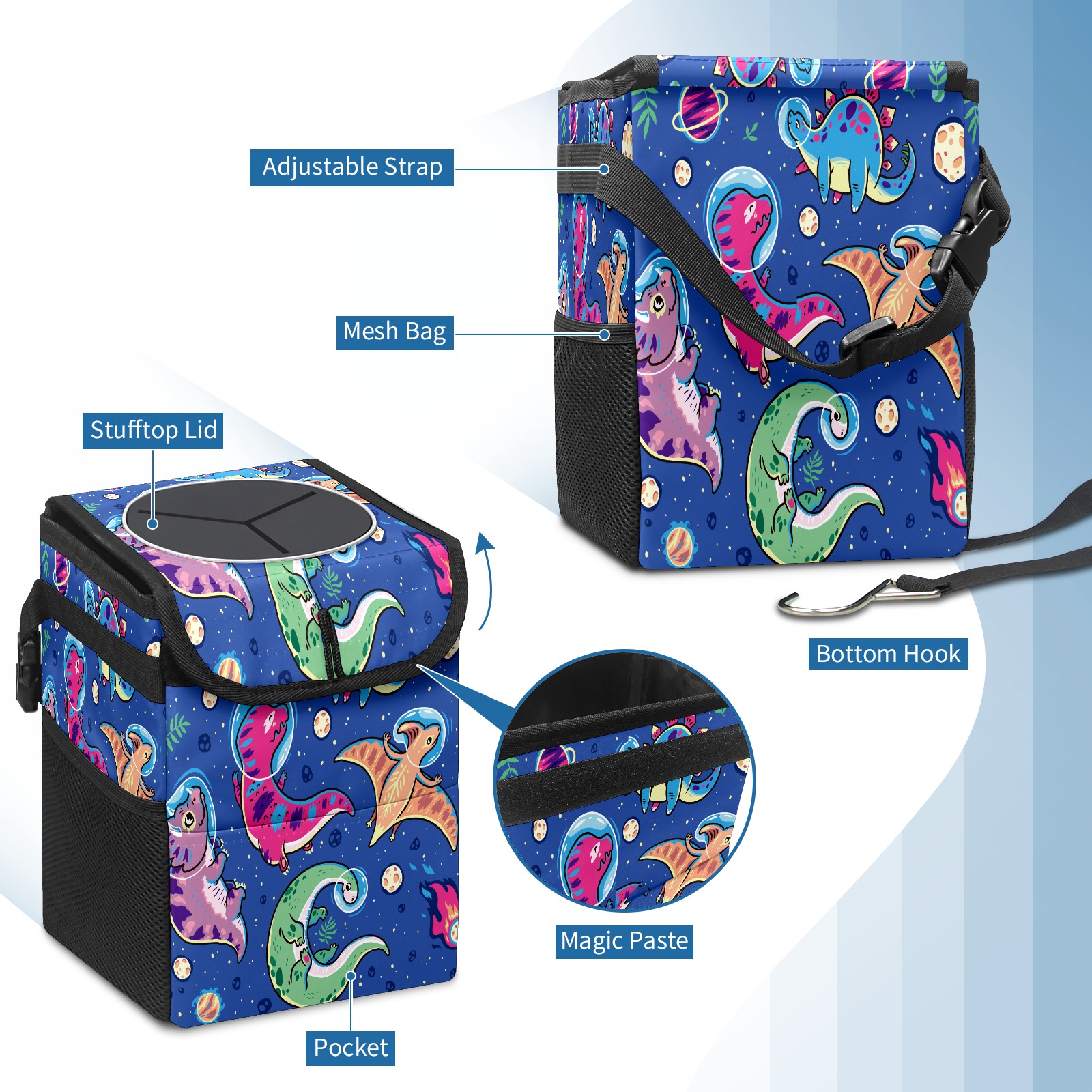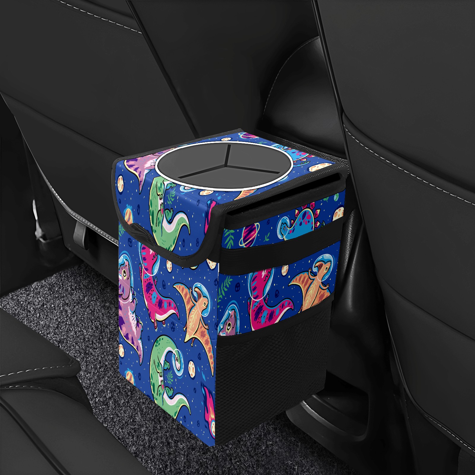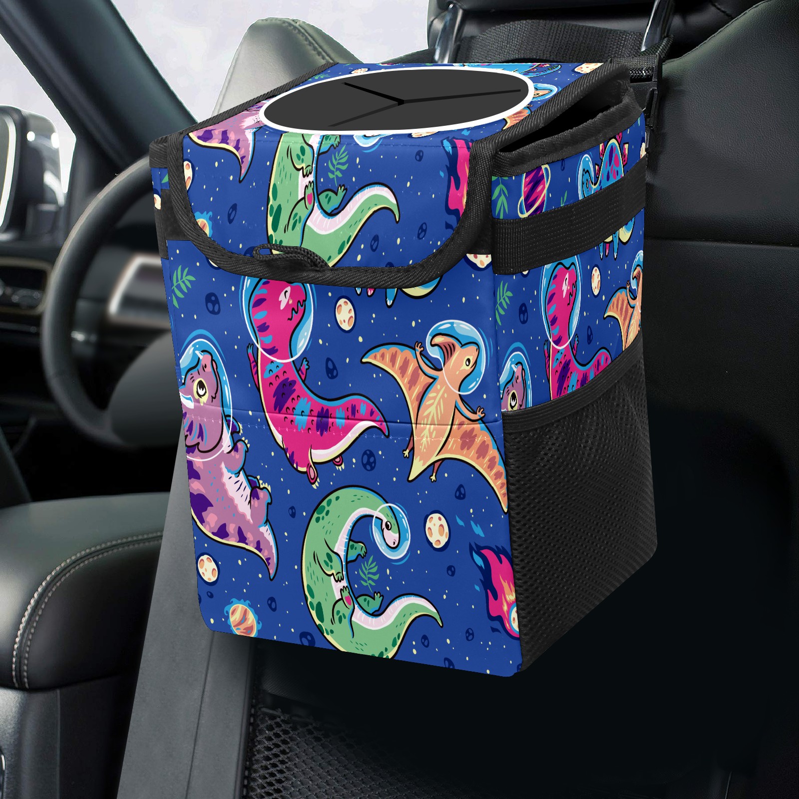 Car Trash Bin with Lid Auto Garbage Bag Hanging for Back Seat - Leakproof Trash Can for Cars SUVs Trucks Vehicle Car Accessories (Dinosaur Space)