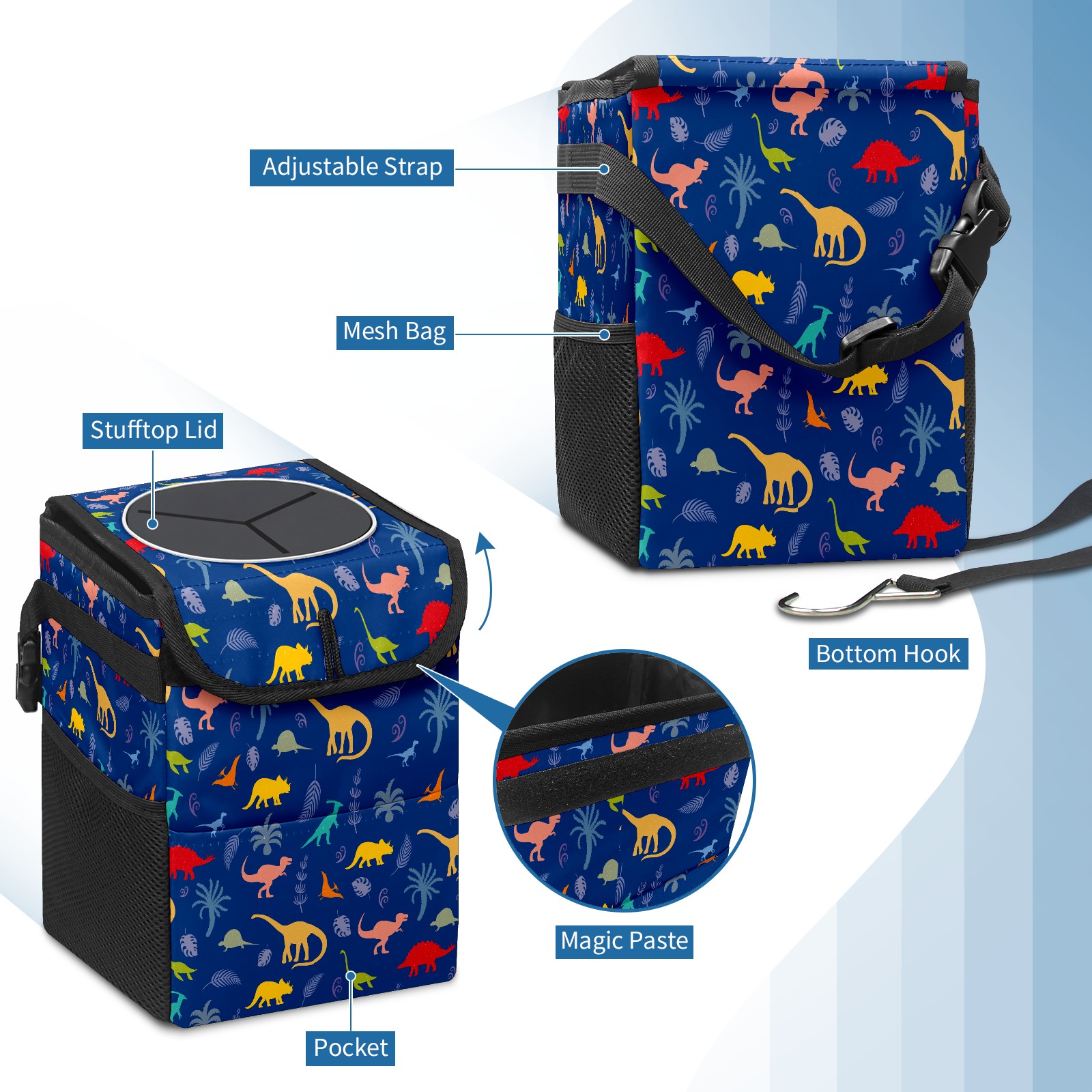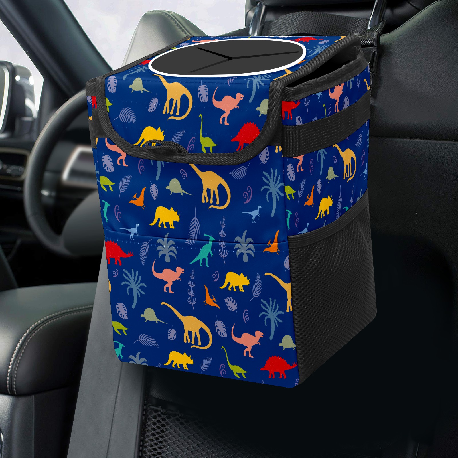 Car Trash Bin with Lid Auto Garbage Bag Hanging for Back Seat - Leakproof Trash Can for Cars SUVs Trucks Vehicle Car Accessories (Dinosaur Forest)