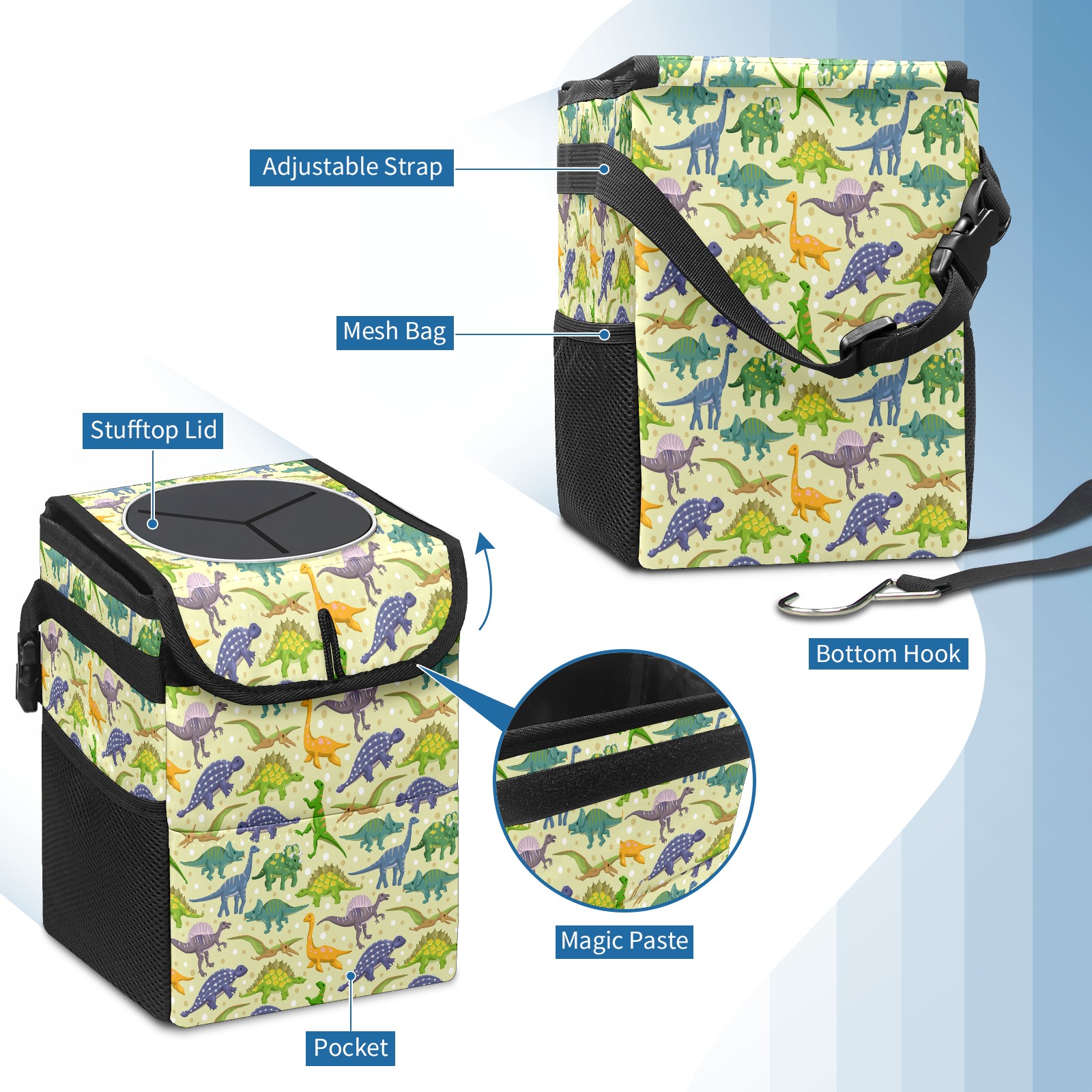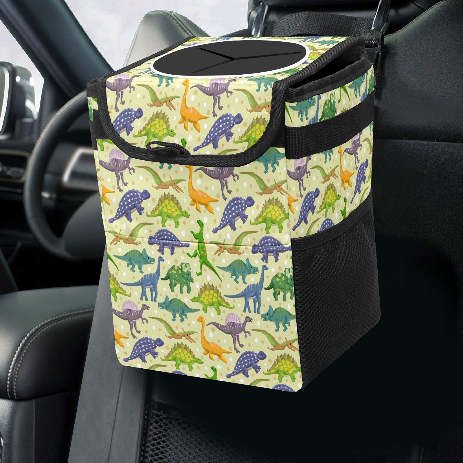 Car Trash Bin with Lid Auto Garbage Bag Hanging for Back Seat - Leakproof Trash Can for Cars SUVs Trucks Vehicle Car Accessories (Cute Dinosaur)