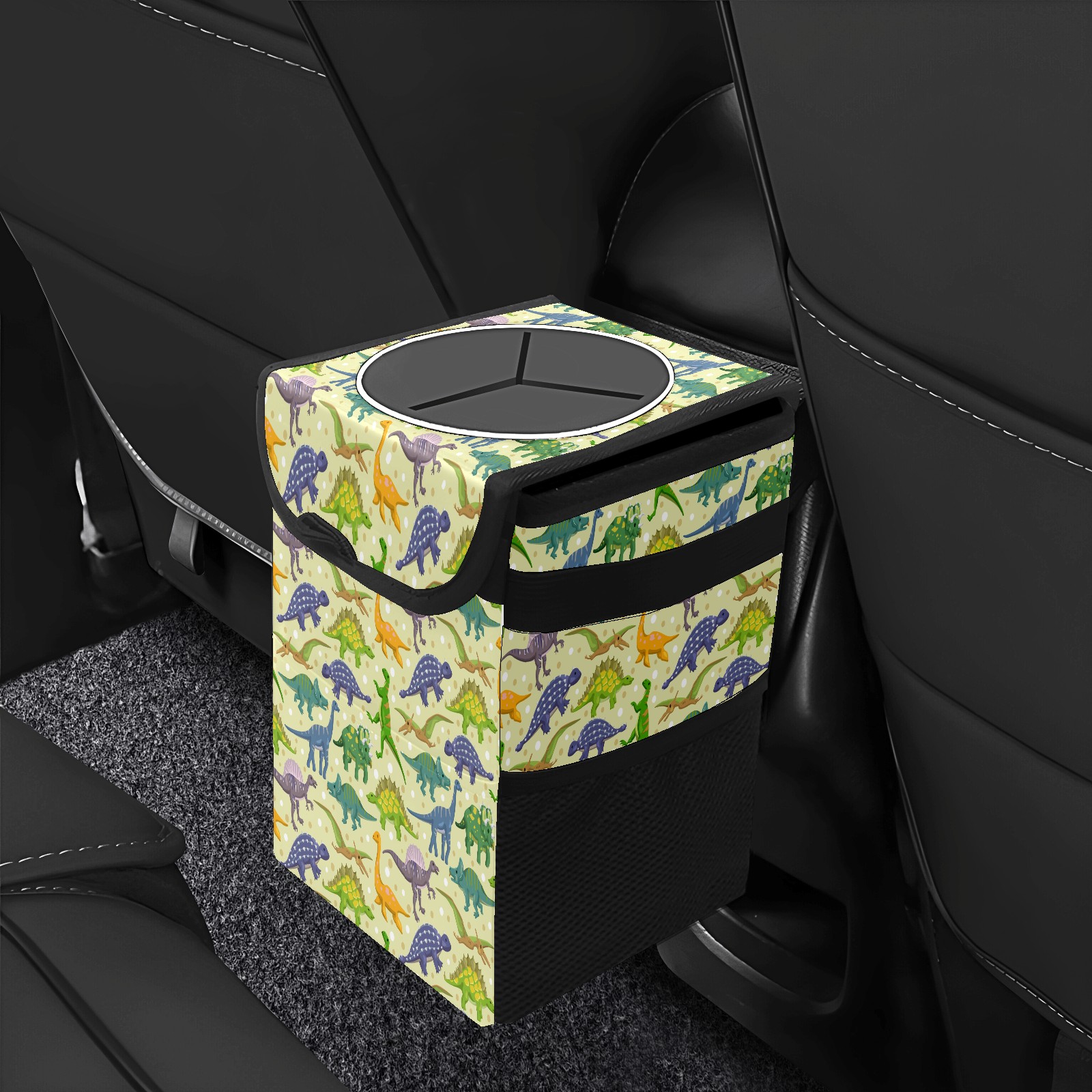 • FOLDABLE & SPACE-SAVING Compact 9.5"×6.7"×6.3" size fits perfectly in any vehicle space Instantly folds flat when not in use - stores effortlessly under seats or in door pockets MULTI-FUNCTION ORGANIZER Large main compartment holds bottles, wrappers and tissues Additional pockets for wet wipes, masks or small accessories WATERPROOF & LEAKPROOF Made with premium leak-proof polyester material Contains messy spills from drinks, snacks, and food Wipe-clean surface resists stains and eliminates odors Package Includes 1× Car Trash Can