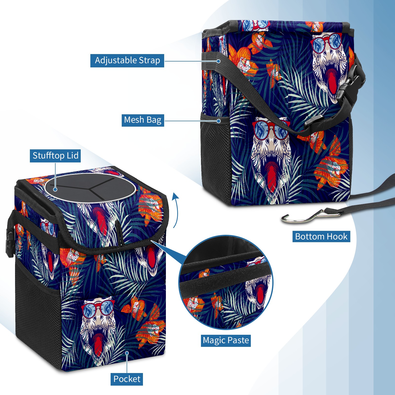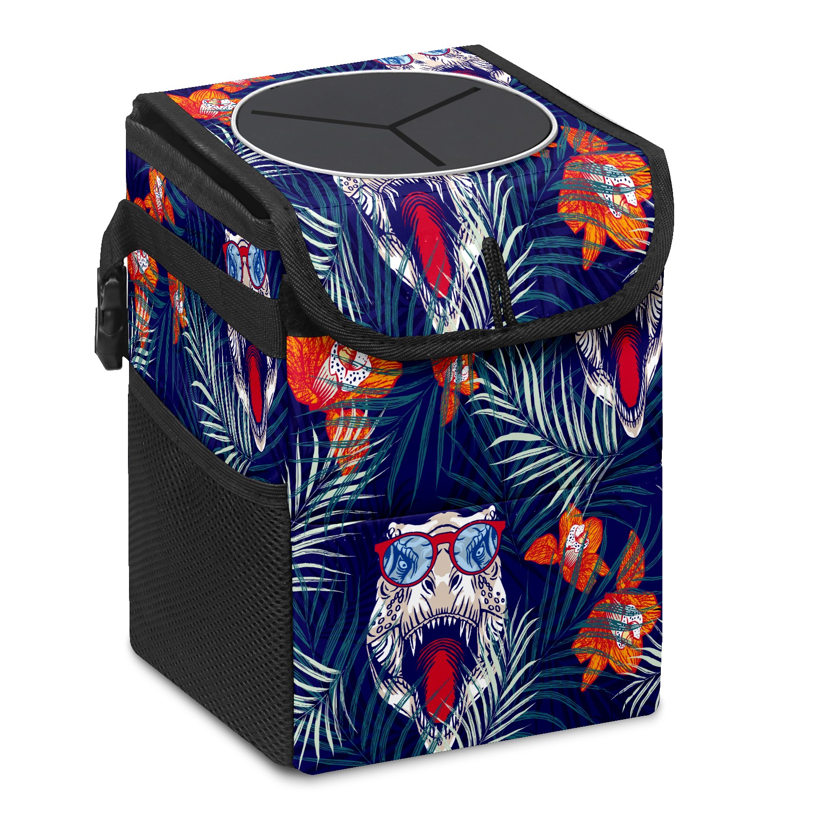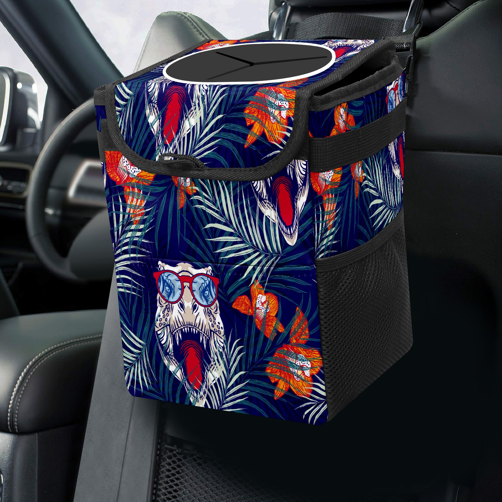 Car Trash Bin with Lid Auto Garbage Bag Hanging for Back Seat - Leakproof Trash Can for Cars SUVs Trucks Vehicle Car Accessories (White Dinosaur Head Flower)