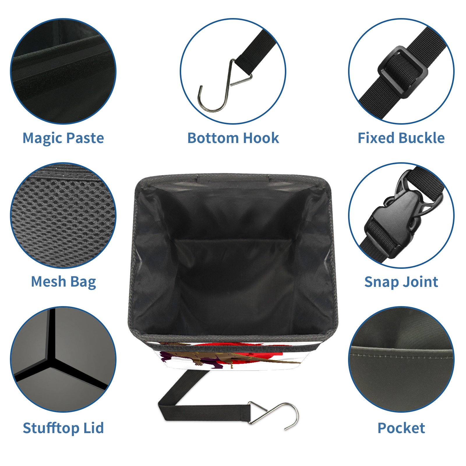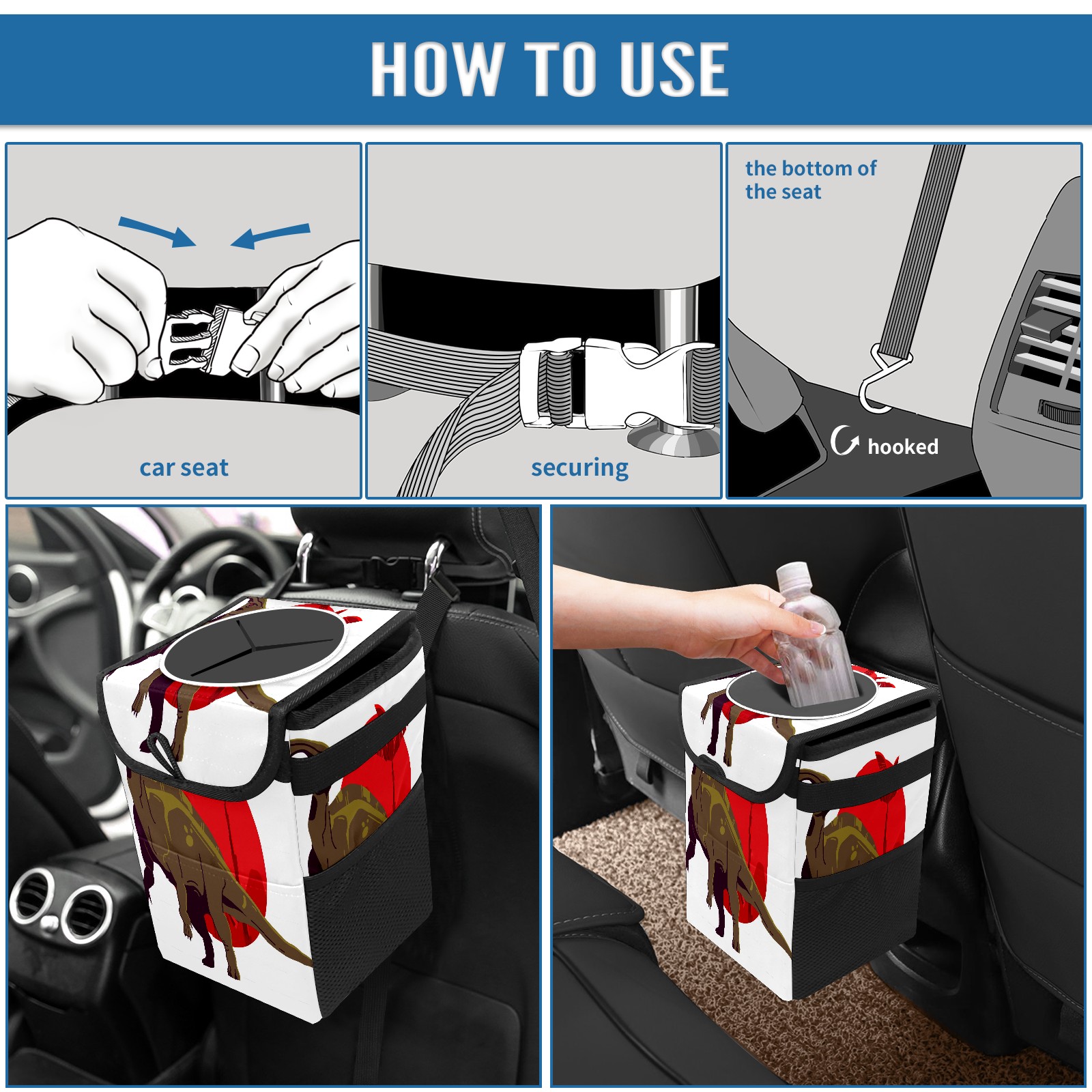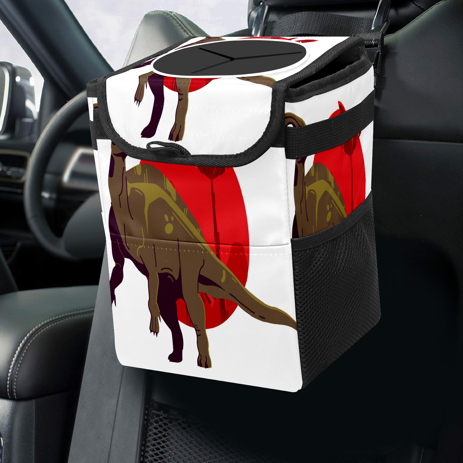 Car Trash Bin with Lid Auto Garbage Bag Hanging for Back Seat - Leakproof Trash Can for Cars SUVs Trucks Vehicle Car Accessories (Dinosaur Parasaurolophus)