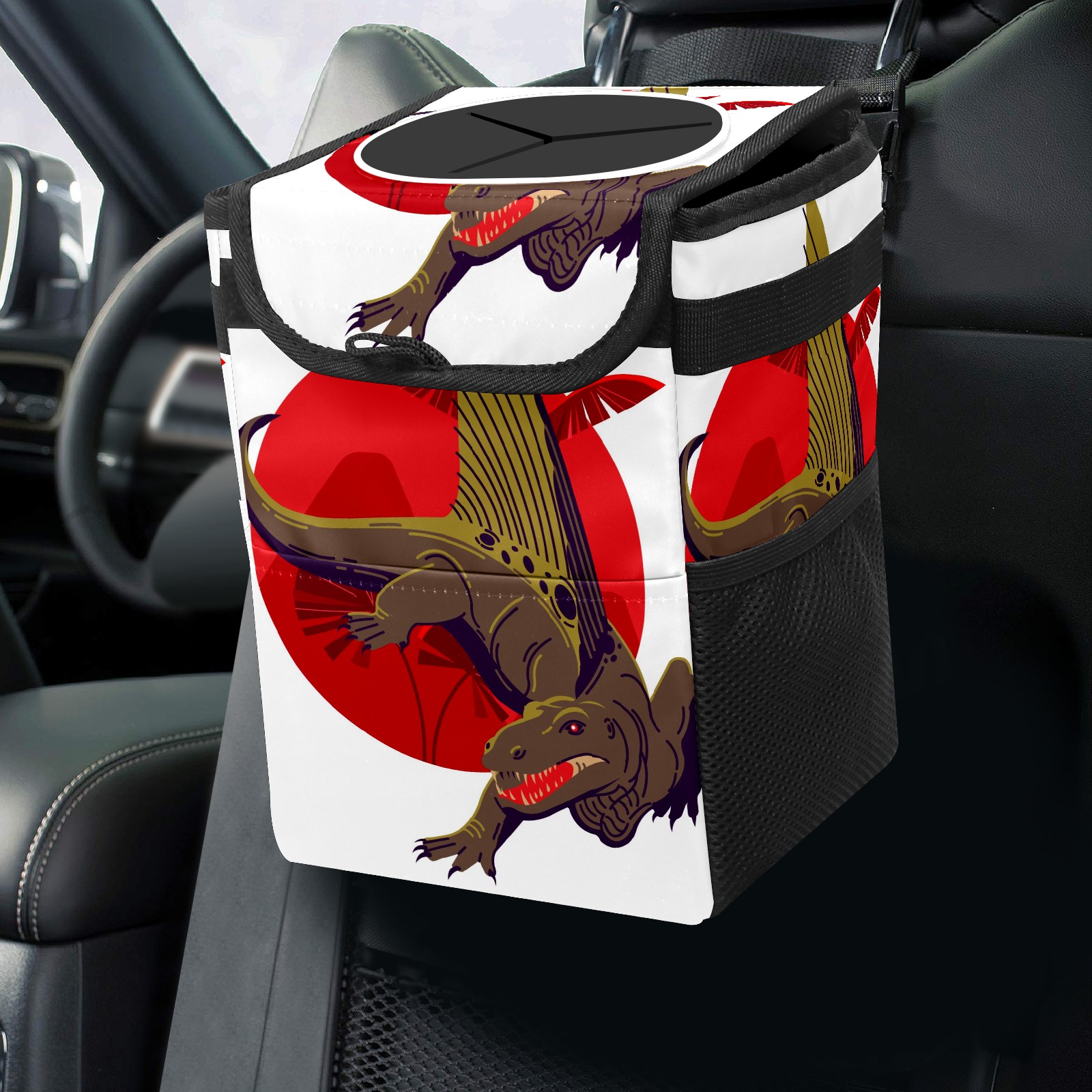 Car Trash Bin with Lid Auto Garbage Bag Hanging for Back Seat - Leakproof Trash Can for Cars SUVs Trucks Vehicle Car Accessories (Cartoon Animal Dinosaur)