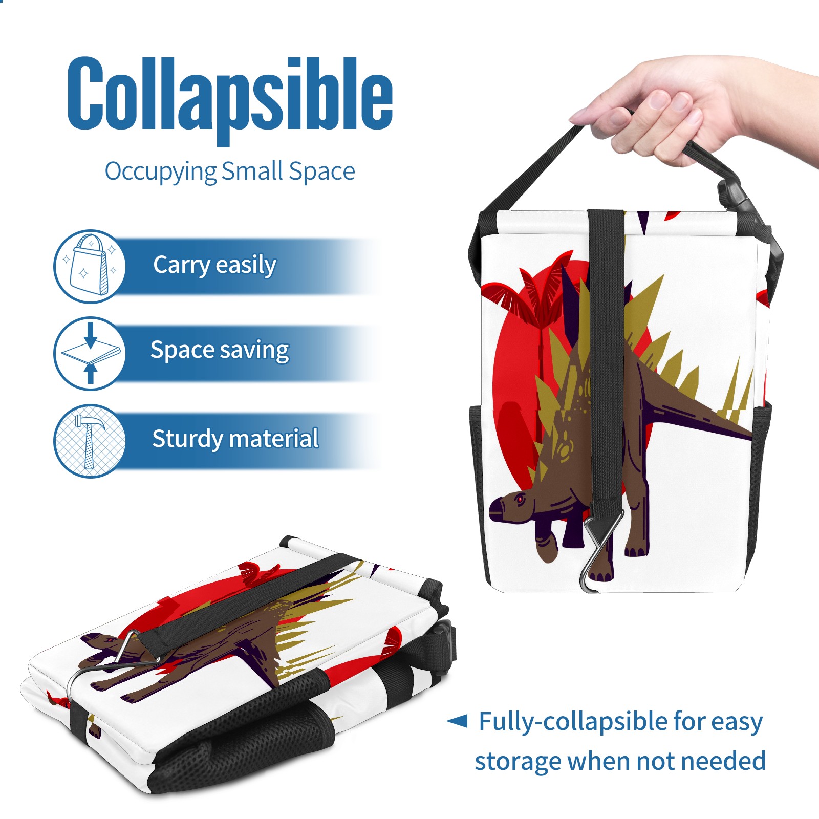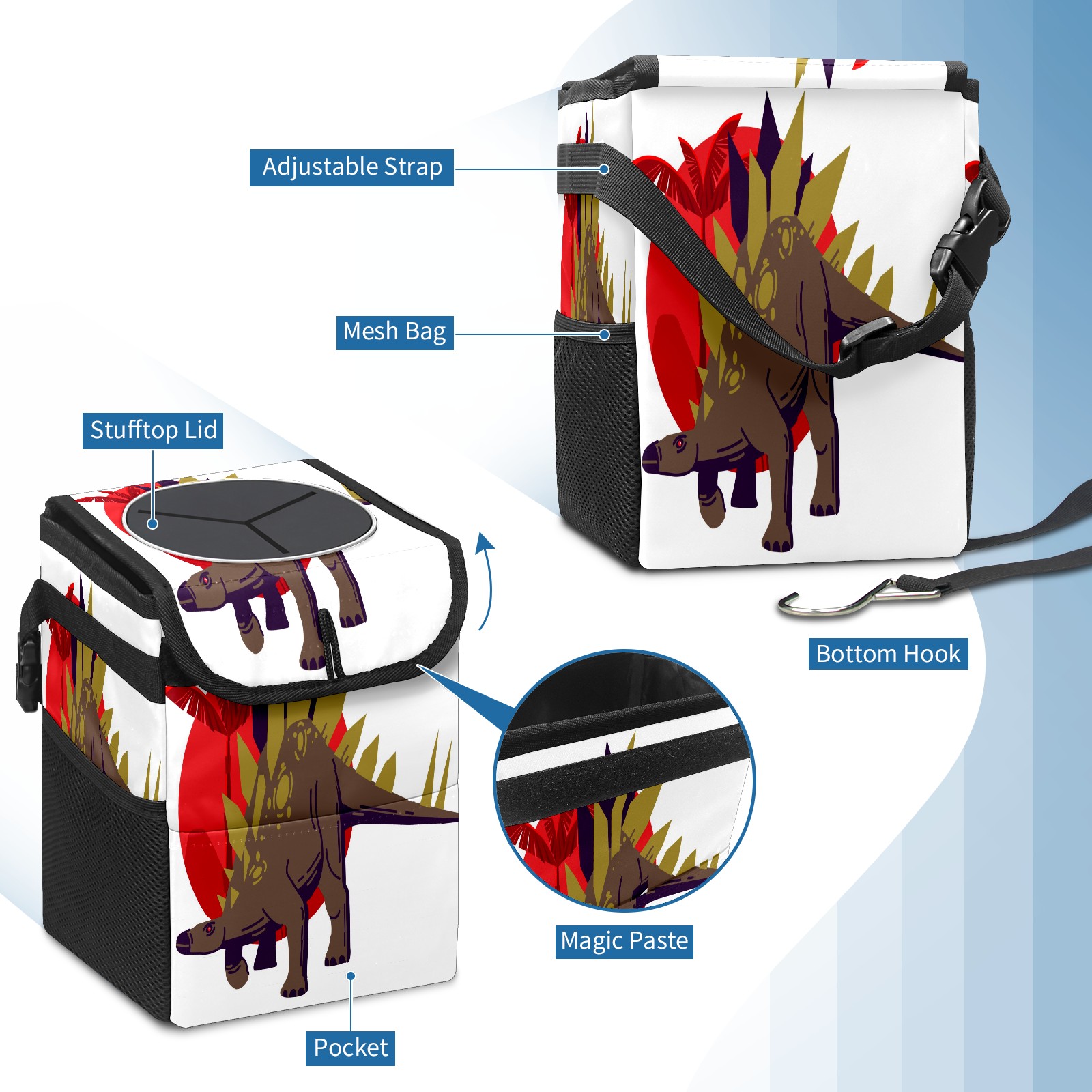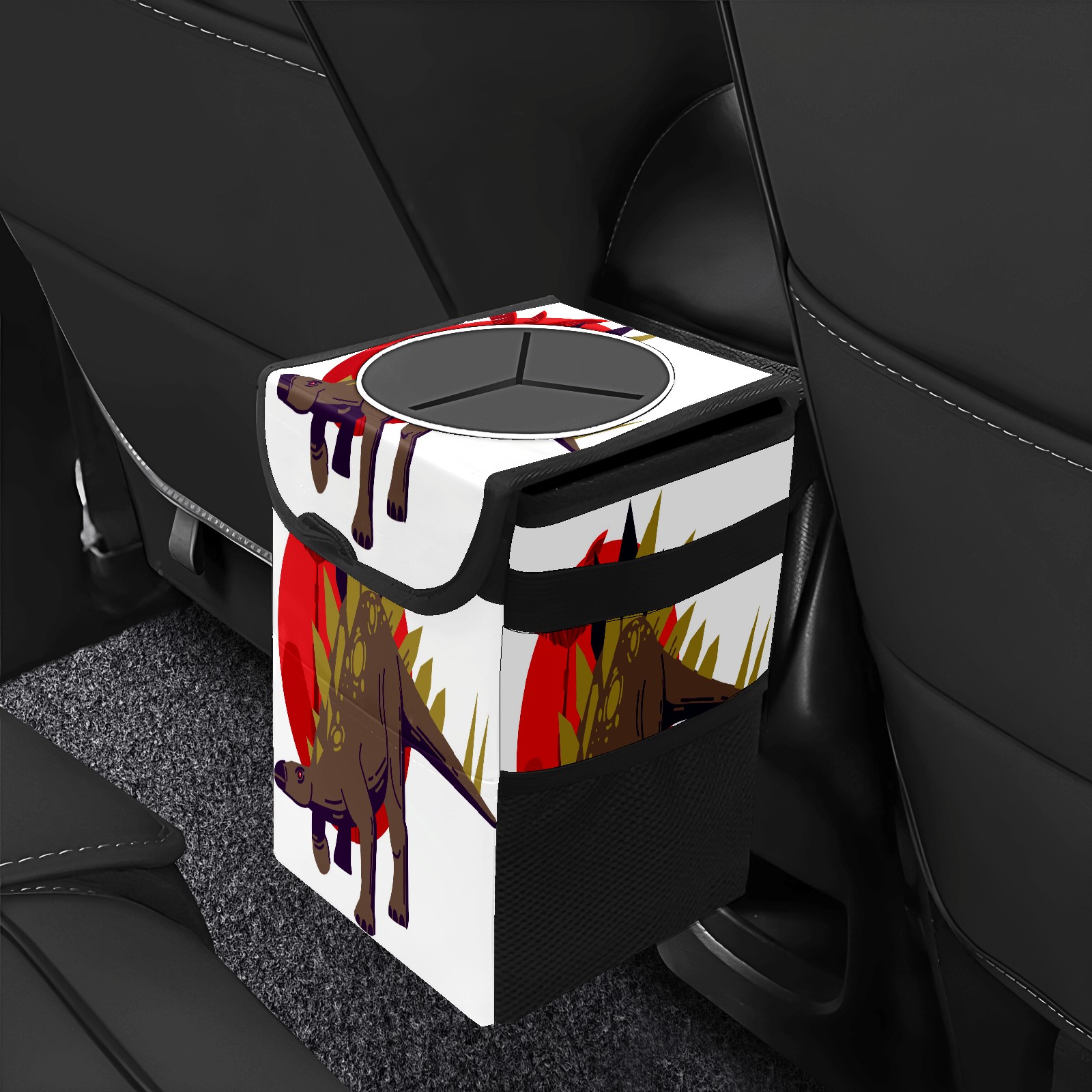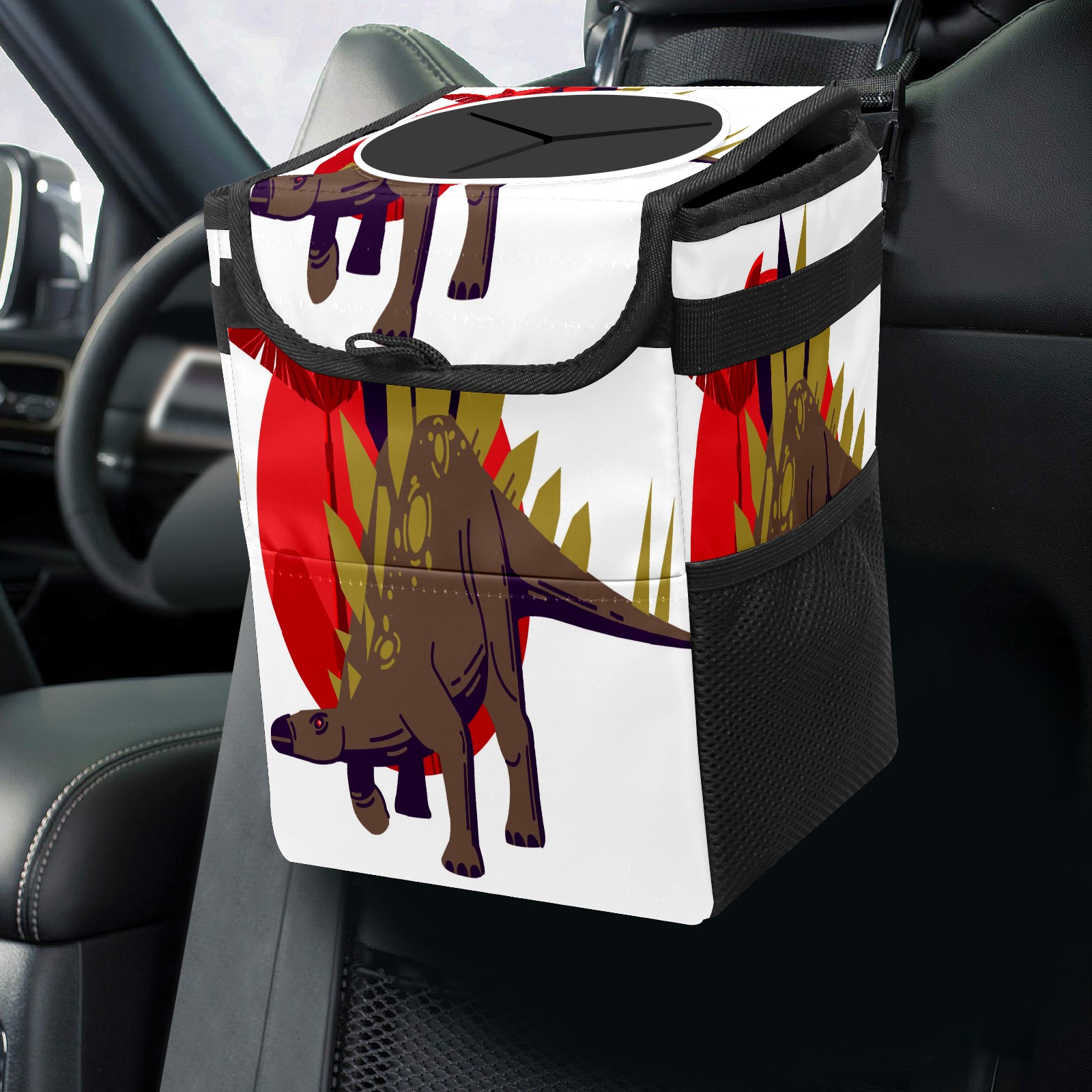 Car Trash Bin with Lid Auto Garbage Bag Hanging for Back Seat - Leakproof Trash Can for Cars SUVs Trucks Vehicle Car Accessories (Animal Dinosaur Stegosaurus)