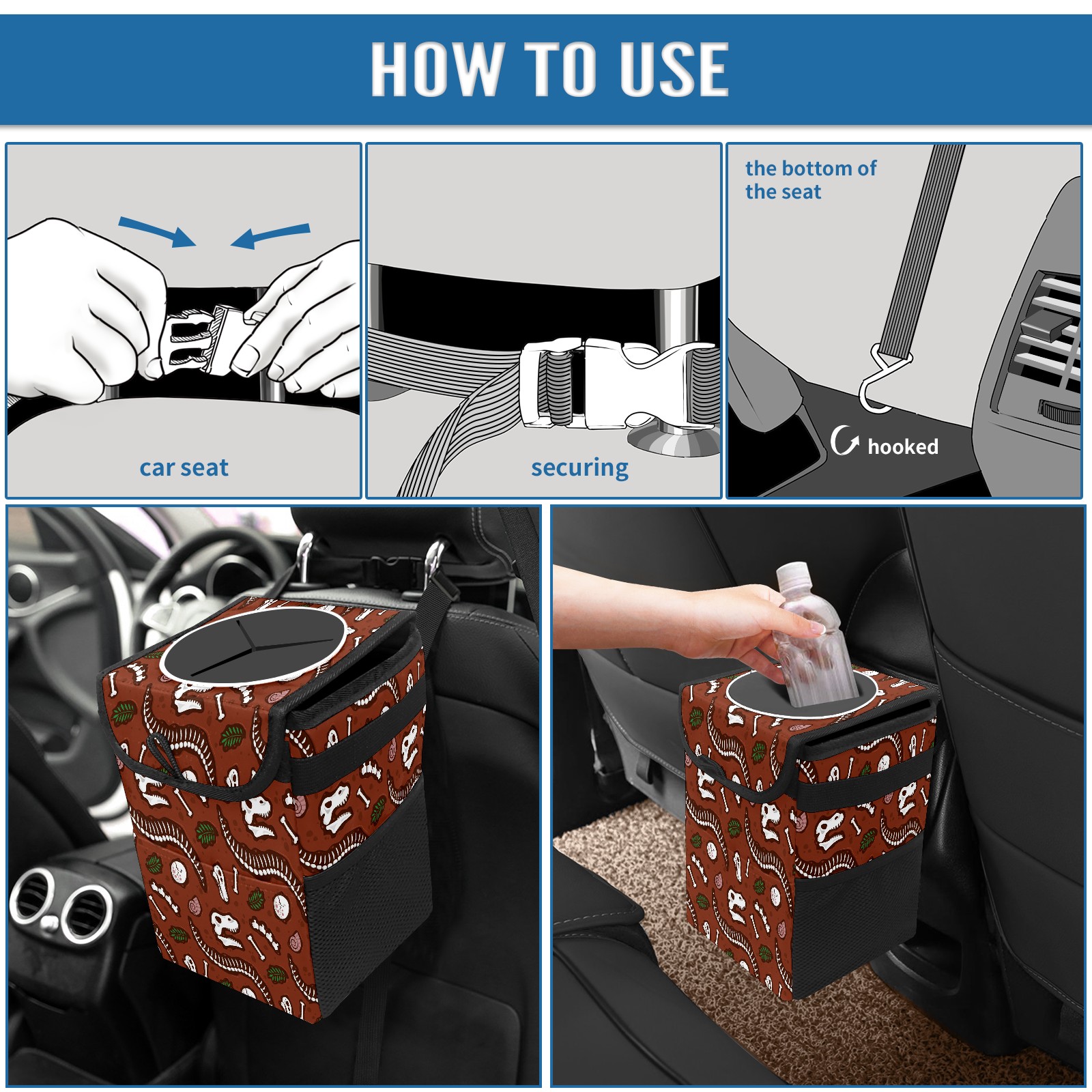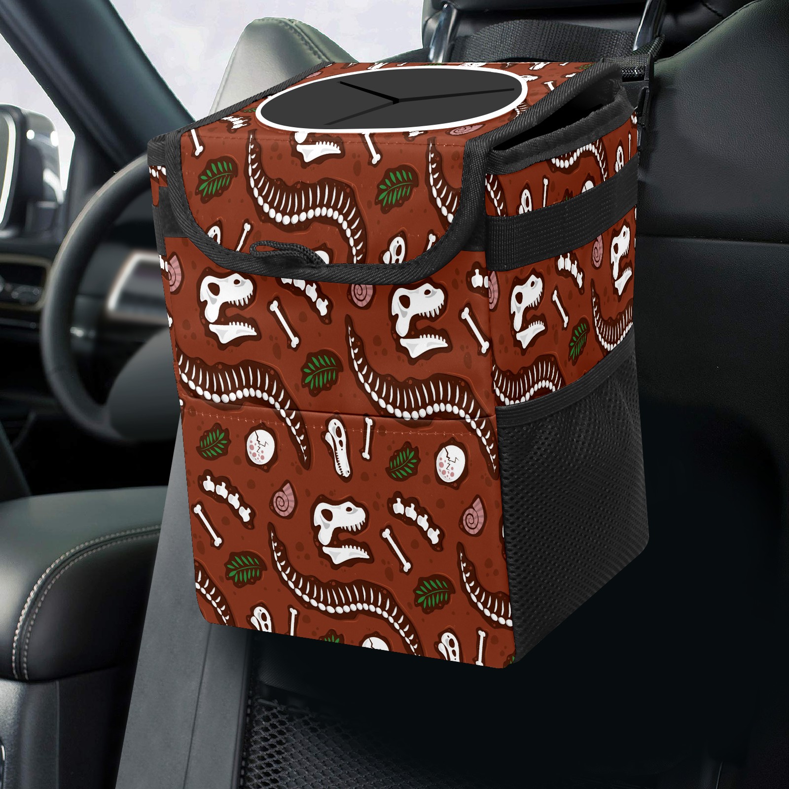 Car Trash Bin with Lid Auto Garbage Bag Hanging for Back Seat - Leakproof Trash Can for Cars SUVs Trucks Vehicle Car Accessories (Dinosaur Corpse Bone)