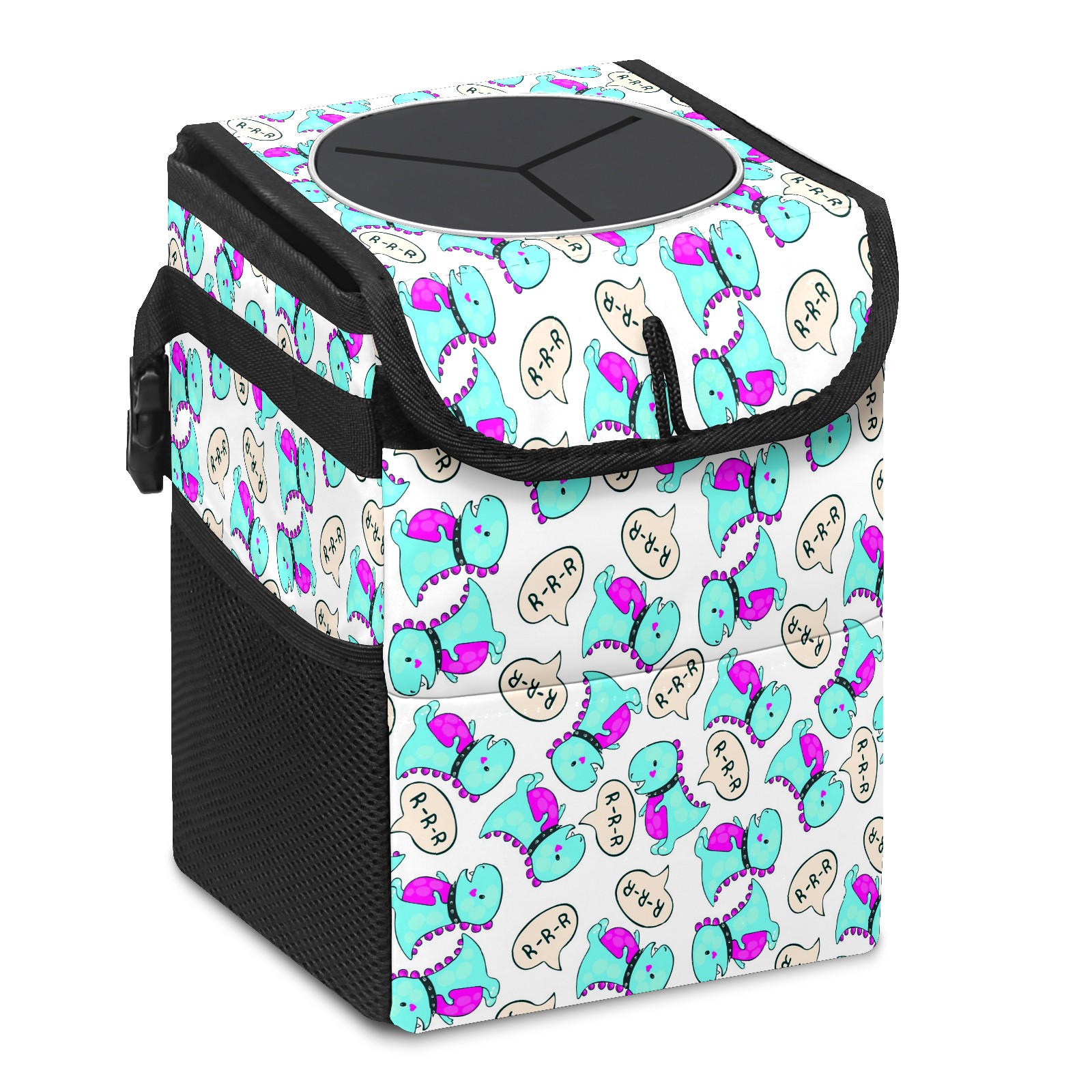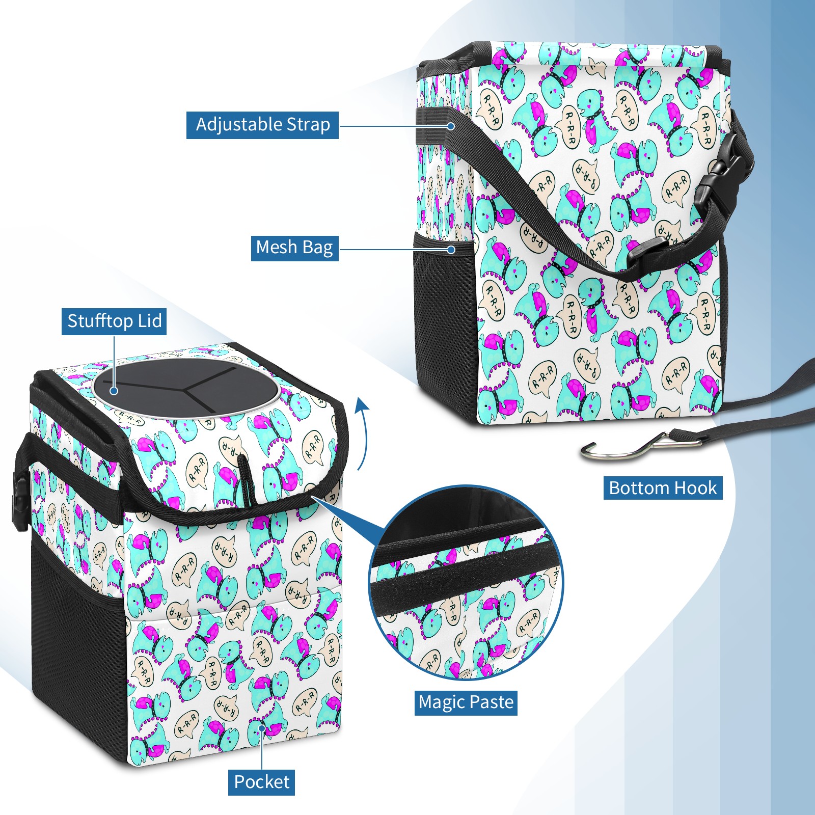 Car Trash Bin with Lid Auto Garbage Bag Hanging for Back Seat - Leakproof Trash Can for Cars SUVs Trucks Vehicle Car Accessories (Cartoon Blue Dinosaur)