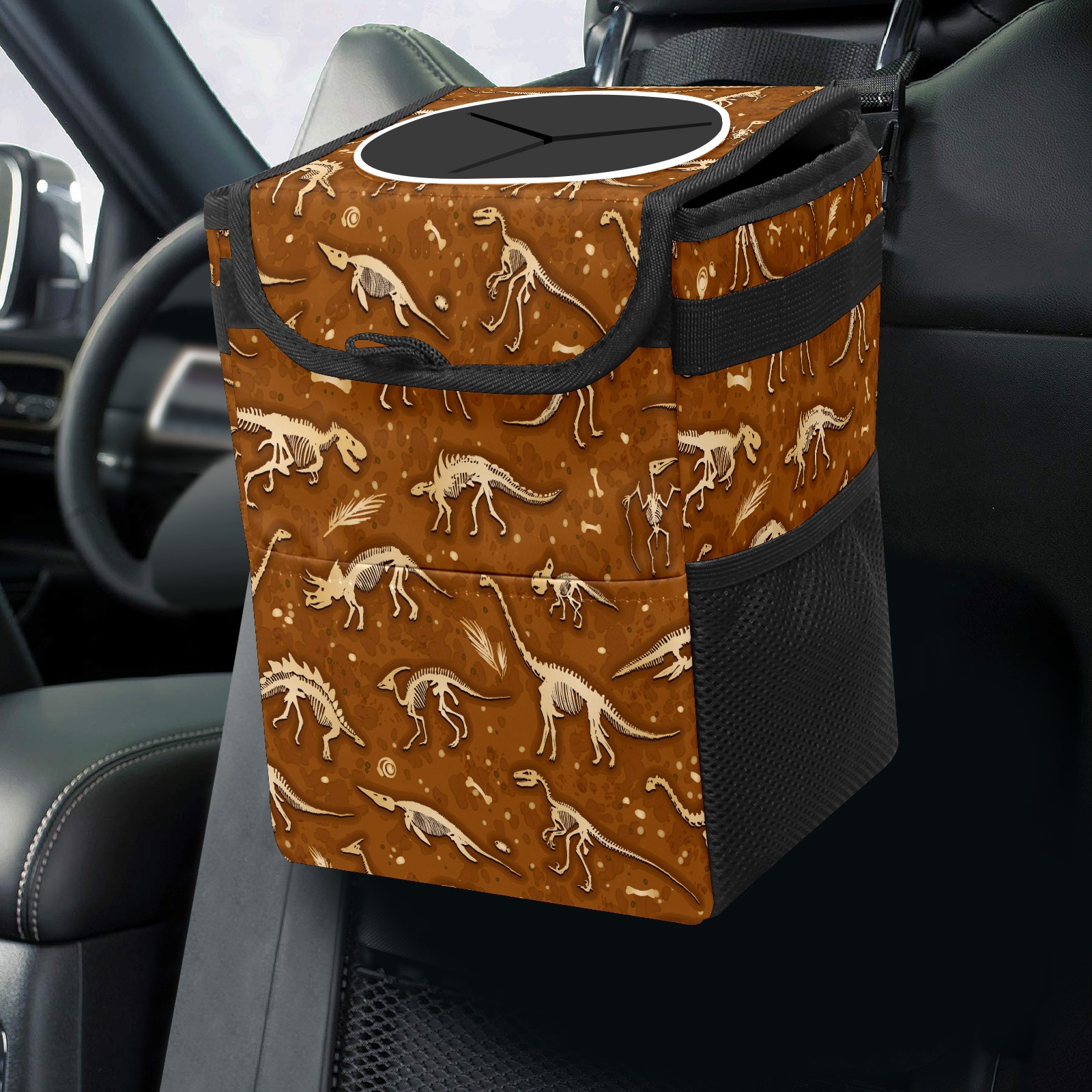 Car Trash Bin with Lid Auto Garbage Bag Hanging for Back Seat - Leakproof Trash Can for Cars SUVs Trucks Vehicle Car Accessories (Skeletons Dinosaurs Fossils Pattern)