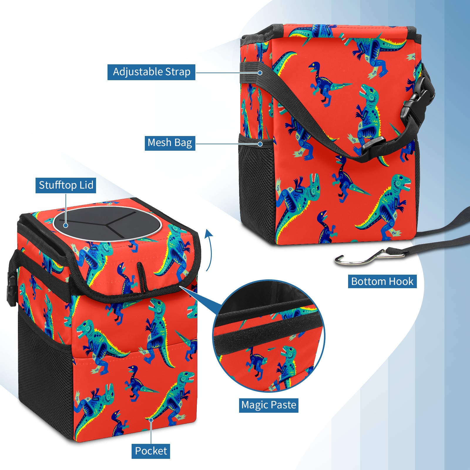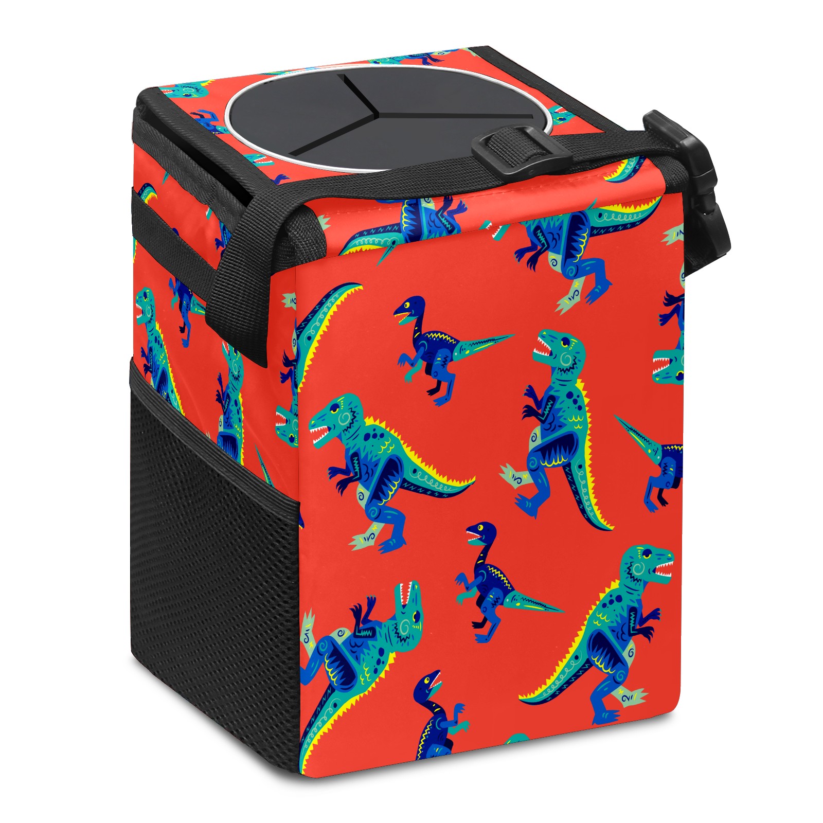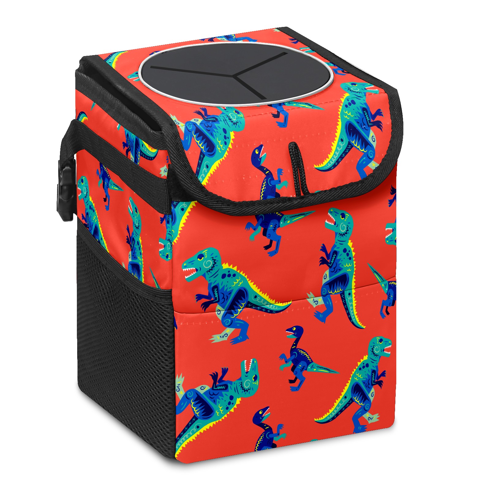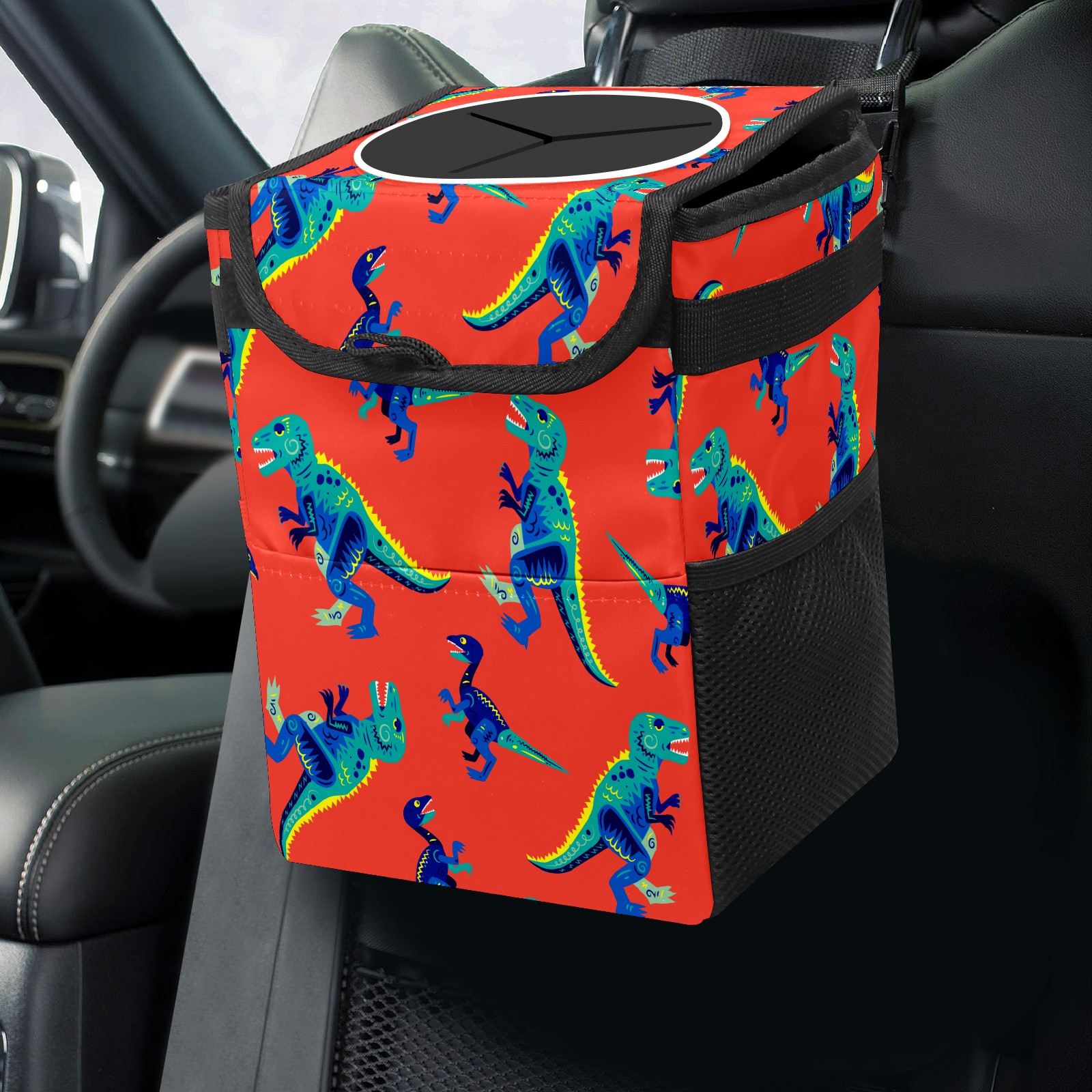 Car Trash Bin with Lid Auto Garbage Bag Hanging for Back Seat - Leakproof Trash Can for Cars SUVs Trucks Vehicle Car Accessories (Funny Cartoon Dinosaur Pattern)