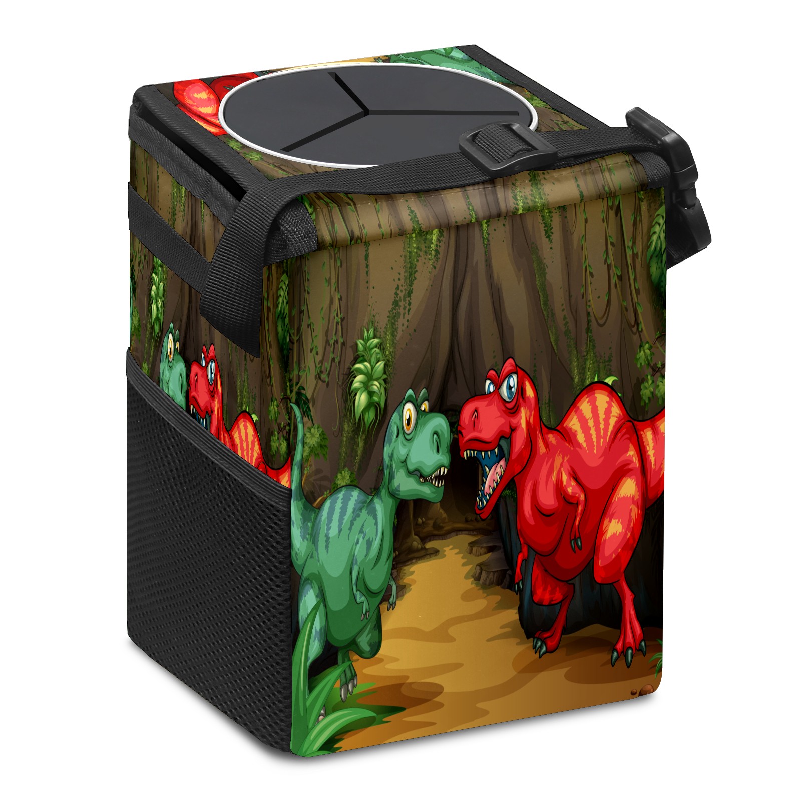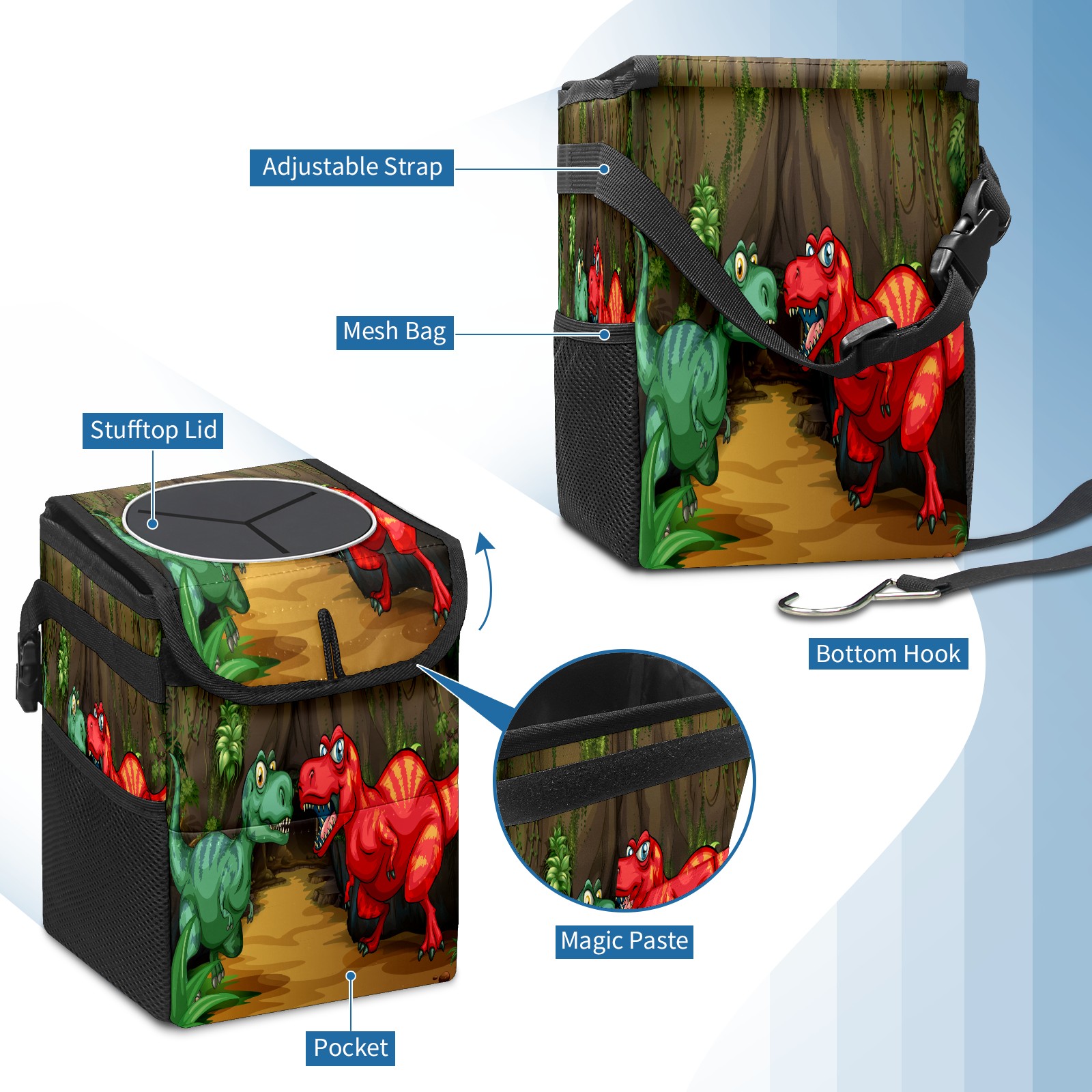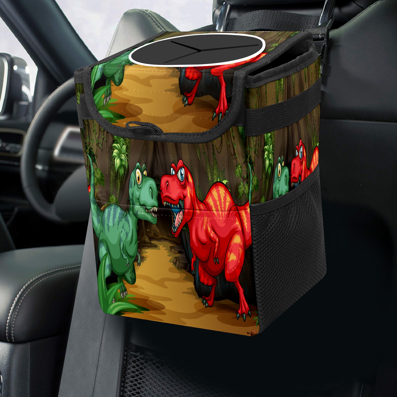 Car Trash Bin with Lid Auto Garbage Bag Hanging for Back Seat - Leakproof Trash Can for Cars SUVs Trucks Vehicle Car Accessories (Funny Cartoon Dinosaur Red Green)