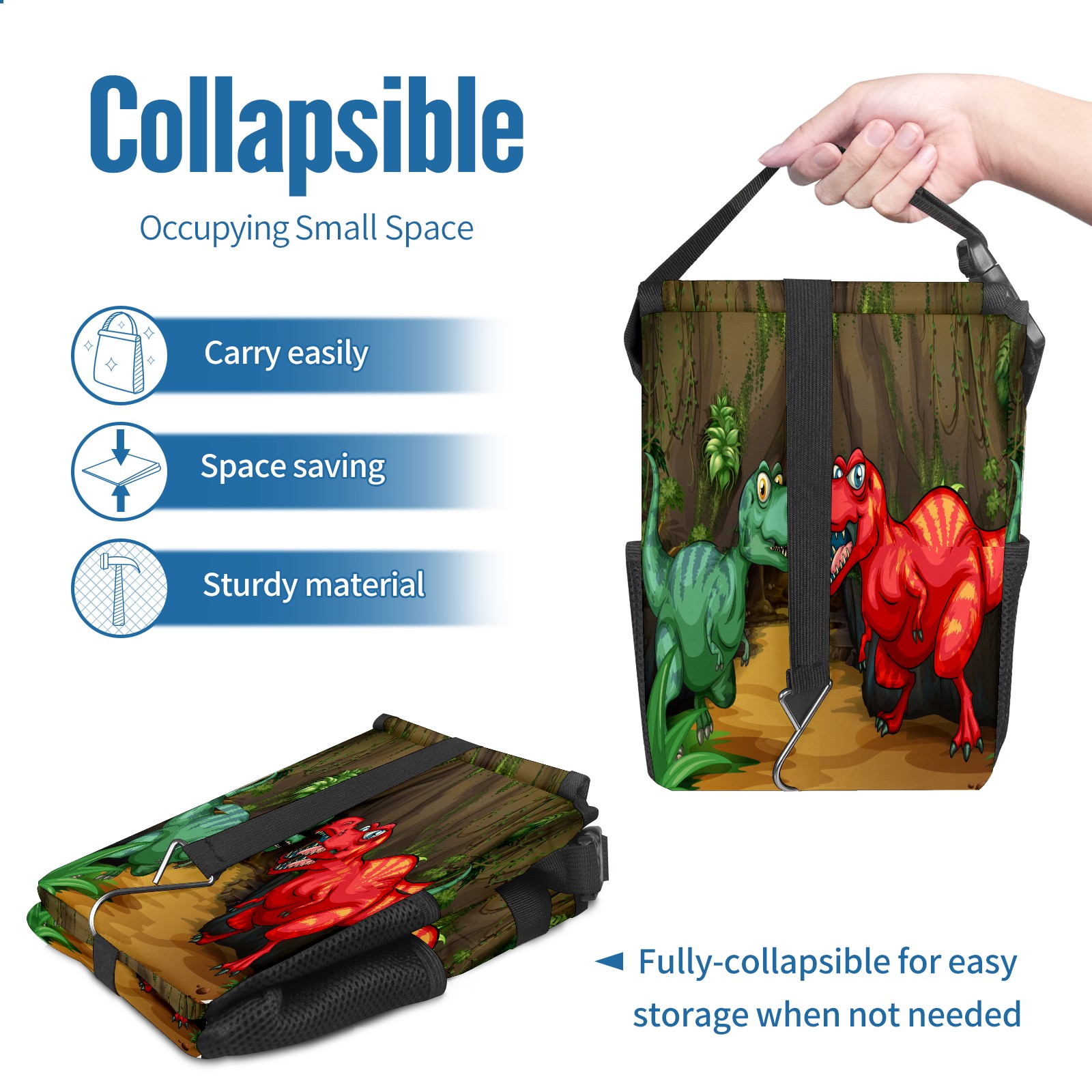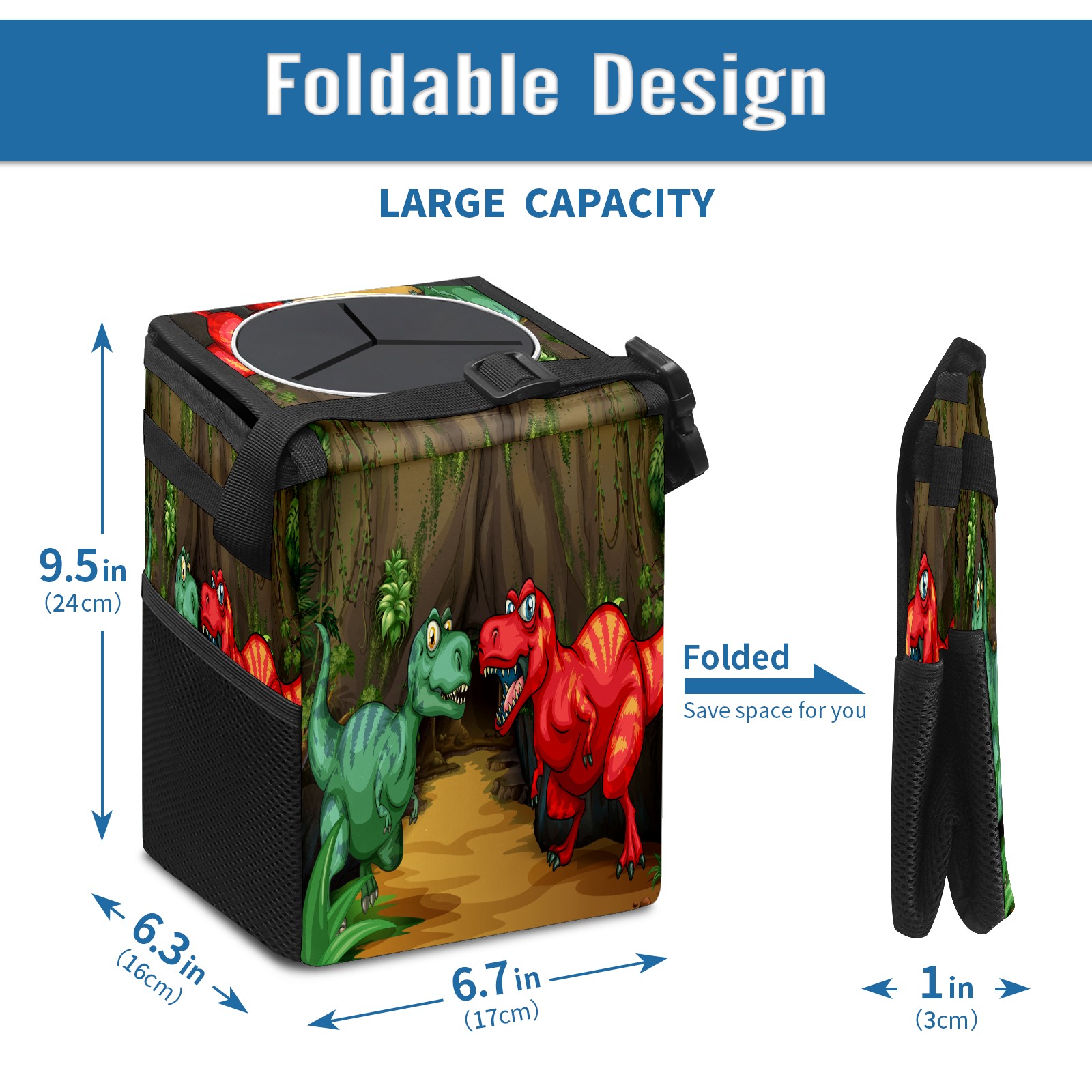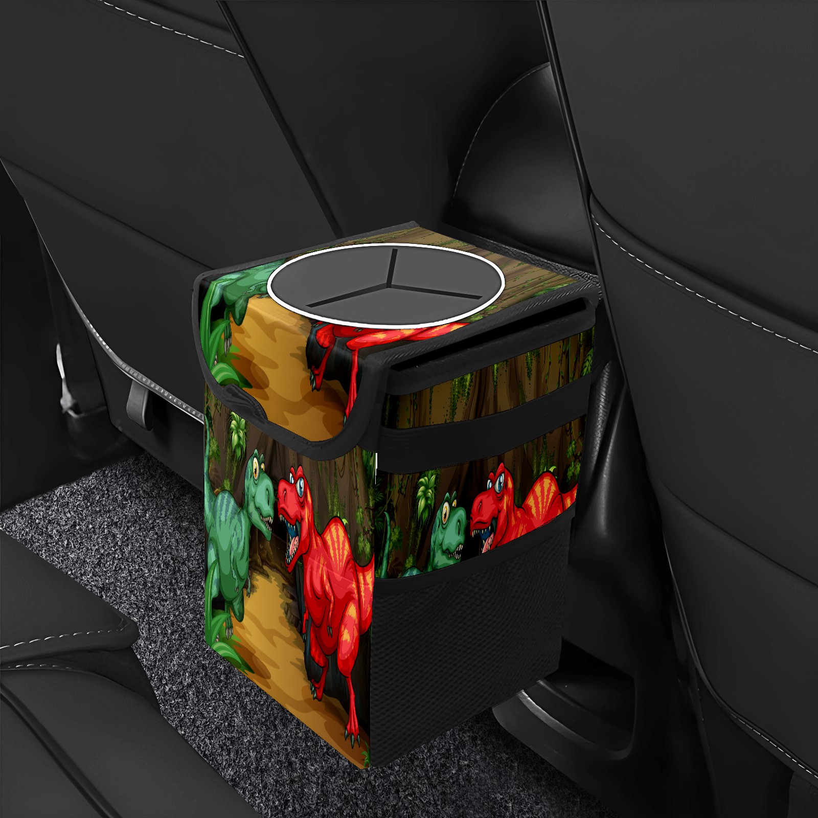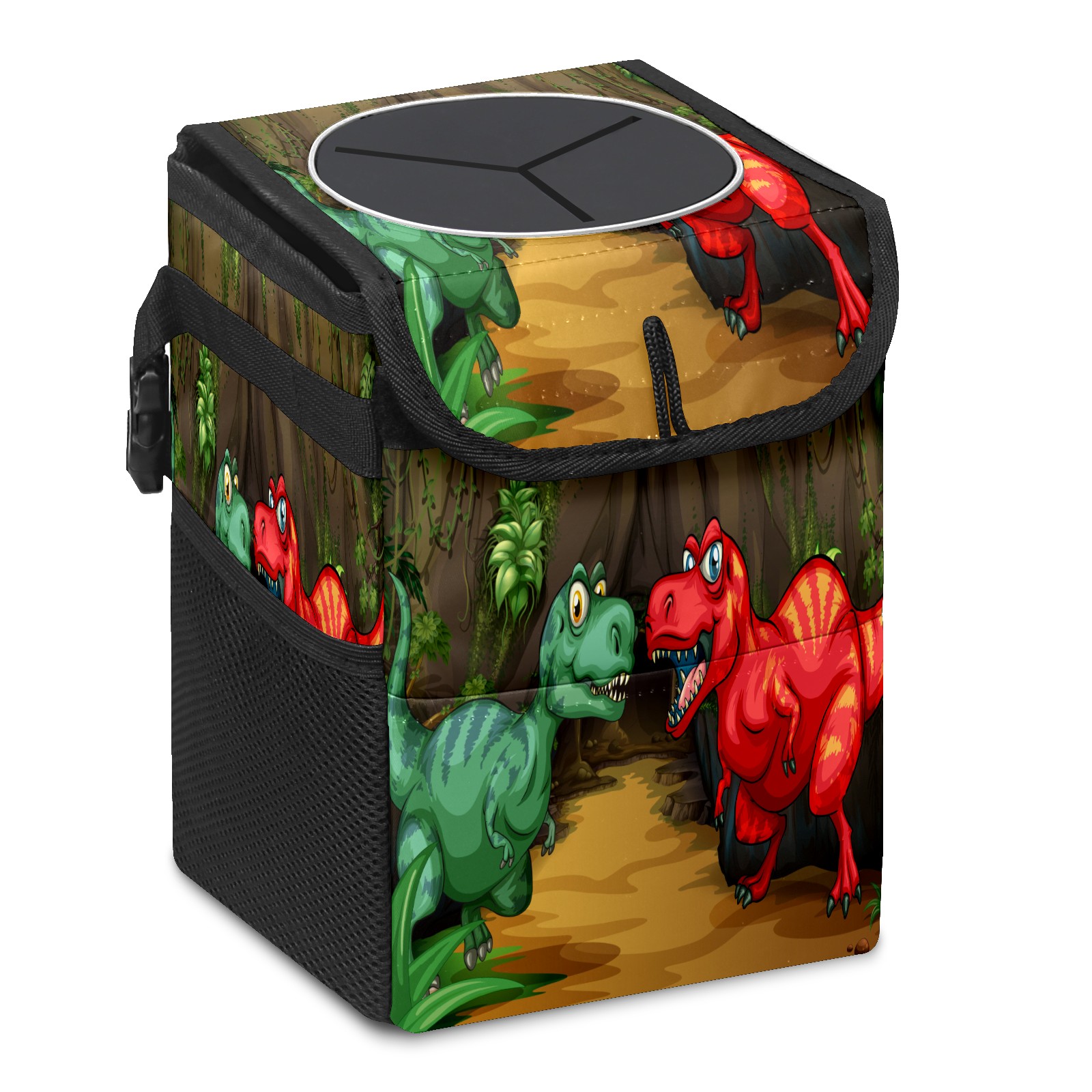 Car Trash Bin with Lid Auto Garbage Bag Hanging for Back Seat - Leakproof Trash Can for Cars SUVs Trucks Vehicle Car Accessories (Funny Cartoon Dinosaur Red Green)