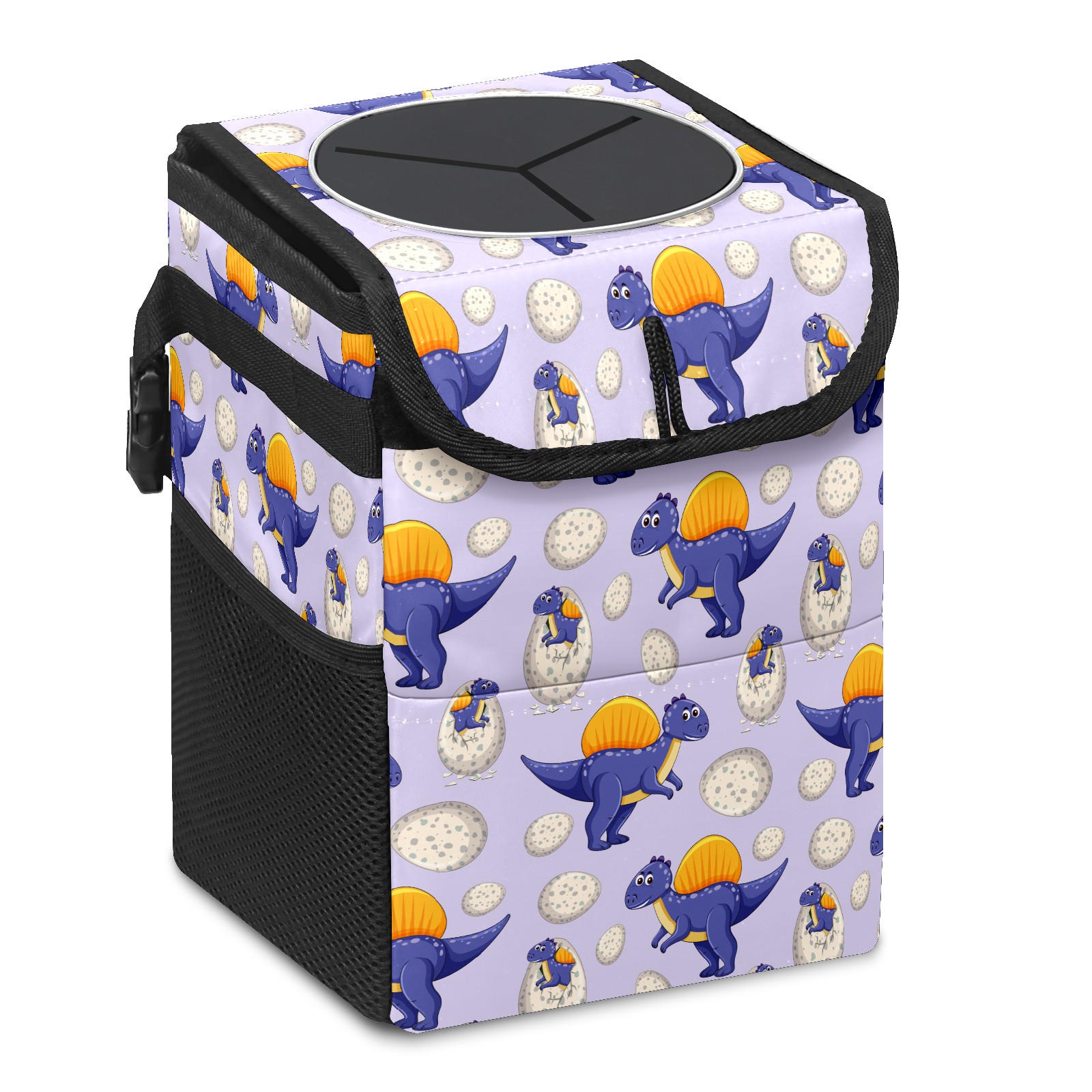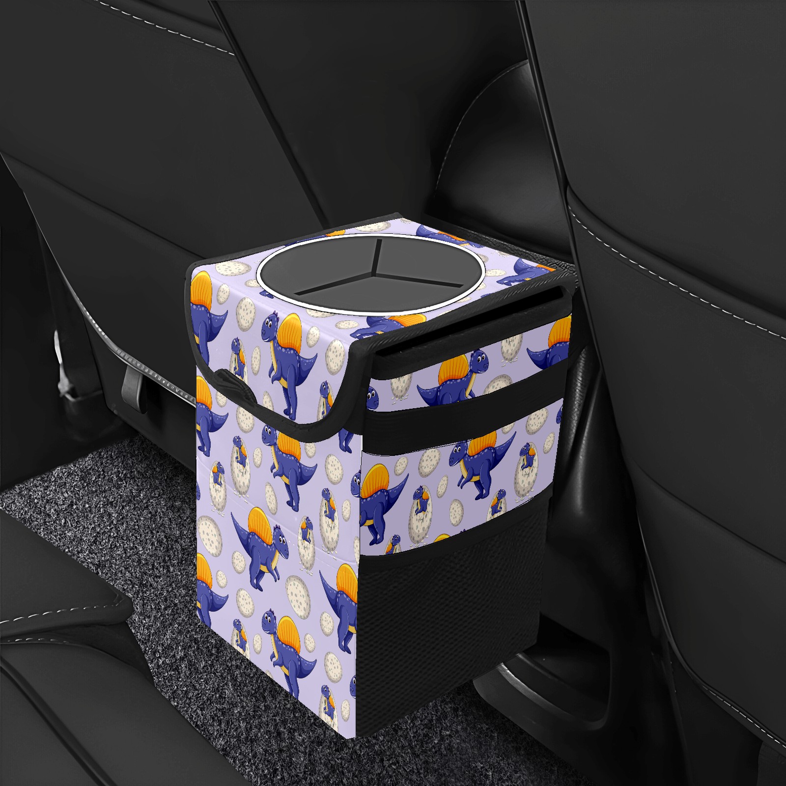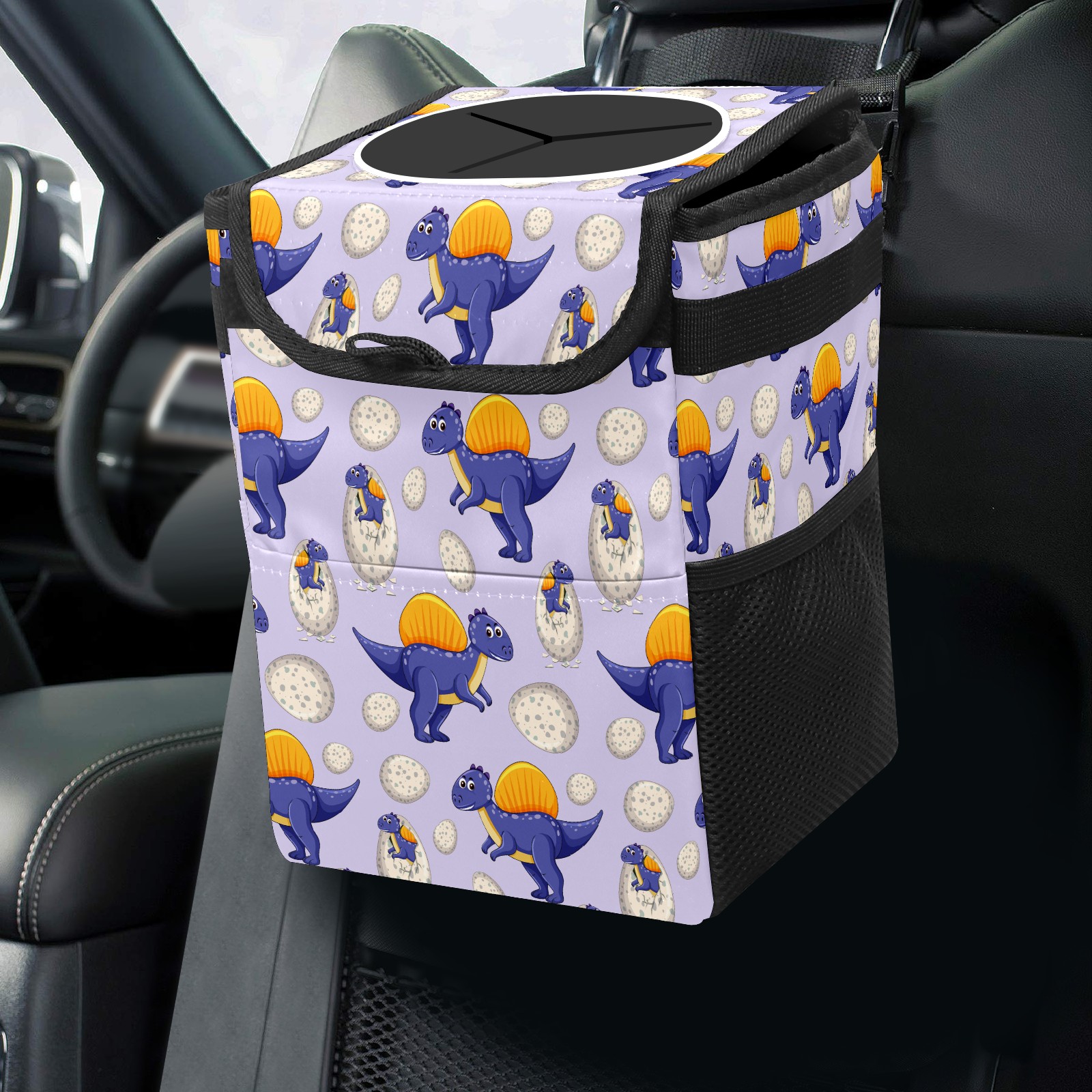 Car Trash Bin with Lid Auto Garbage Bag Hanging for Back Seat - Leakproof Trash Can for Cars SUVs Trucks Vehicle Car Accessories (Cute Cartoon Dinosaur Fossil Pattern)