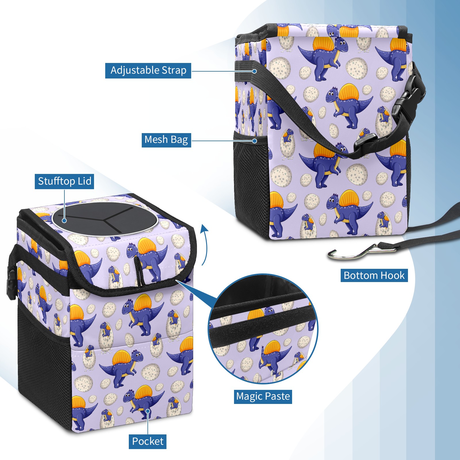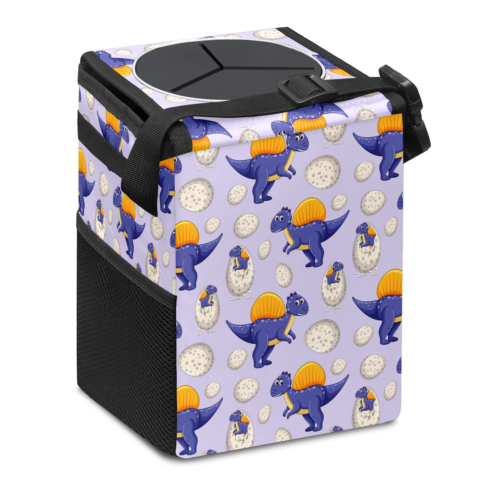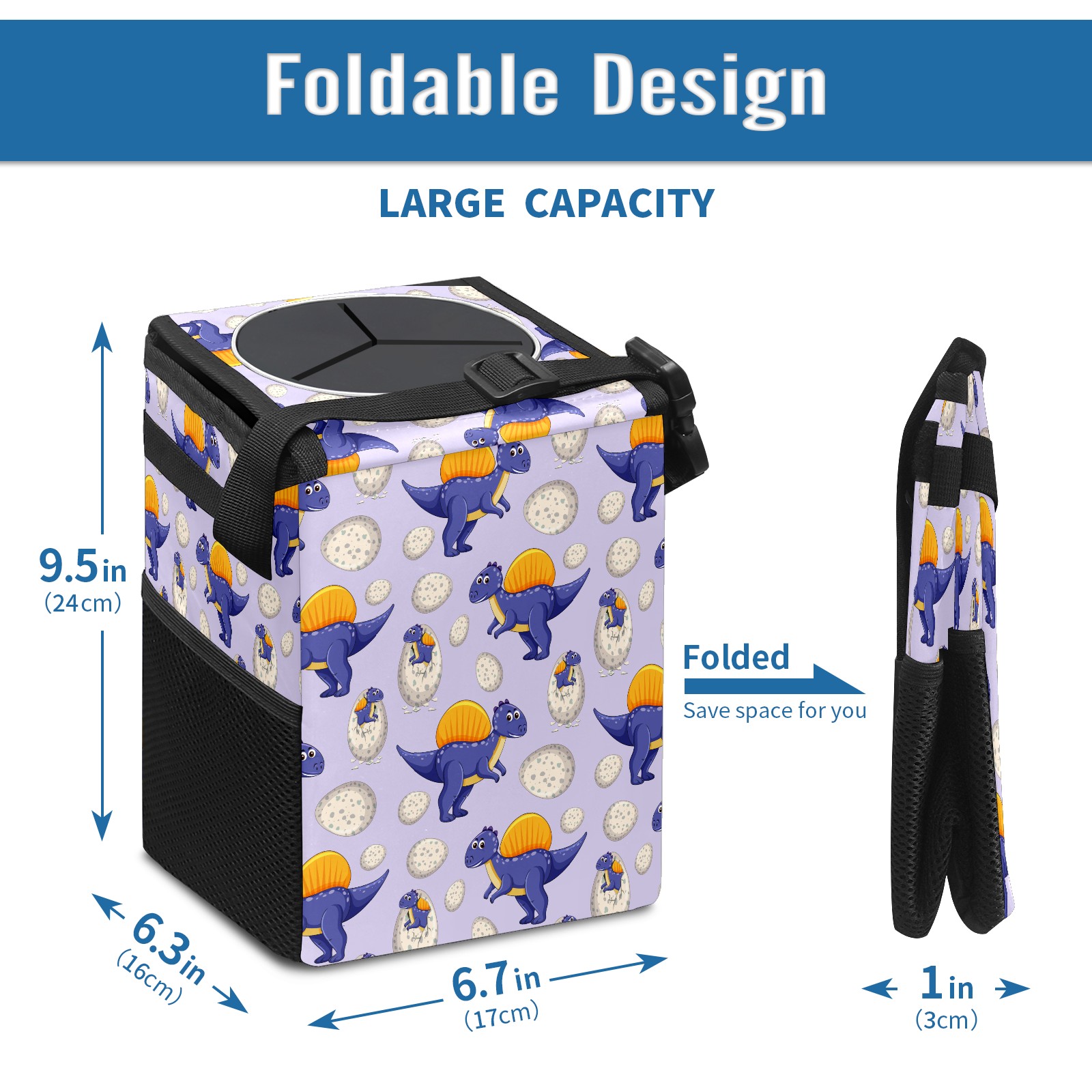 Car Trash Bin with Lid Auto Garbage Bag Hanging for Back Seat - Leakproof Trash Can for Cars SUVs Trucks Vehicle Car Accessories (Cute Cartoon Dinosaur Fossil Pattern)