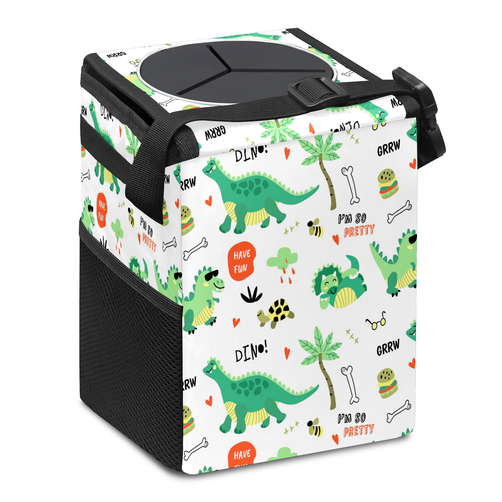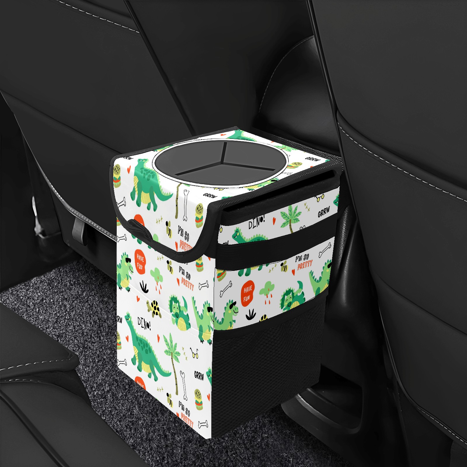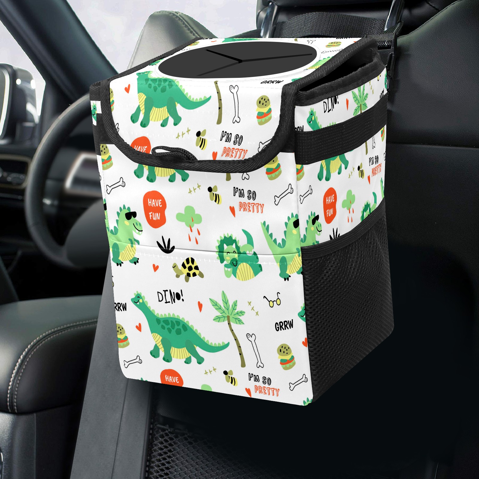 Car Trash Bin with Lid Auto Garbage Bag Hanging for Back Seat - Leakproof Trash Can for Cars SUVs Trucks Vehicle Car Accessories (Colorful Dinosaurs Pattern)