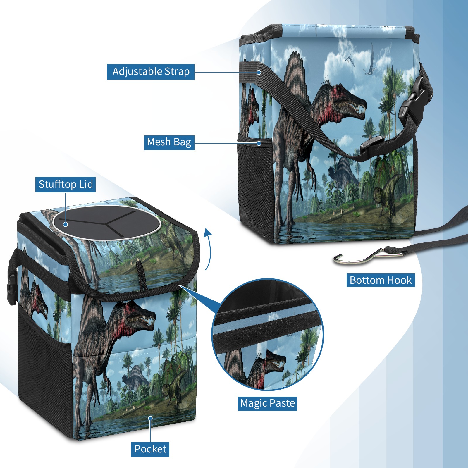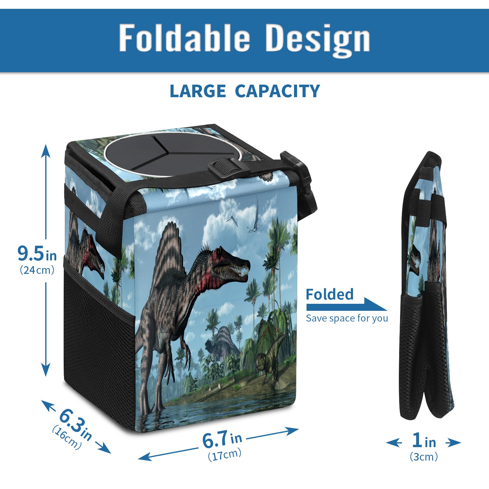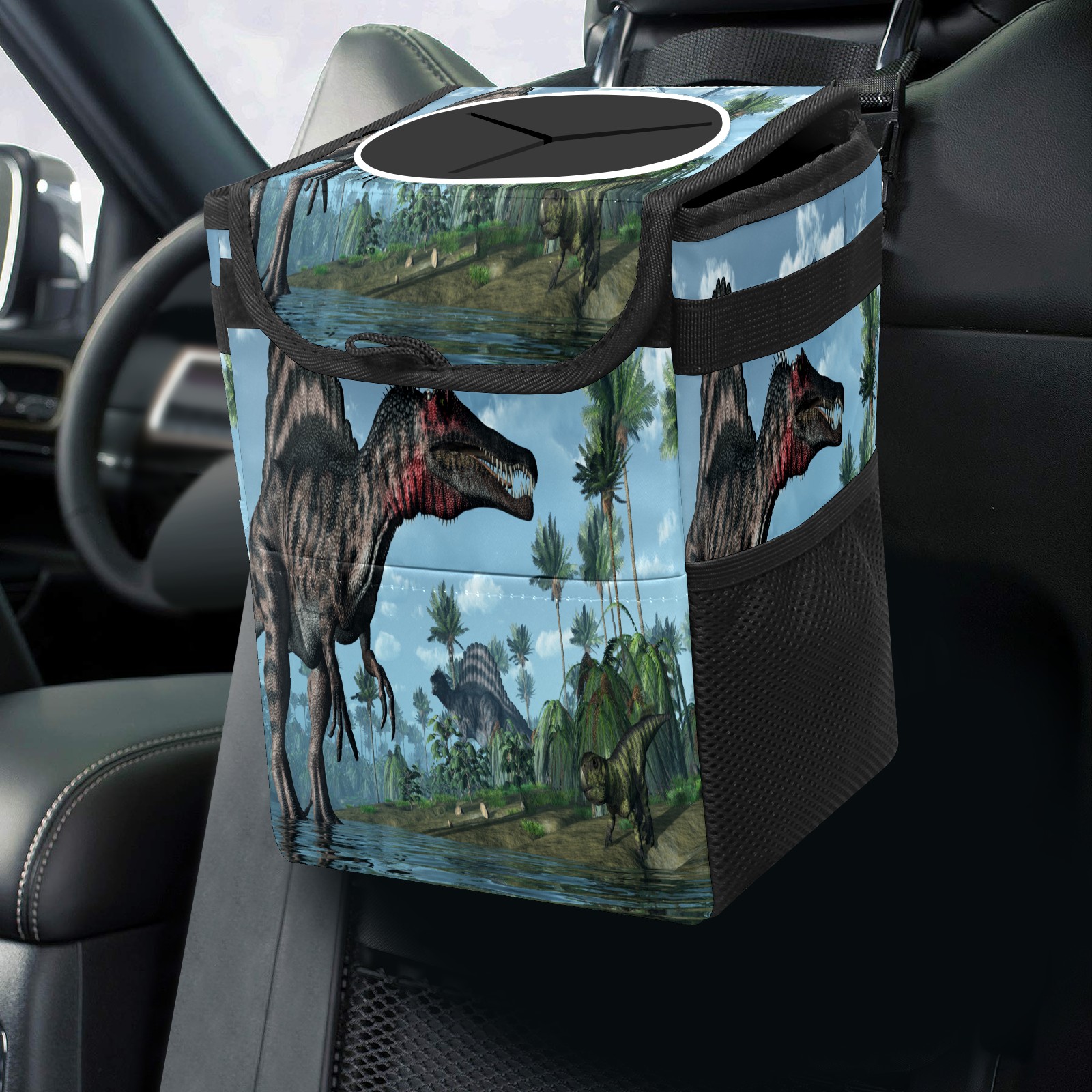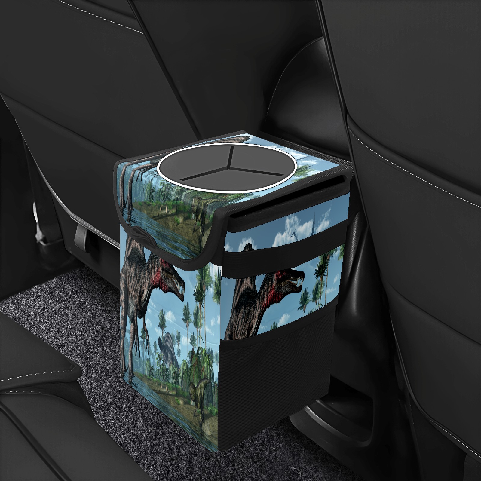 Car Trash Bin with Lid Auto Garbage Bag Hanging for Back Seat - Leakproof Trash Can for Cars SUVs Trucks Vehicle Car Accessories (3D Dinosaur)