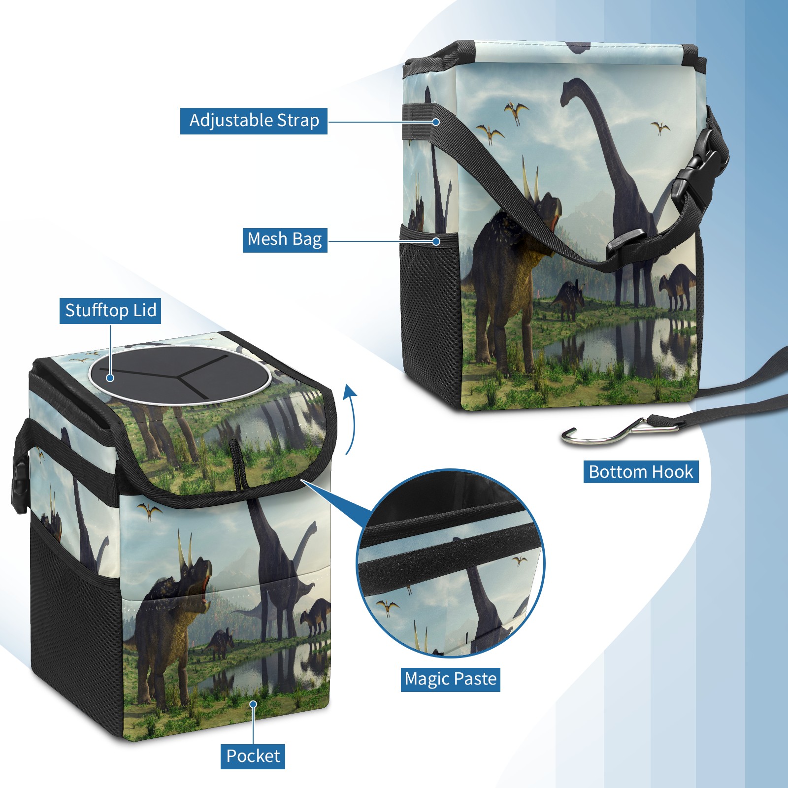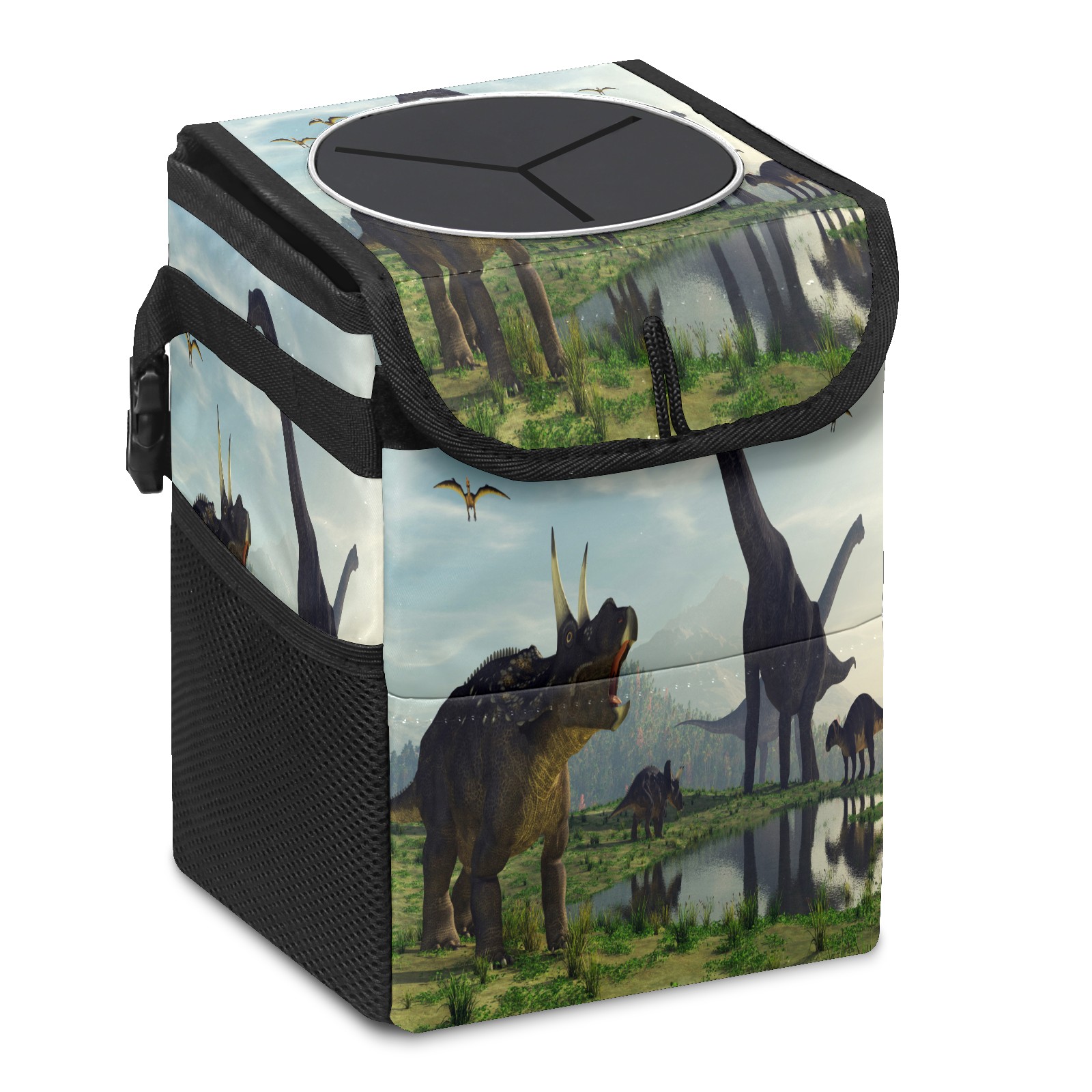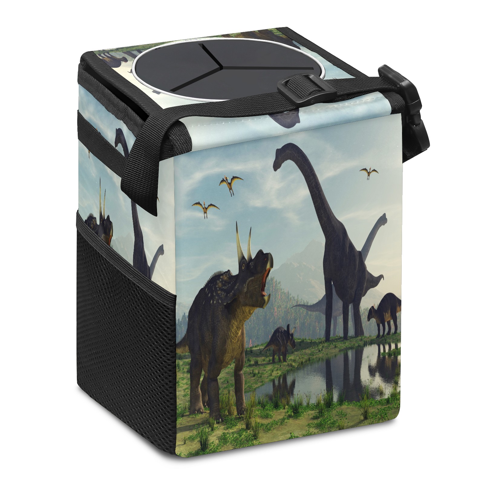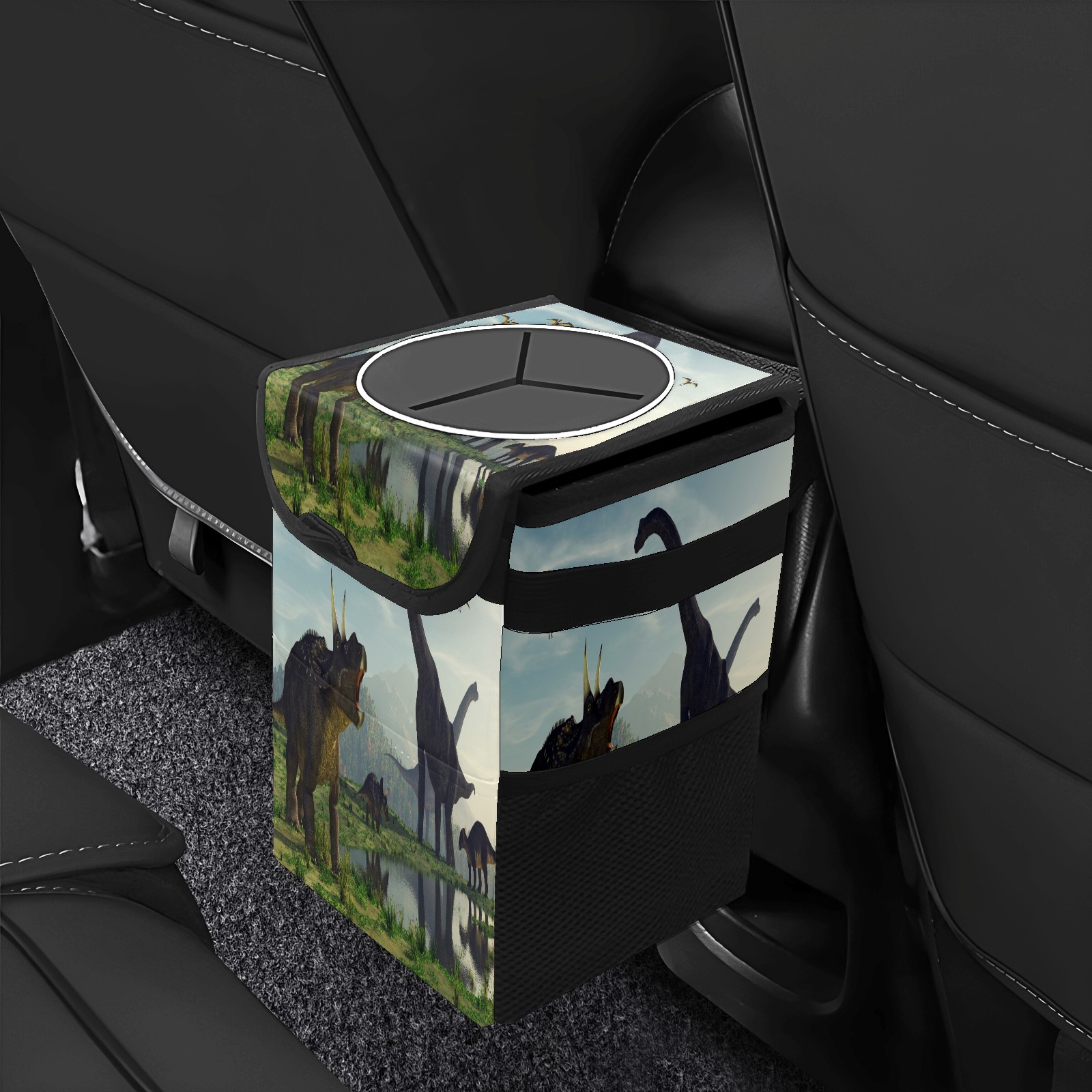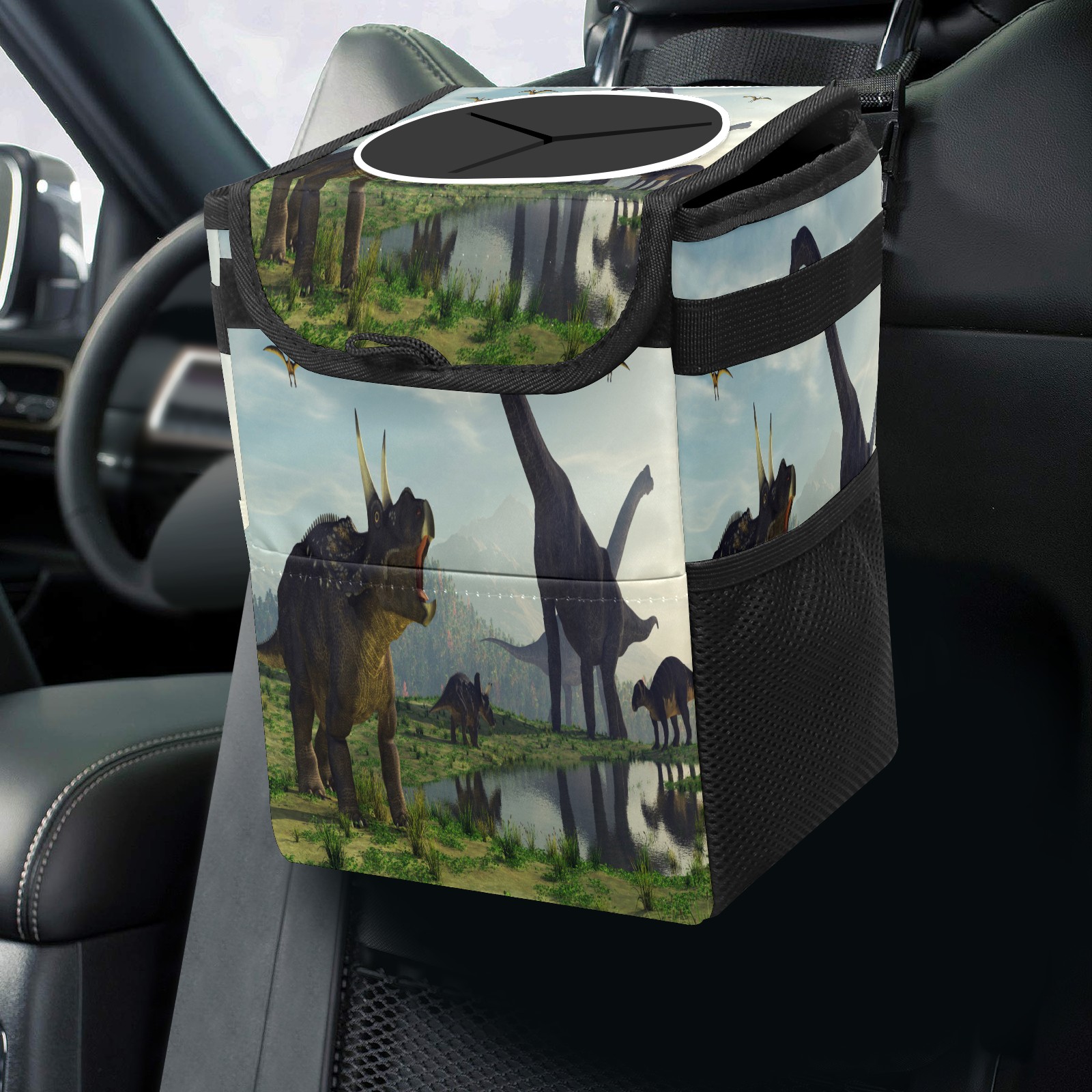 Car Trash Bin with Lid Auto Garbage Bag Hanging for Back Seat - Leakproof Trash Can for Cars SUVs Trucks Vehicle Car Accessories (3d Render Dinosaur)