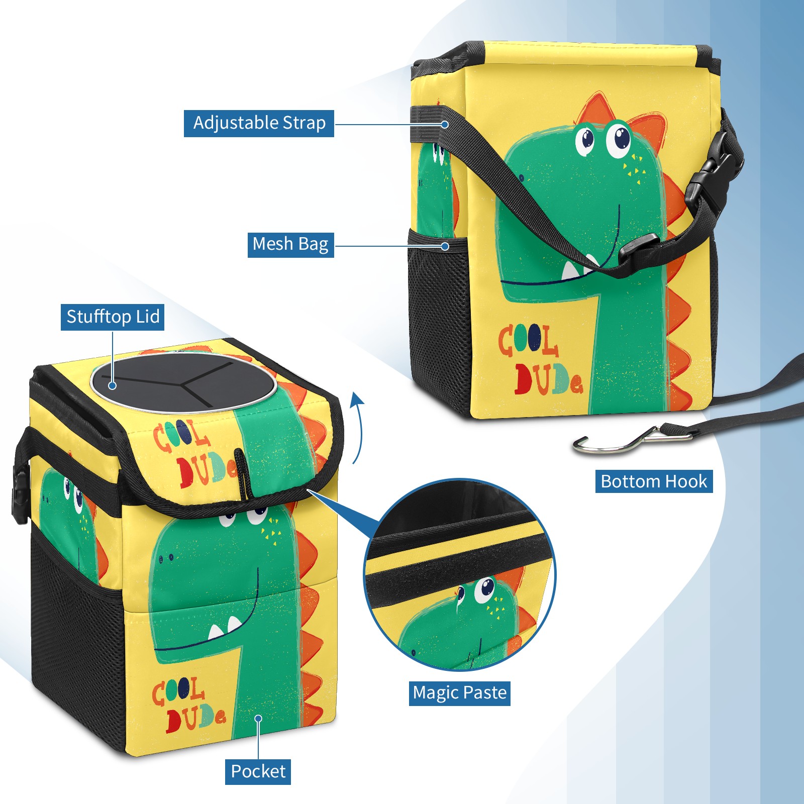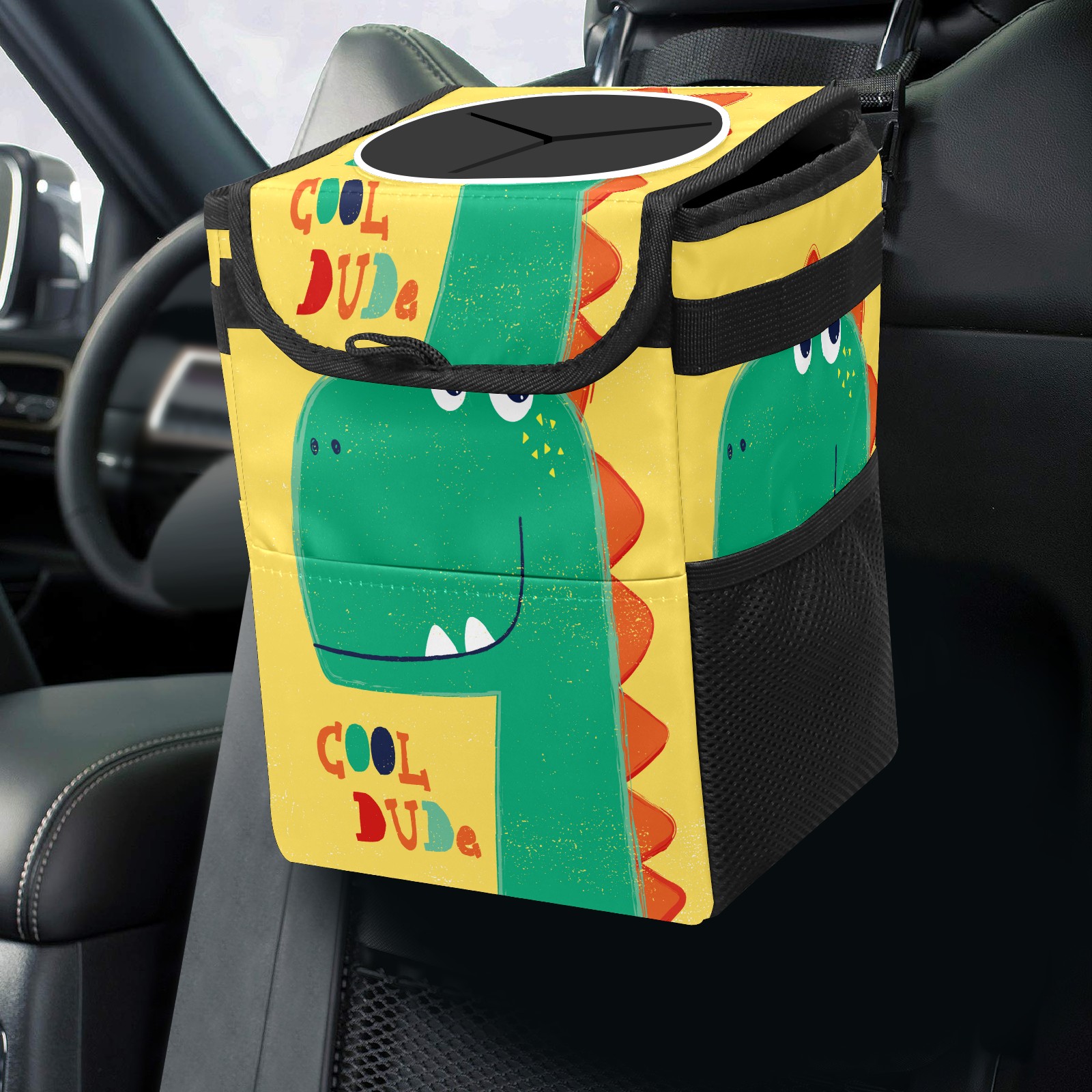 Car Trash Bin with Lid Auto Garbage Bag Hanging for Back Seat - Leakproof Trash Can for Cars SUVs Trucks Vehicle Car Accessories (Cartoon Hand Painted Dinosaur)