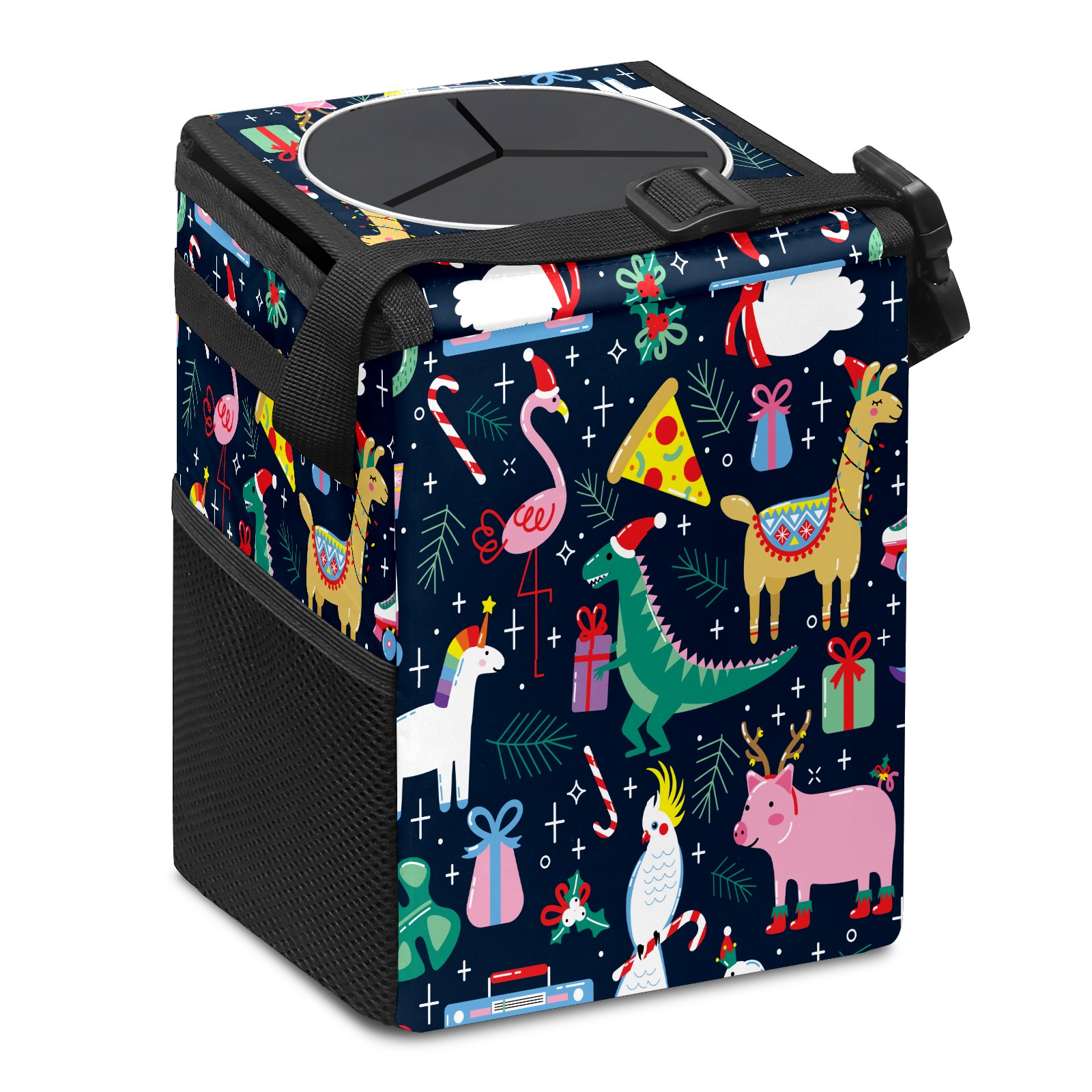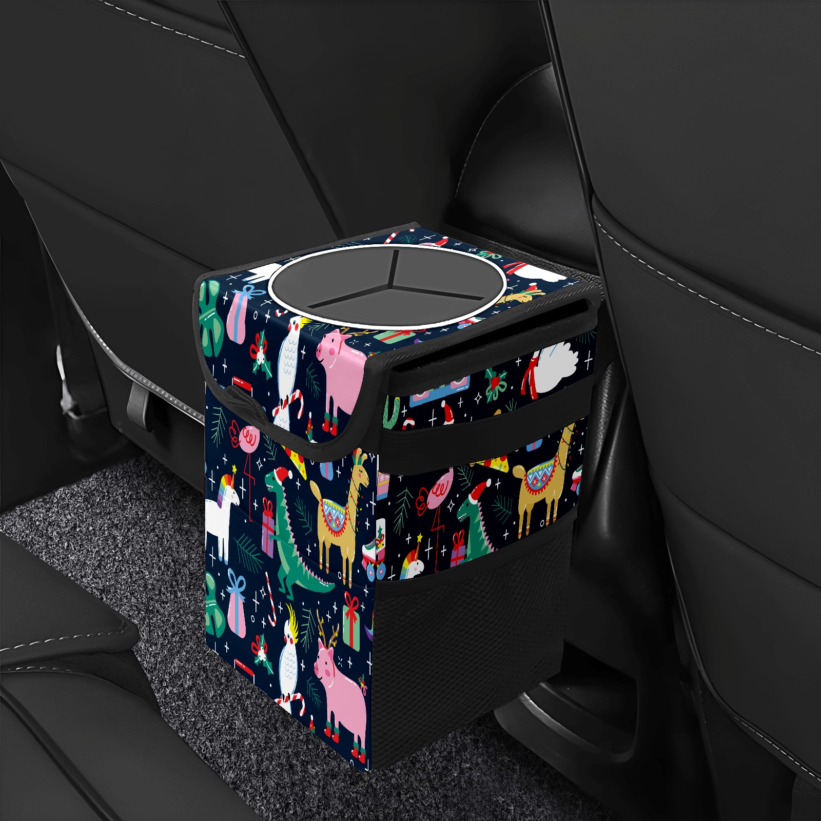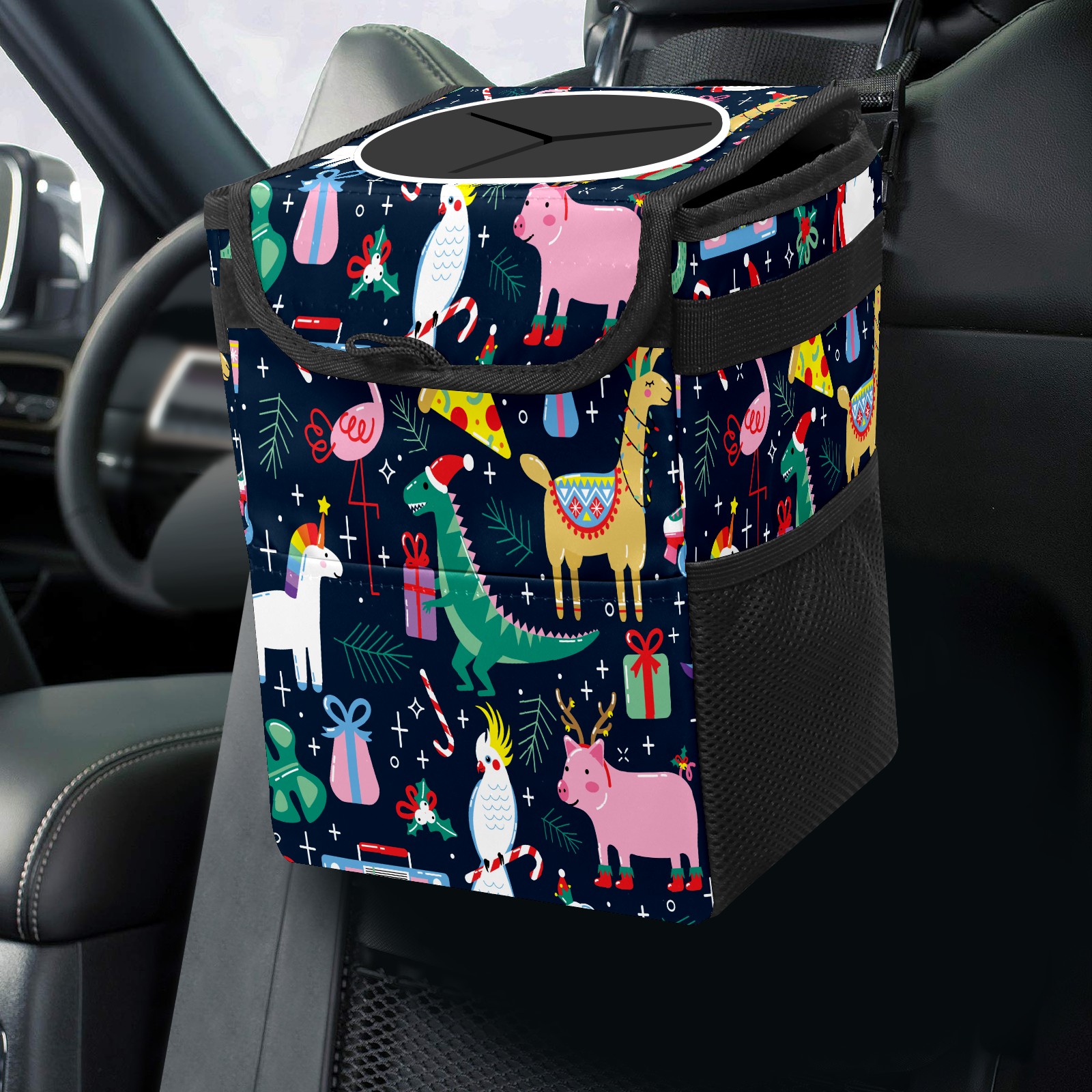 Car Trash Bin with Lid Auto Garbage Bag Hanging for Back Seat - Leakproof Trash Can for Cars SUVs Trucks Vehicle Car Accessories (Cartoon Christmas Dinosaur Horse)