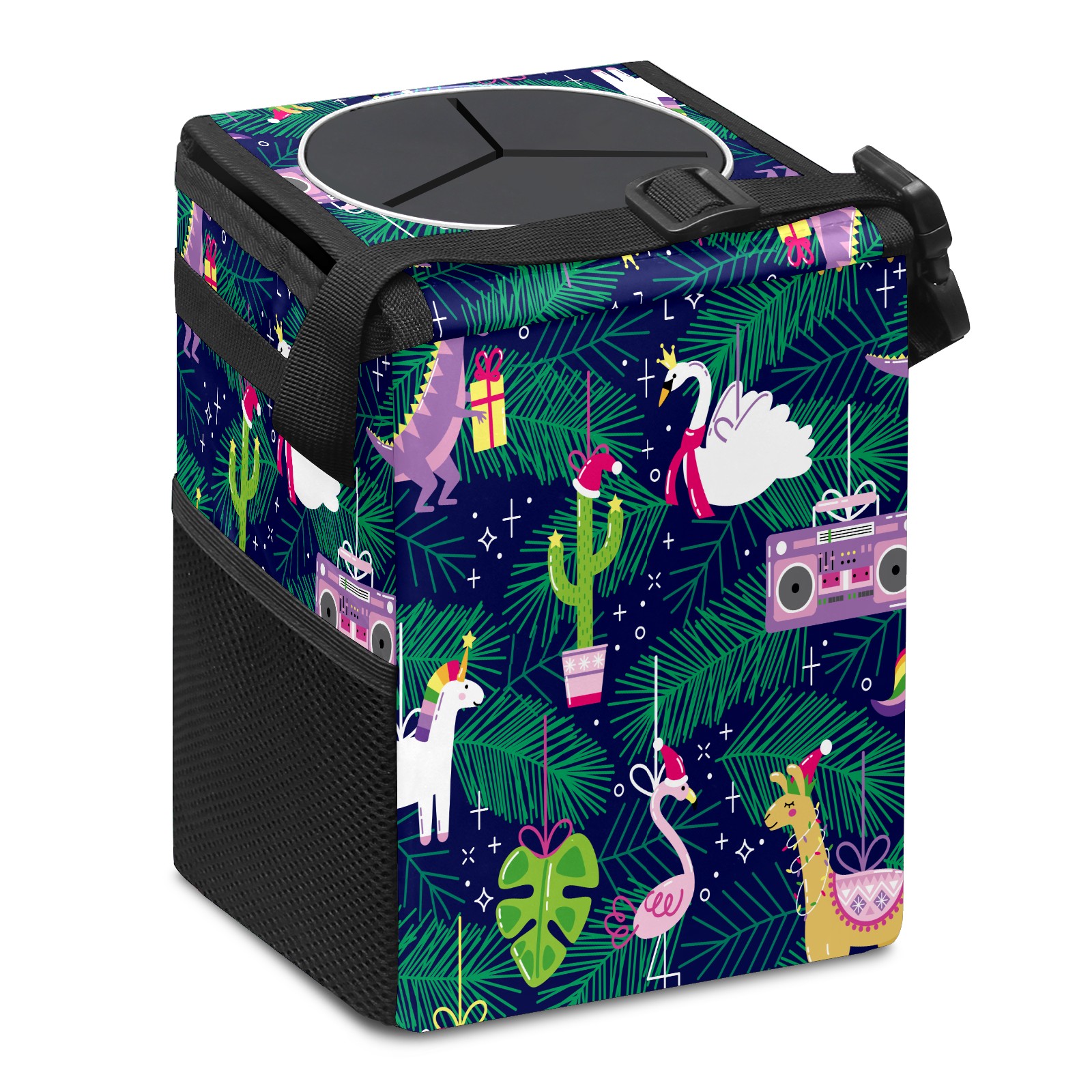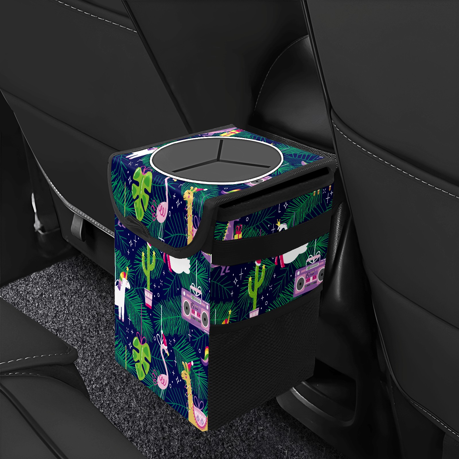 • FOLDABLE & SPACE-SAVING Compact 9.5"×6.7"×6.3" size fits perfectly in any vehicle space Instantly folds flat when not in use - stores effortlessly under seats or in door pockets MULTI-FUNCTION ORGANIZER Large main compartment holds bottles, wrappers and tissues Additional pockets for wet wipes, masks or small accessories WATERPROOF & LEAKPROOF Made with premium leak-proof polyester material Contains messy spills from drinks, snacks, and food Wipe-clean surface resists stains and eliminates odors Package Includes 1× Car Trash Can