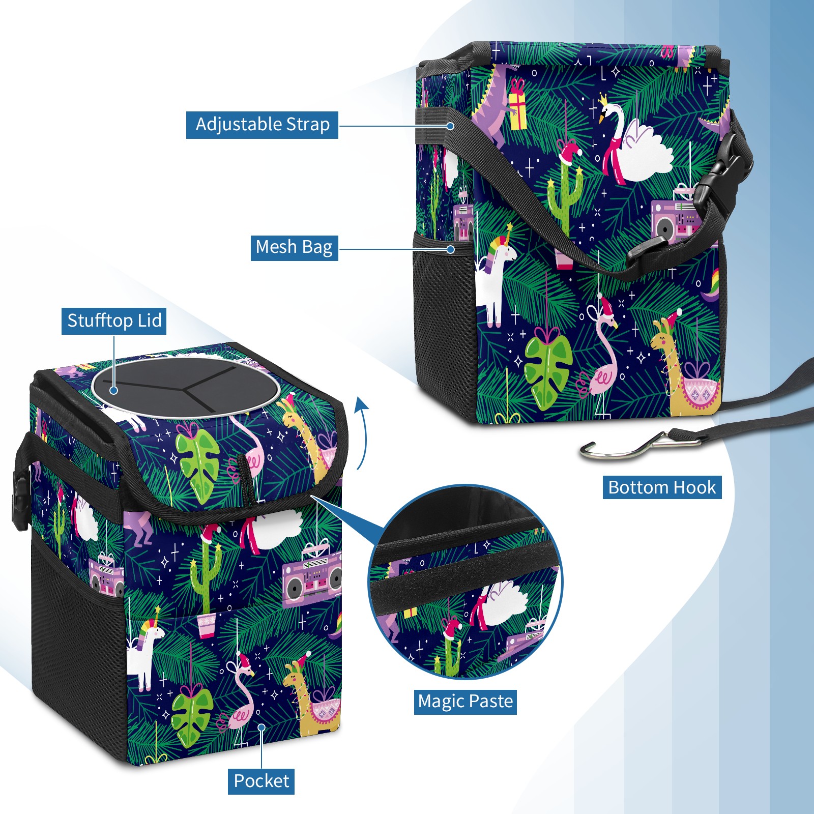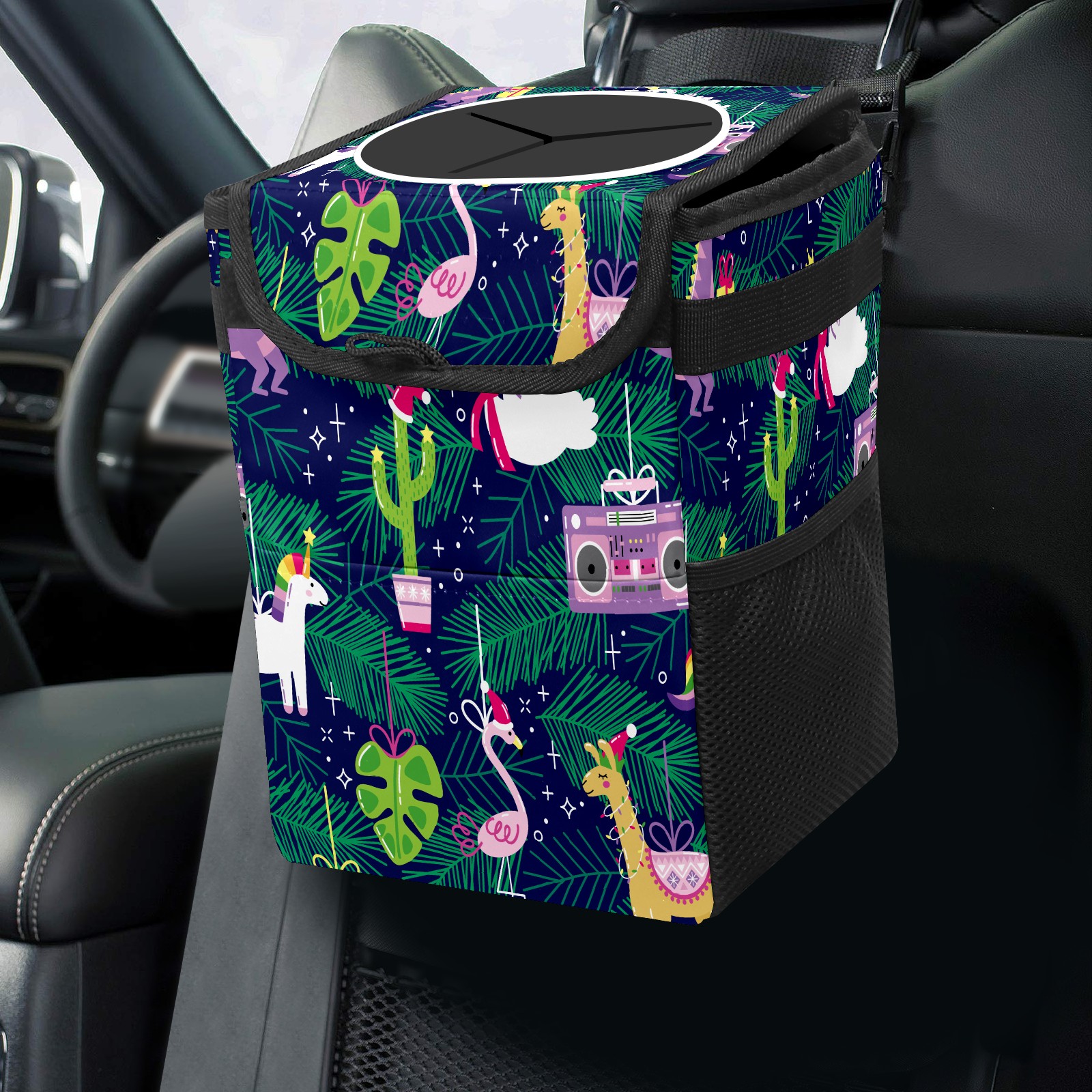Car Trash Bin with Lid Auto Garbage Bag Hanging for Back Seat - Leakproof Trash Can for Cars SUVs Trucks Vehicle Car Accessories (Cartoon Dinosaur Alpaca)