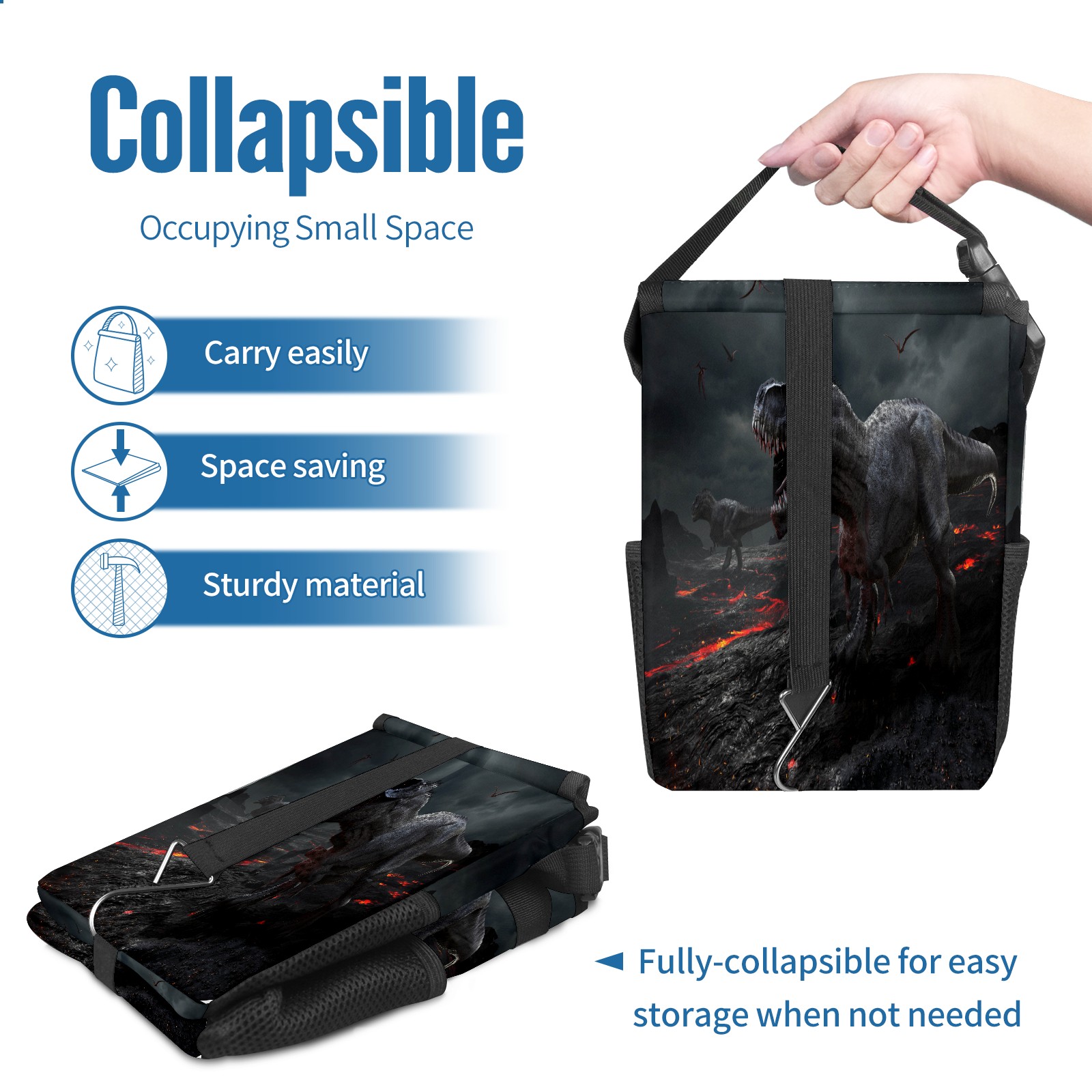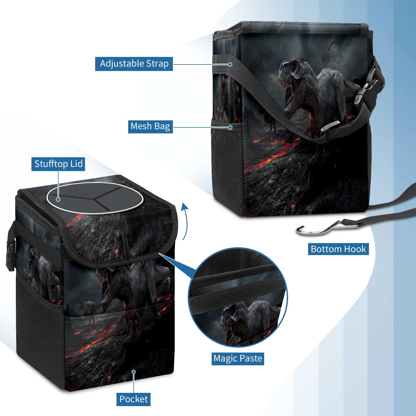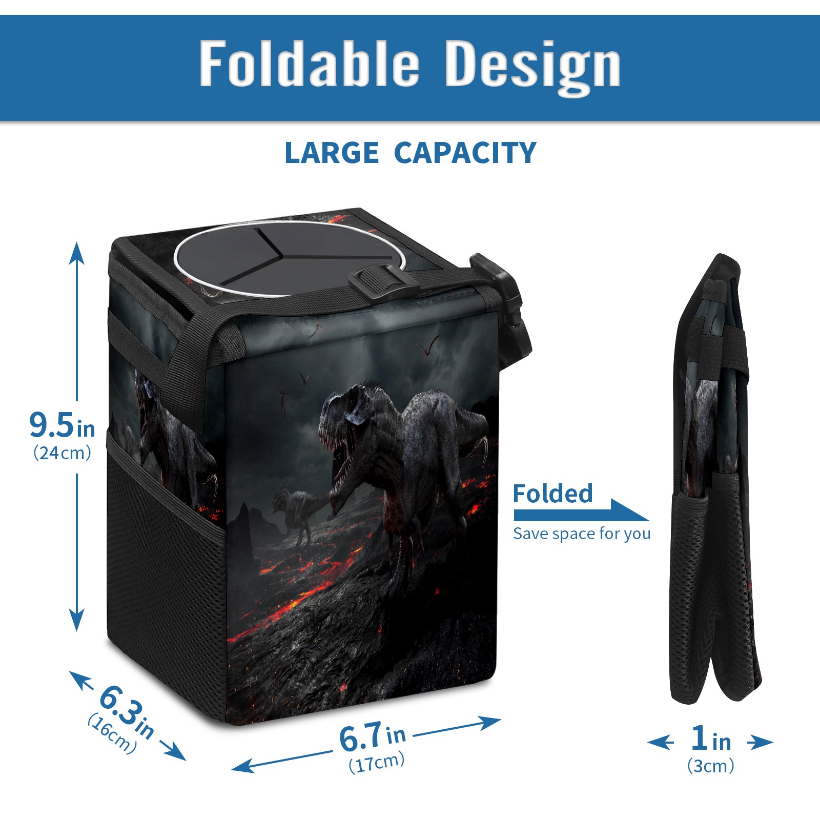 FOLDABLE & SPACE-SAVING Compact 9.5"×6.7"×6.3" size fits perfectly in any vehicle space Instantly folds flat when not in use - stores effortlessly under seats or in door pockets MULTI-FUNCTION ORGANIZER Large main compartment holds bottles, wrappers and tissues Additional pockets for wet wipes, masks or small accessories WATERPROOF & LEAKPROOF Made with premium leak-proof polyester material Contains messy spills from drinks, snacks, and food Wipe-clean surface resists stains and eliminates odors Package Includes 1× Car Trash Can