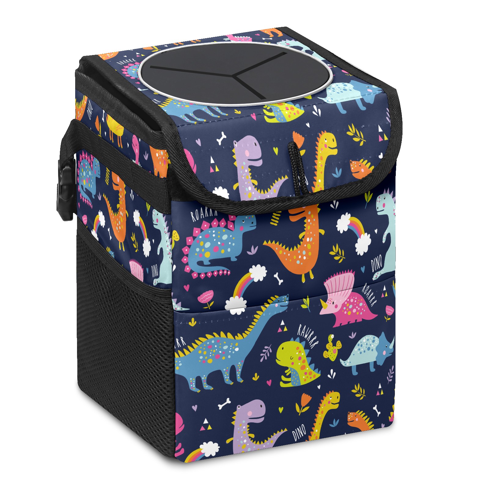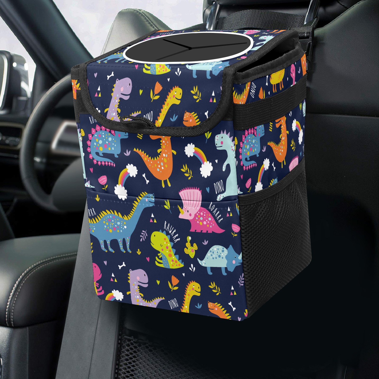 Car Trash Bin with Lid Auto Garbage Bag Hanging for Back Seat - Leakproof Trash Can for Cars SUVs Trucks Vehicle Car Accessories (Cartoon Cute Dinosaurs)